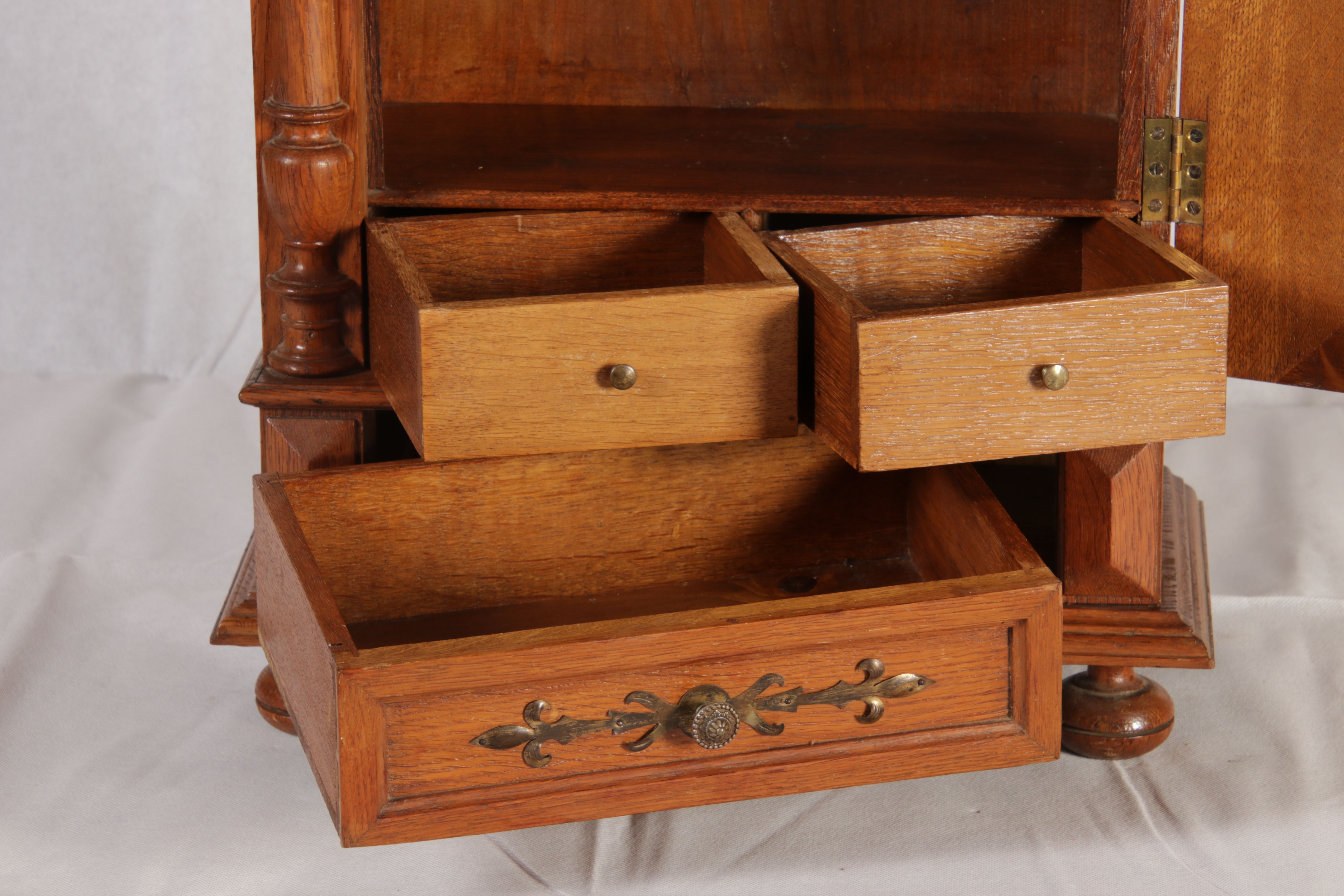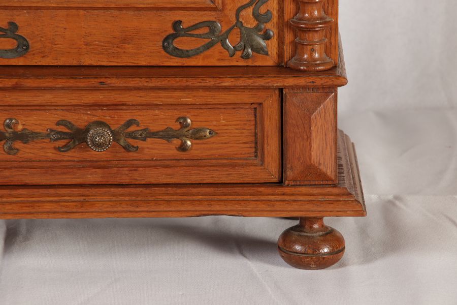 Masse/dimensions: Höhe/Height ca. 65 cm, Breite /Broad ca. 40,5 cm, Tiefe /Deep ca. 21,05 cm, Material/material Das Material ist Eiche und Messing