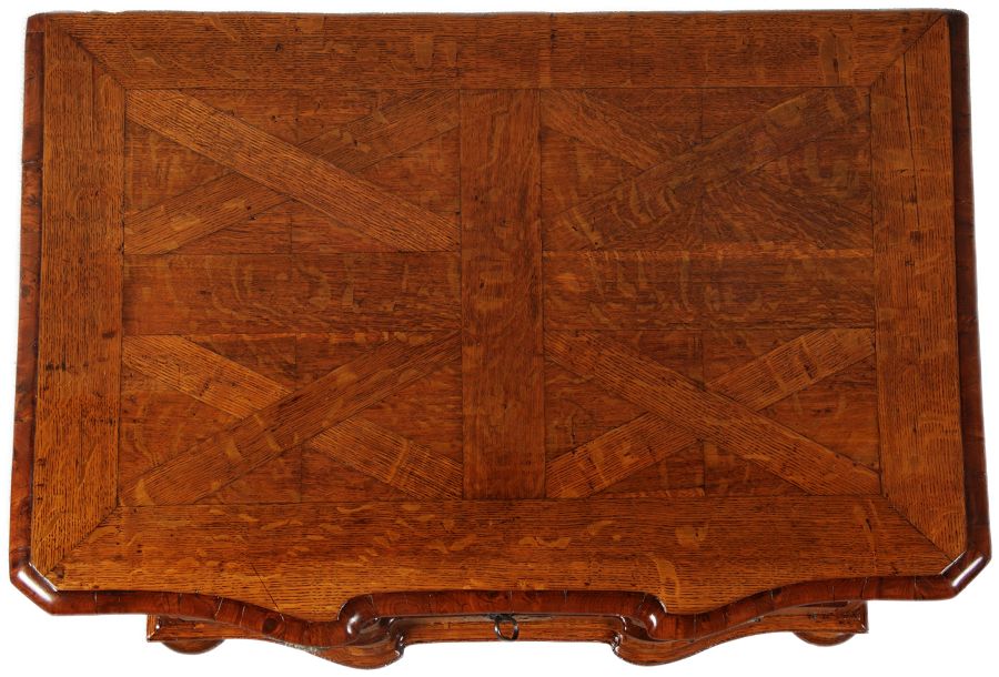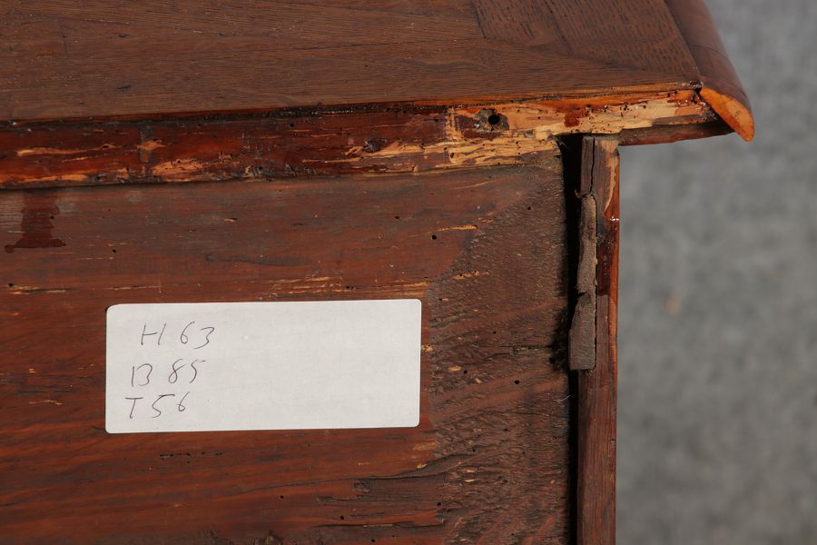 Das Holz ist Nussbaum und Eiche auf Weichhilz furniert