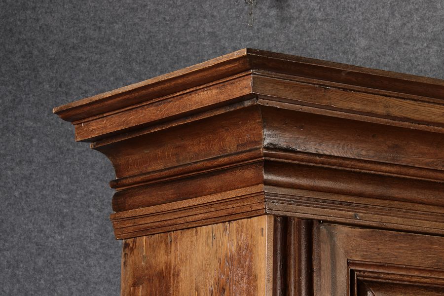 Masse/dimensions: Höhe/Height ca. 242 cm, Breite Korpus/Broad Boda ca. 182 cm, Breite Gesims/Broad cornice ca. 228 cm, Tiefe Korpus/Deep body ca. 60 cm, Tiefe Gesims/Deep cornice ca. 80 cm,