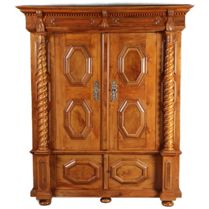 Antiker spät Renaissance früh Barock Schrank um 1700 Nussbaum mit Korkenzieher Säulen |