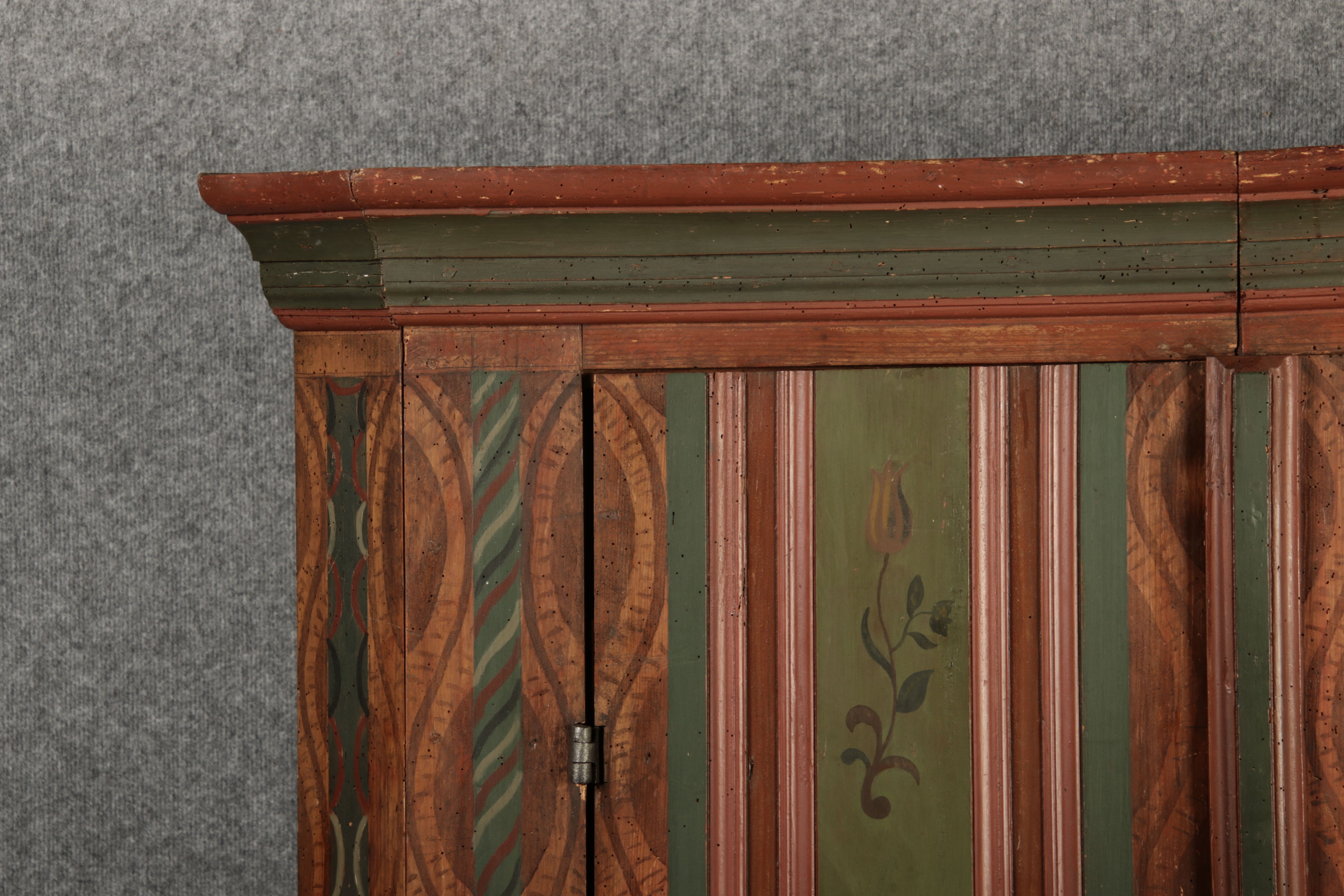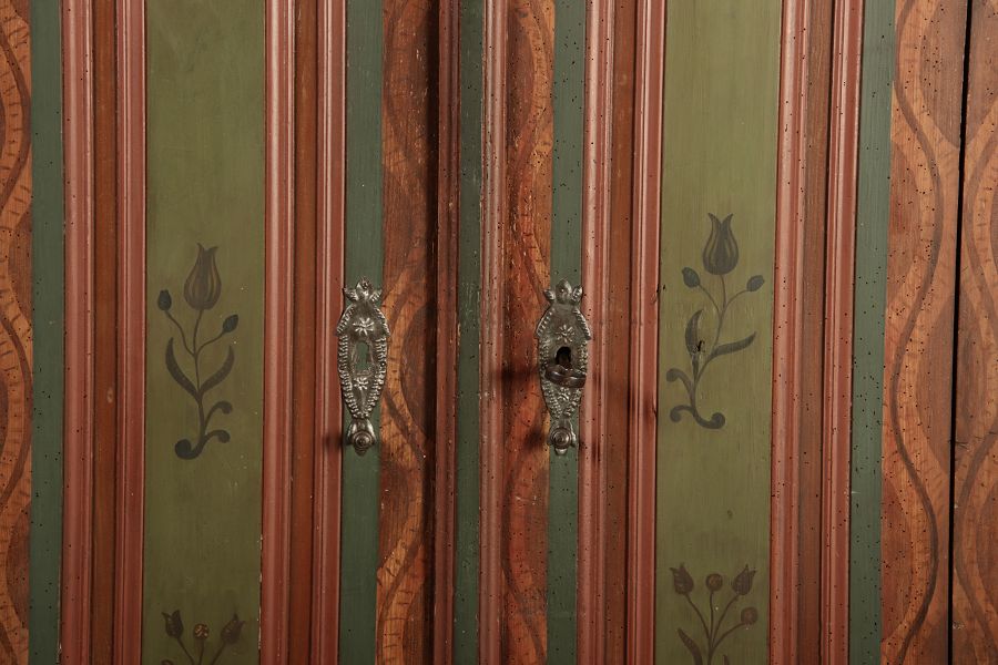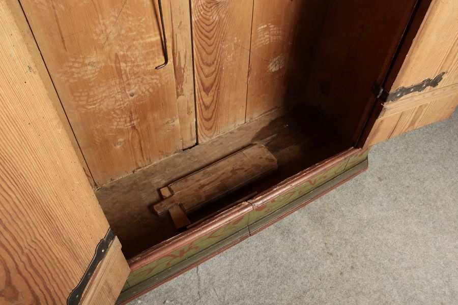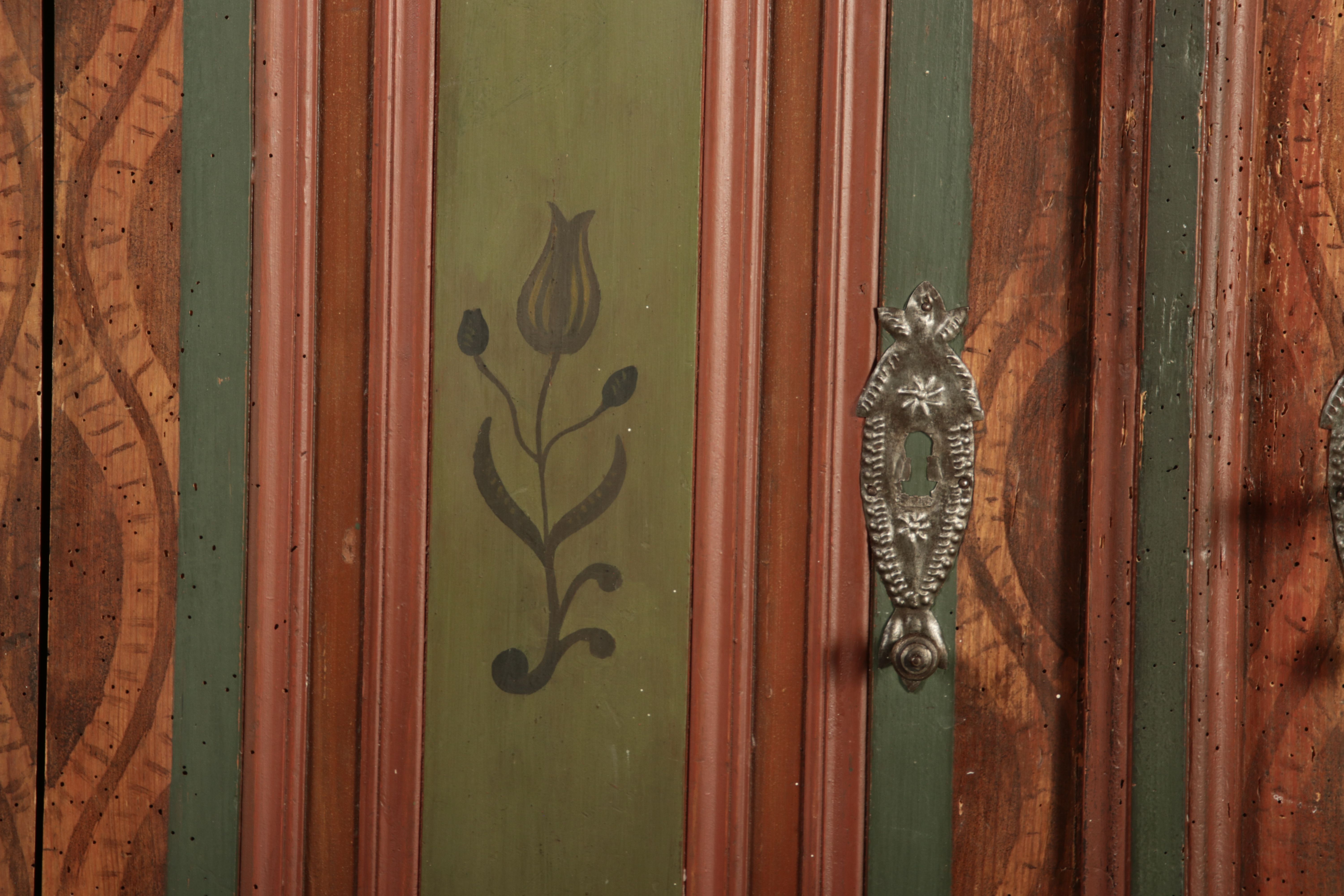 Beschreibung/description: Historischer Nürnberger Bauernschrank, 18. Jahrhundert Dieser bemalte Weichholzschrank stammt aus dem 18. Jahrhundert und ist ein typisches Beispiel für die kunstvolle Handwerkskunst der Region Nürnberg. Der Schrank besteht aus Weichholz und verfügt über charakteristische Fasen sowie ein robustes Eisenschloss, welches sowohl funktionell als auch dekorativ ist. ArtikelNummer /number: sch144