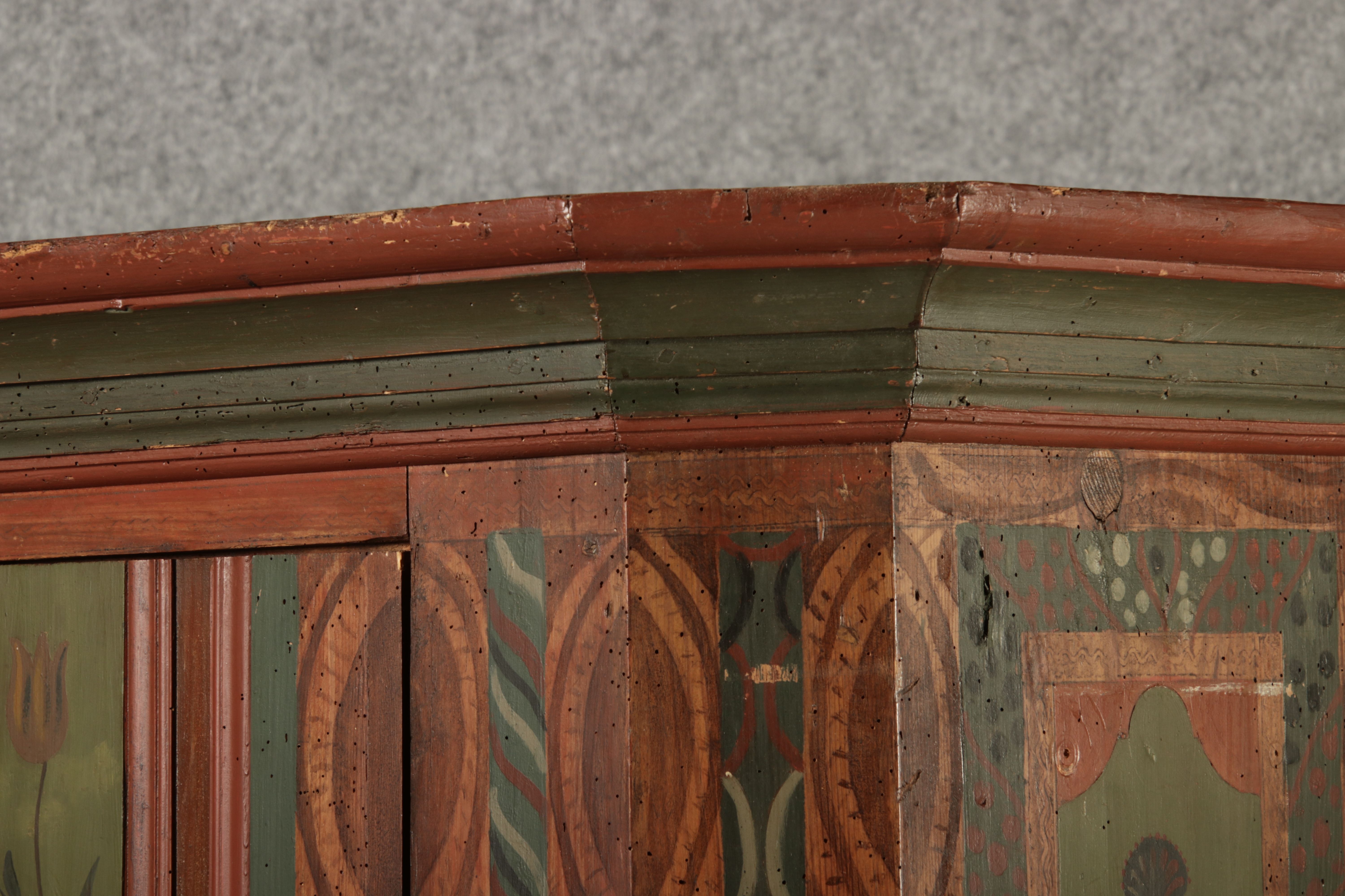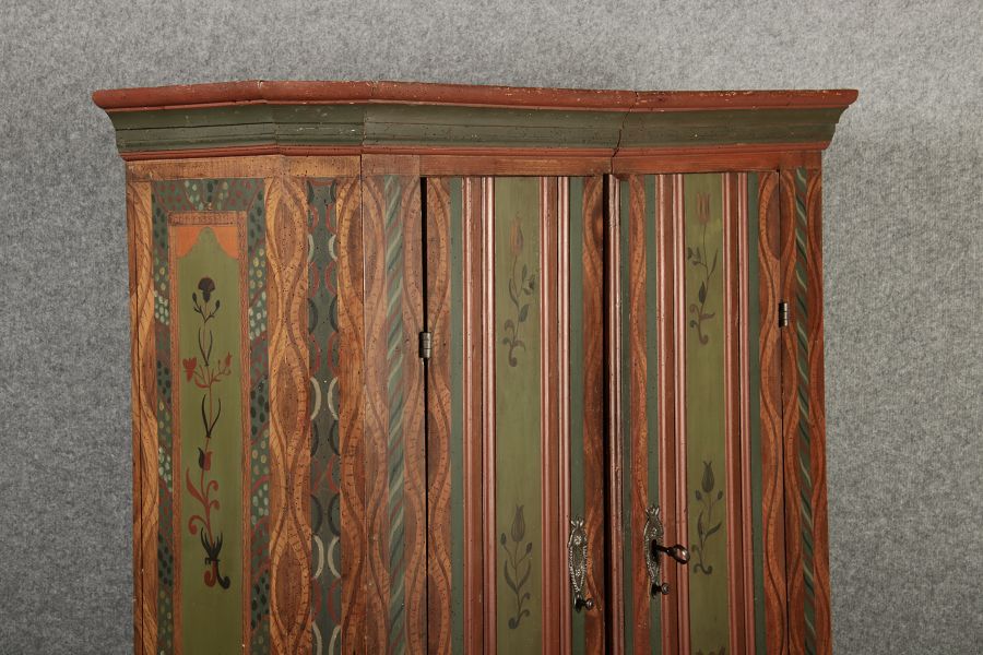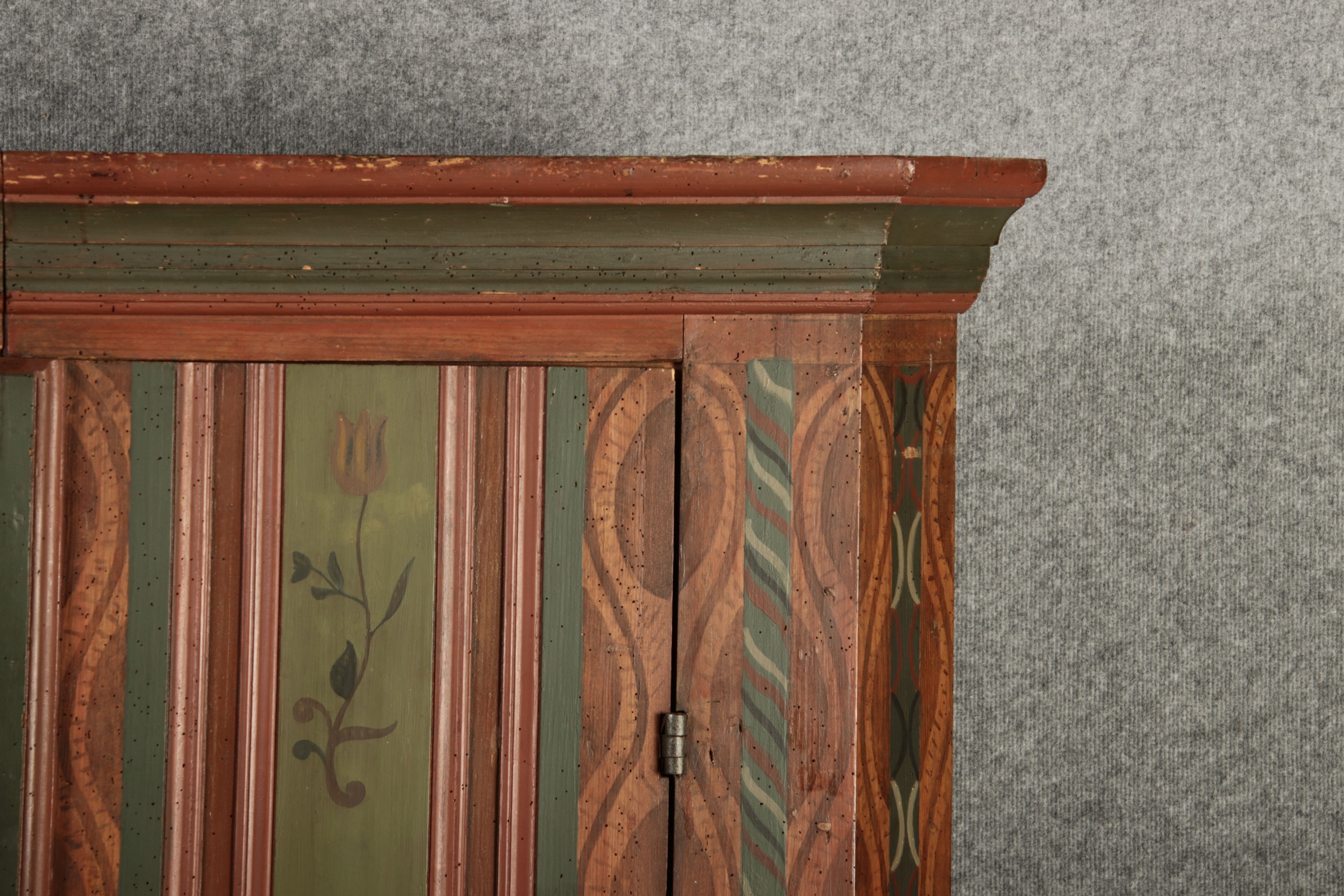 Beschreibung/description: Historischer Nürnberger Bauernschrank, 18. Jahrhundert Dieser bemalte Weichholzschrank stammt aus dem 18. Jahrhundert und ist ein typisches Beispiel für die kunstvolle Handwerkskunst der Region Nürnberg. Der Schrank besteht aus Weichholz und verfügt über charakteristische Fasen sowie ein robustes Eisenschloss, welches sowohl funktionell als auch dekorativ ist. ArtikelNummer /number: sch144