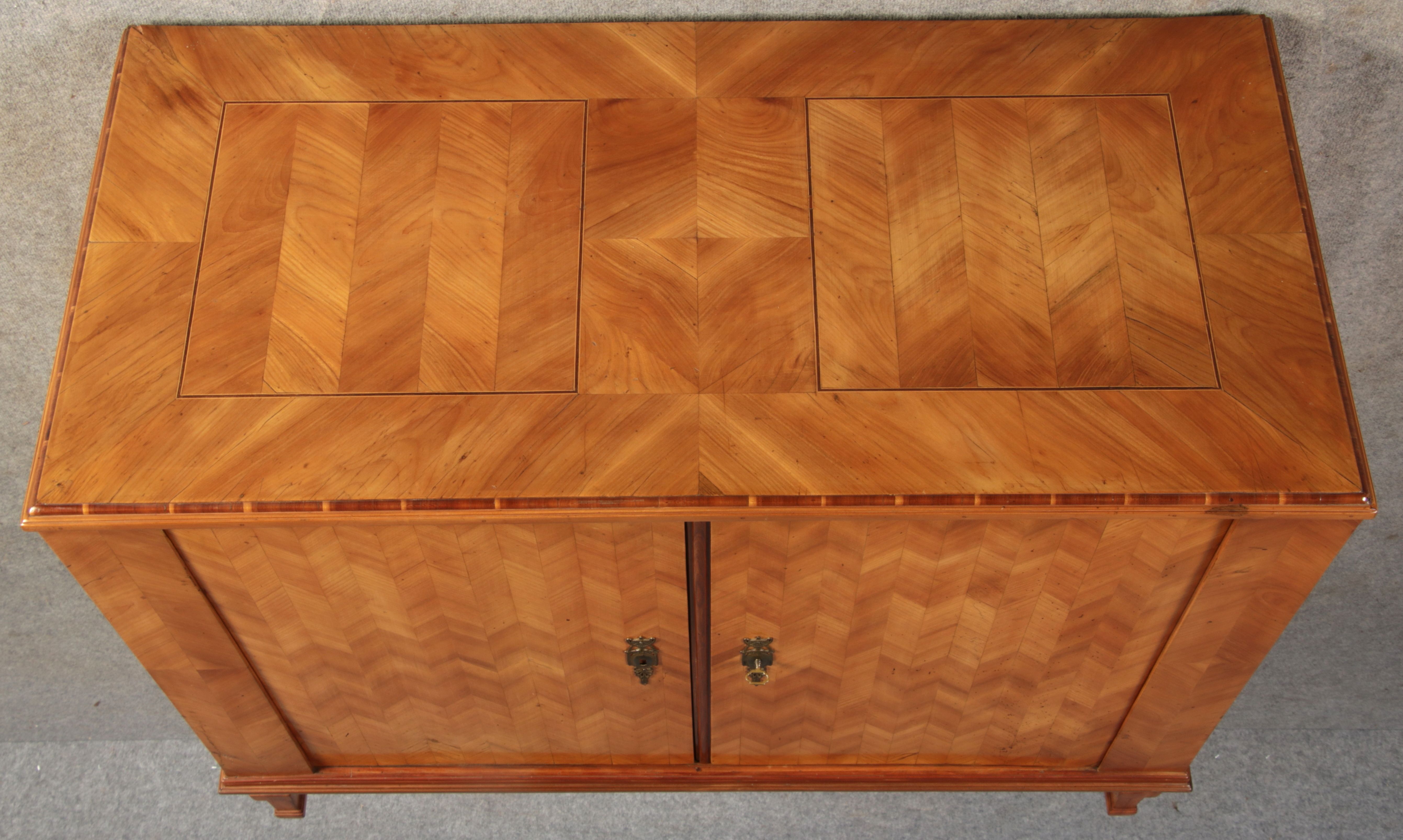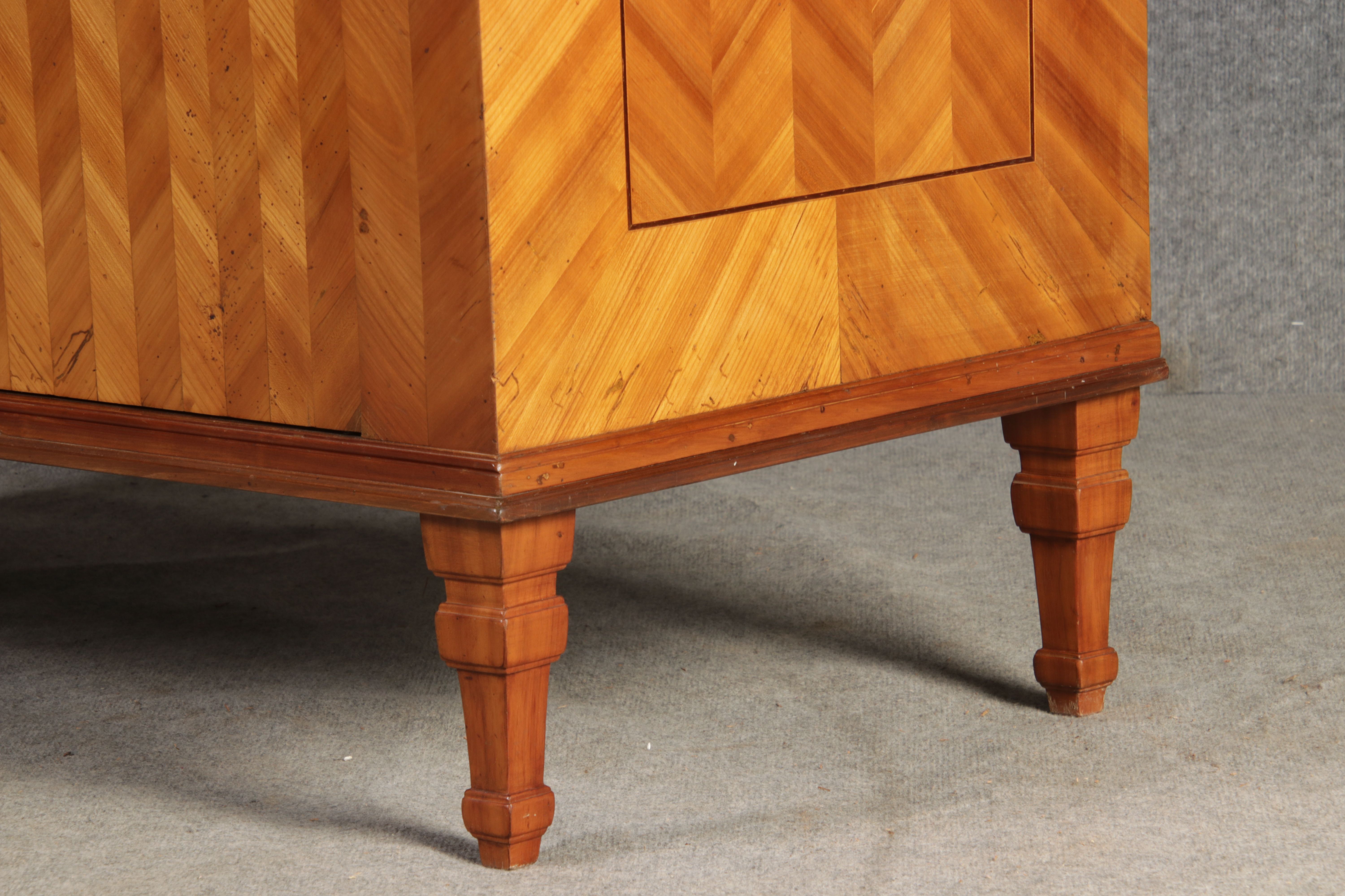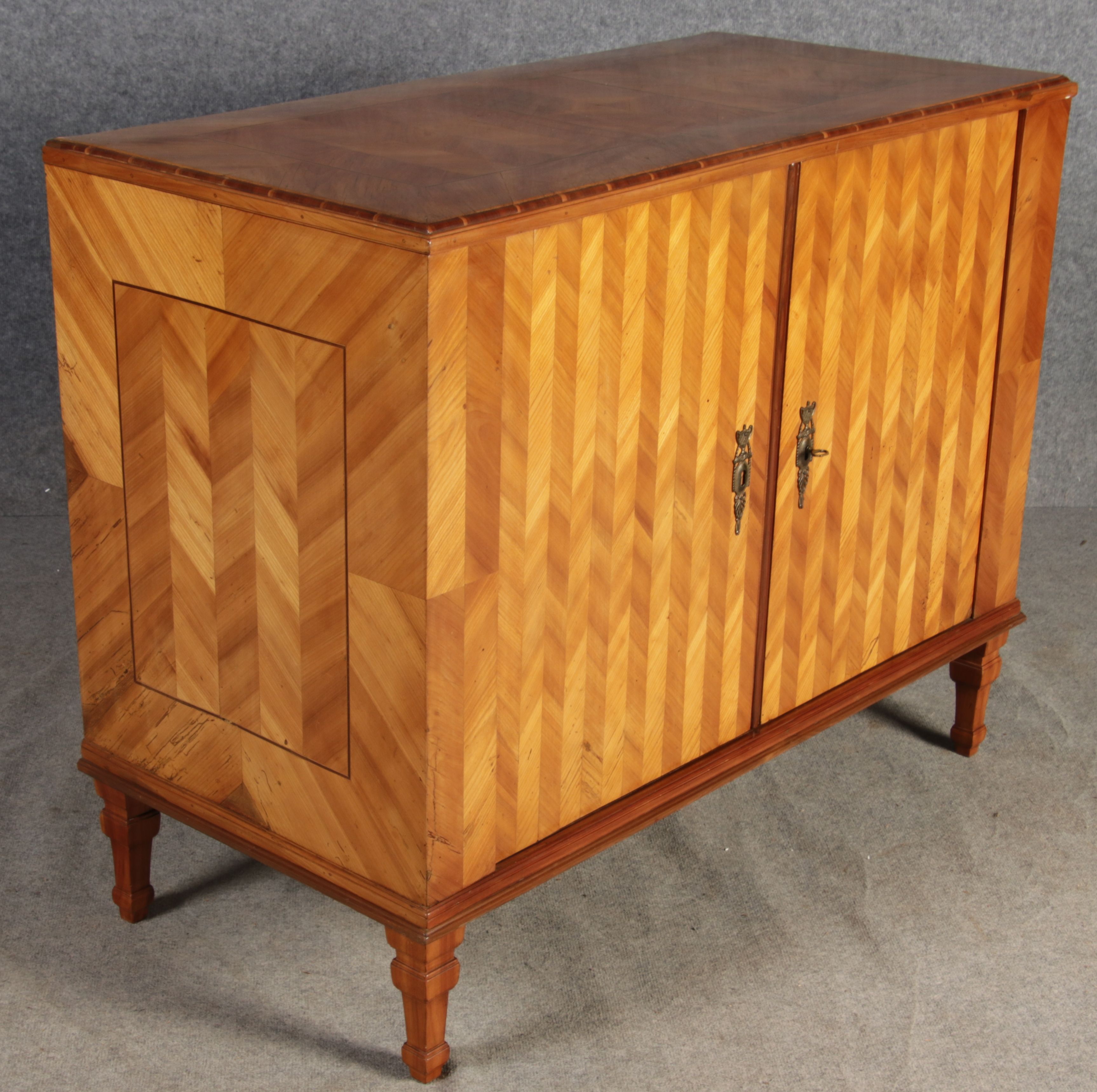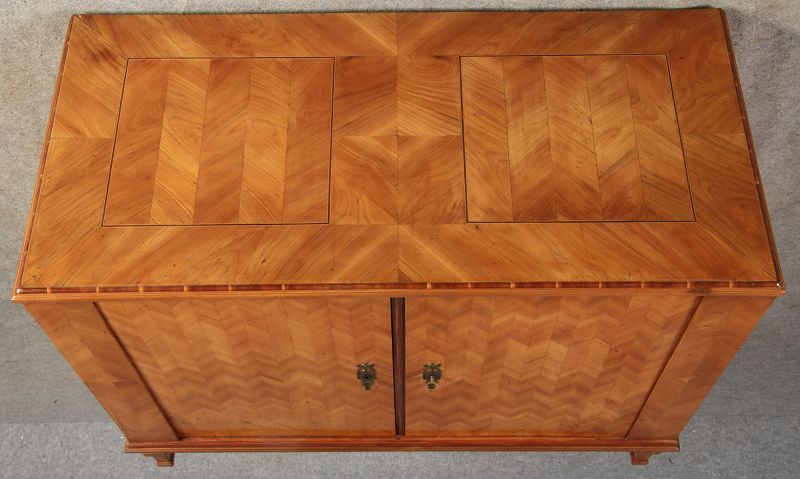 | Antiker Barock Halb Schrank Anrichte Kirschbaum furniert im Fischgräten Muster um 1780 |