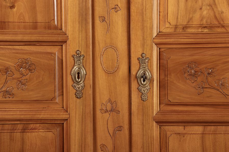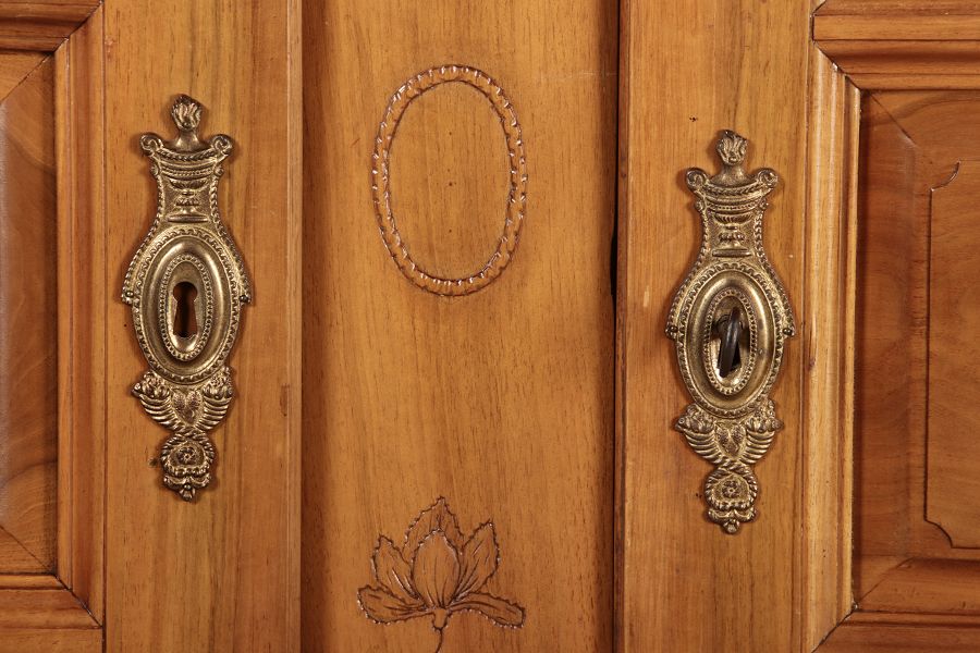 | Antiker Barockschrank massiv Nussbaum mit Schnitzereien um 1800 |
