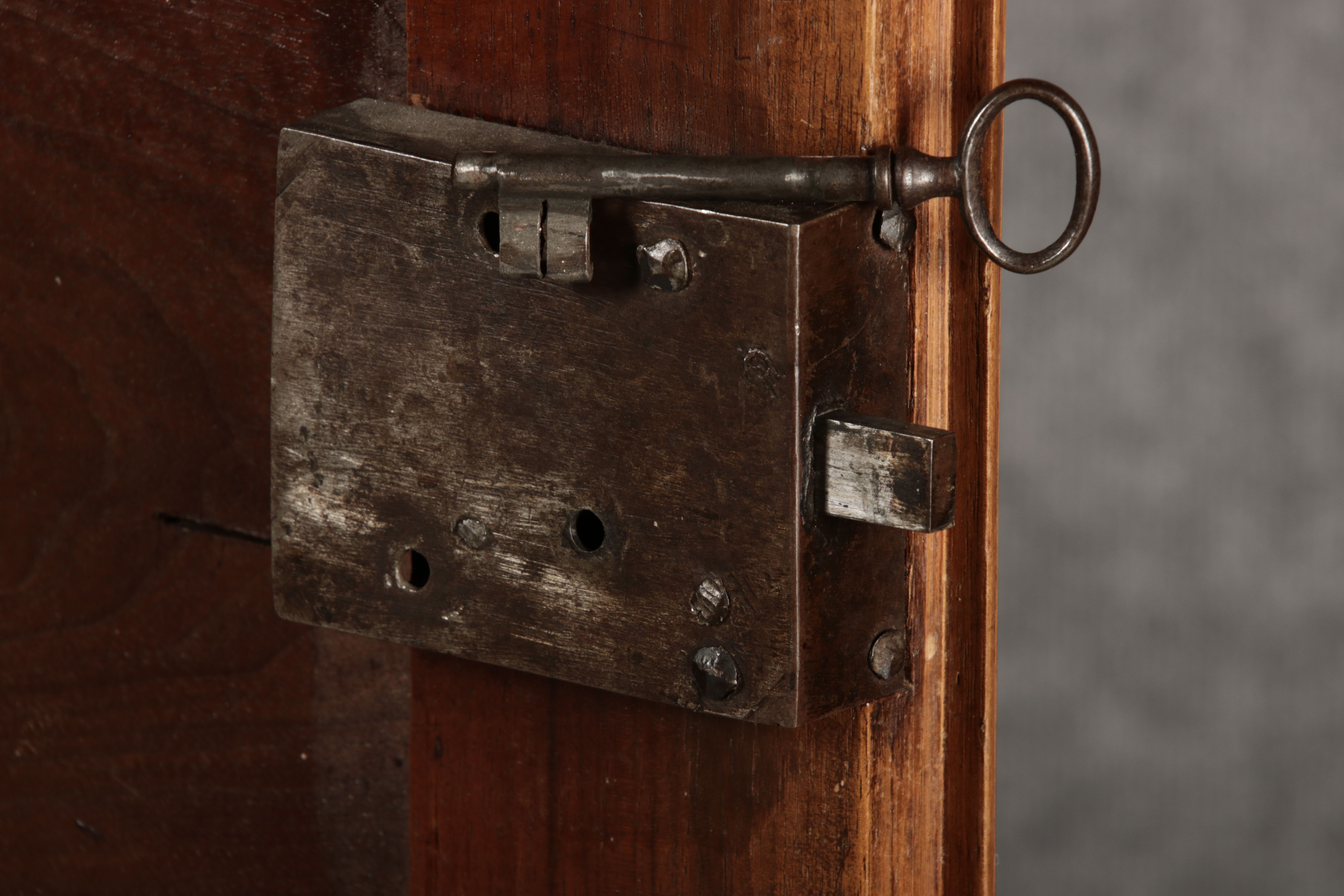 key: Die Holzart ist Nussbaum massiv ,er hat 1 Schlüssel