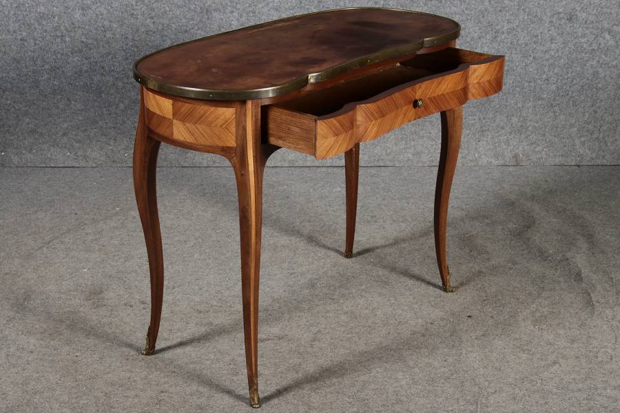 Antiker Kleiner Damenschreibtisch Nussbaum Messing Lederplatte um 1920 |