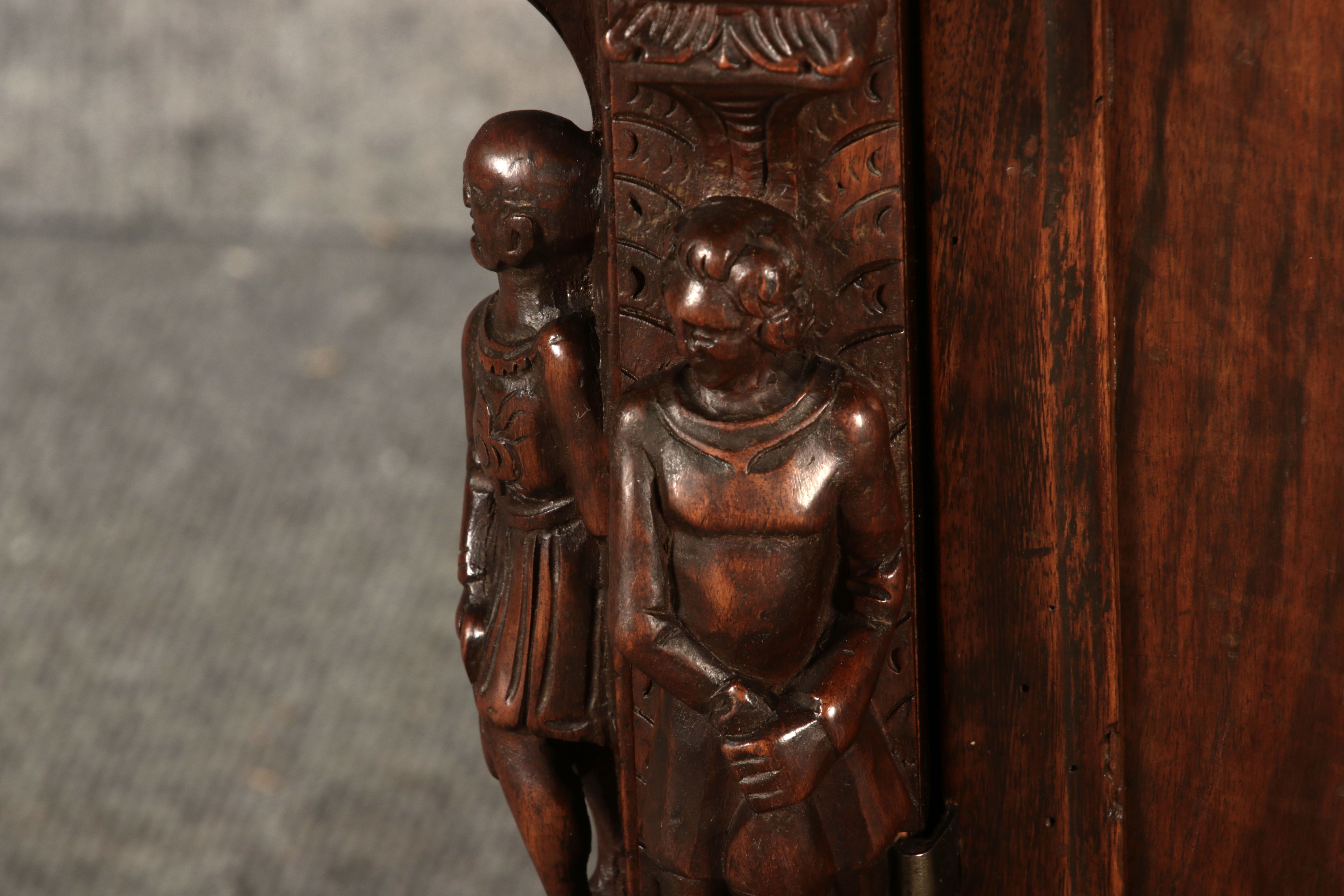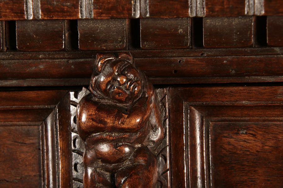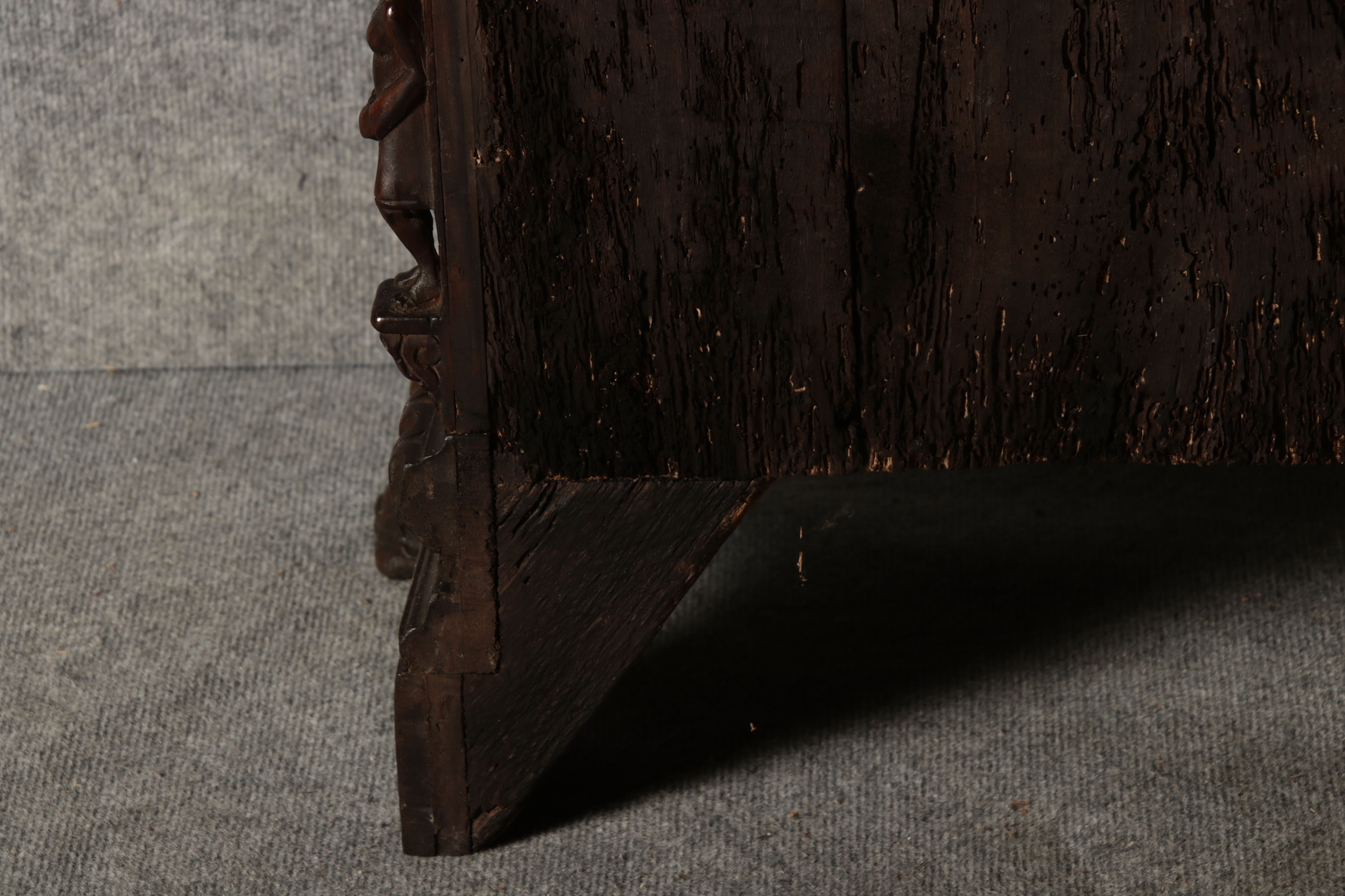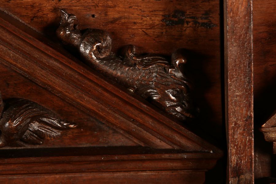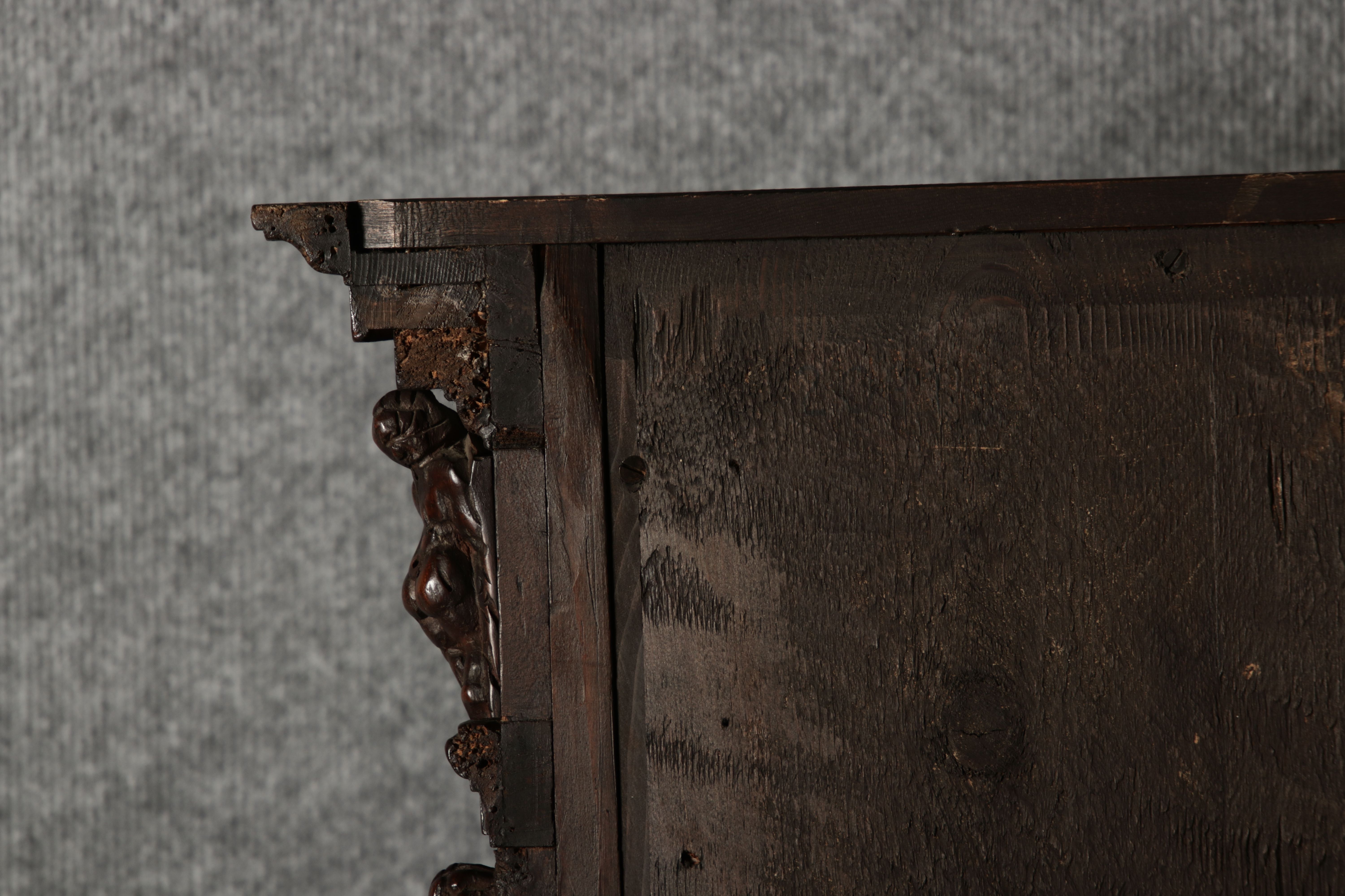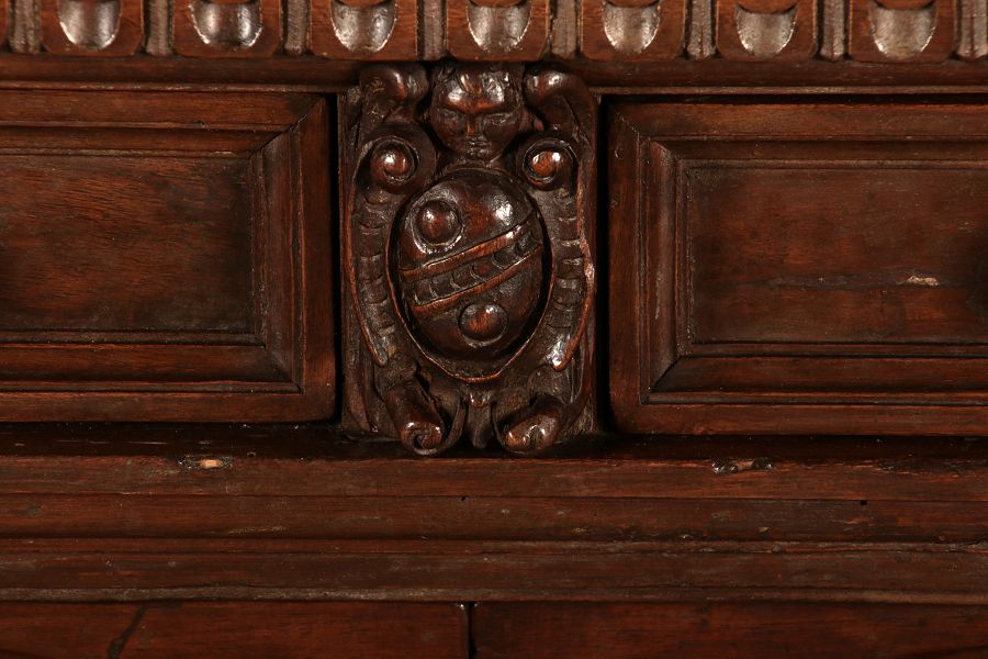 Kleiner Antiker Renaissance-Sekretär, Nussbaum, 17.-19. Jahrhundert Dieser kleine dennoch imposante Renaissance-Sekretär aus Nussbaumholz stammt aus der Zeit zwischen dem 17. und 19. (Teile des Sekretärs lassen darauf schließen, das er im 19 Jh. gefertigt worden ist, eventuell aus alten Teilen.) Jahrhundert und repräsentiert den Stil und die Handwerkskunst der Renaissance-Epoche. Das Möbelstück beeindruckt durch seine aufwendigen Schnitzereien, die kunstvolle Gestaltung und die kraftvolle Präsenz. Dieser Renaissance-Sekretär ist ein beeindruckendes Kunstwerk, das sowohl dekorativ als auch funktional ist. Seine massive Bauweise, gepaart mit der kunstvollen Gestaltung, macht ihn zu einem wahren Prunkstück für jeden Liebhaber historischer Möbel. Der Sekretär bietet nicht nur großzügigen Stauraum, sondern ist auch ein Zeugnis der meisterhaften Handwerkskunst vergangener Jahre. |