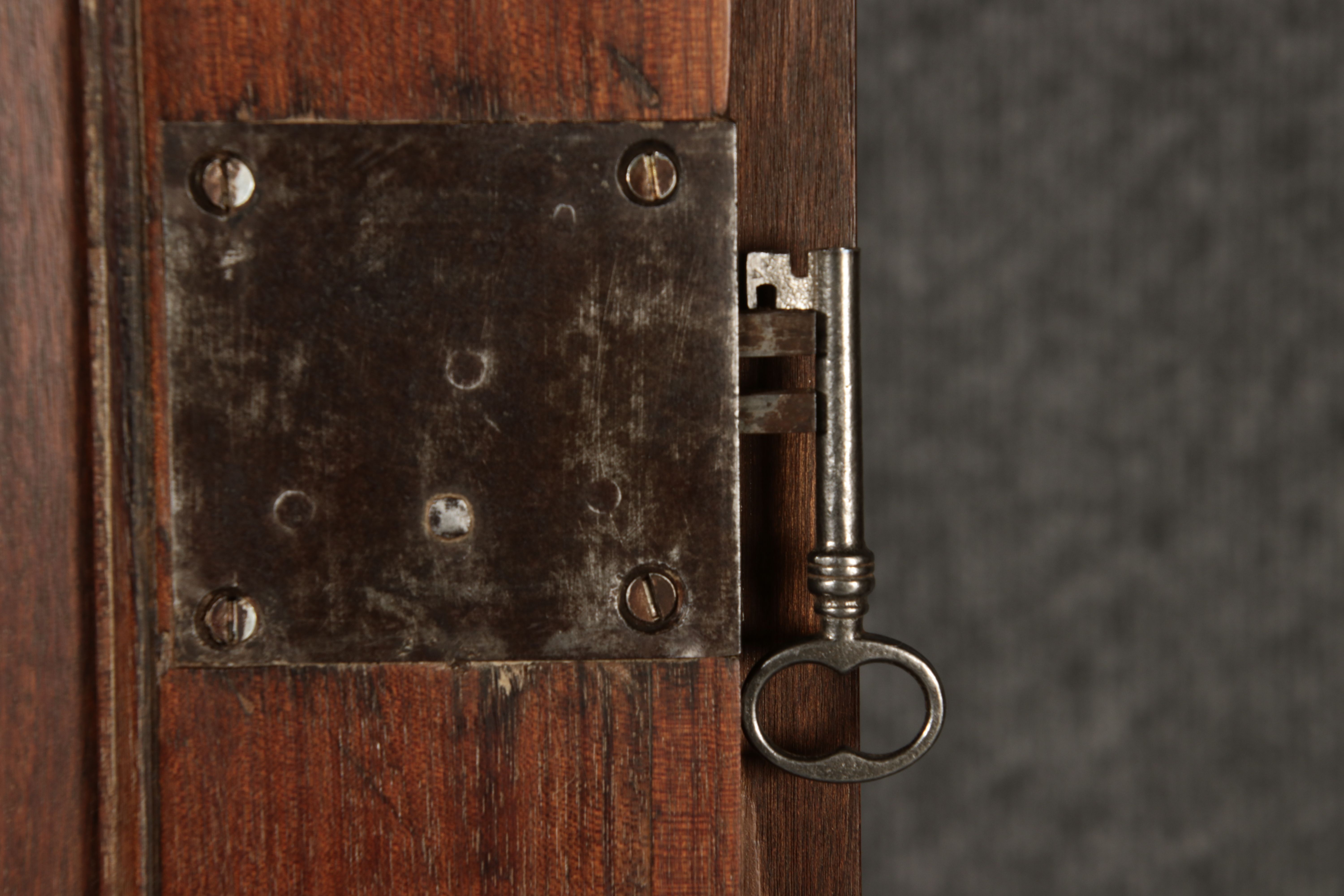 Jahrhundert – Mahagoni nur 99 cm Breit Dieser edle Sekretär aus dem 18. Jahrhundert ist ein exquisites Beispiel für europäische Handwerkskunst dieser Epoche und besticht durch seine hochwertige Verarbeitung aus massivem Mahagoniholz. Mit seiner imposanten Präsenz und der gelungenen Kombination von Funktionalität und Eleganz ist dieser Sekretär ein echtes Schmuckstück für Sammler und Liebhaber antiker Möbel. Der Sekretär besteht aus massivem Mahagoni, einem Holz, das im 18. Jahrhundert aufgrund seiner feinen Maserung und tiefen, warmen Farbgebung besonders beliebt war. Der warme, satte Farbton des Mahagoni wird durch die sanfte Patina, die sich über die Jahre entwickelt hat, noch betont. Die Oberflächen des Möbels weisen eine leicht glänzende Politur auf, die seine edle Erscheinung unterstreicht. Der Sekretär zeichnet sich durch seine klassische Zweiteilung aus: im Oberer Teil: Zwei aufwendig gearbeitete Flügeltüren mit eingesetzten Feldern öffnen sich und gewähren Zugang zu einem geräumigen Innenbereich. Dieser ist mit mehreren Regalböden ausgestattet, die ideal für die Aufbewahrung von Dokumenten, Büchern oder dekorativen Objekten geeignet sind. Die Türen sind mit Messingbeschlägen versehen, die dem Stück einen Hauch antiker Raffinesse verleihen. |