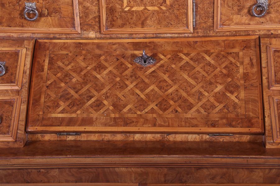 Konstruktion/construction: Der Sekretär besteht aus drei Teilen, Oberteil, Mittelteil und Unterteil.