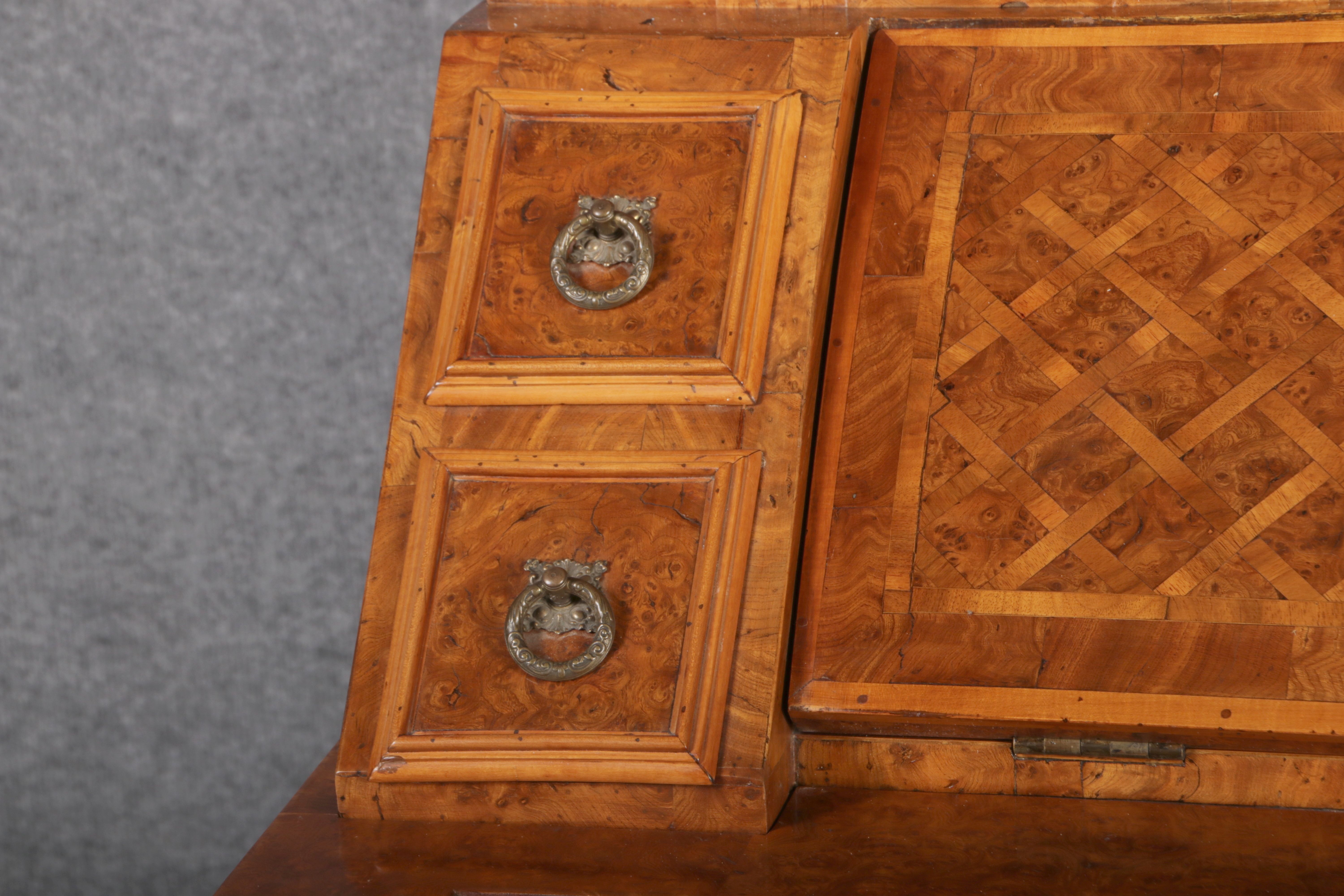 | Antiker Bedeutender Louis XVI-Sekretär Mainz, Meister Johann Michael Leistler 1786 Nussbaum | ||