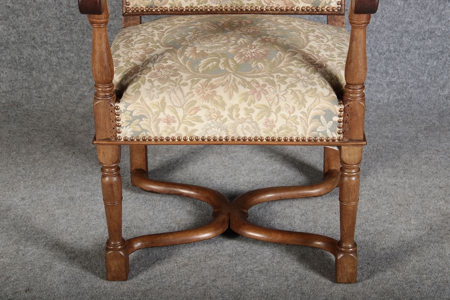 | Antike Sessel Sessel mit floralen Bezug um 1900 Nussbaum |