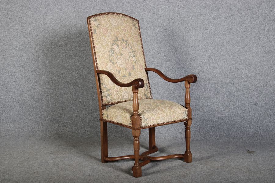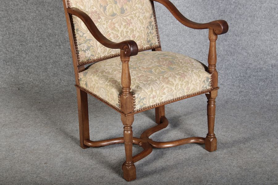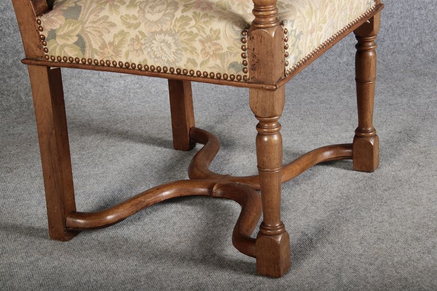 Antike Sessel Sessel mit floralen Bezug um 1900 Nussbaum |