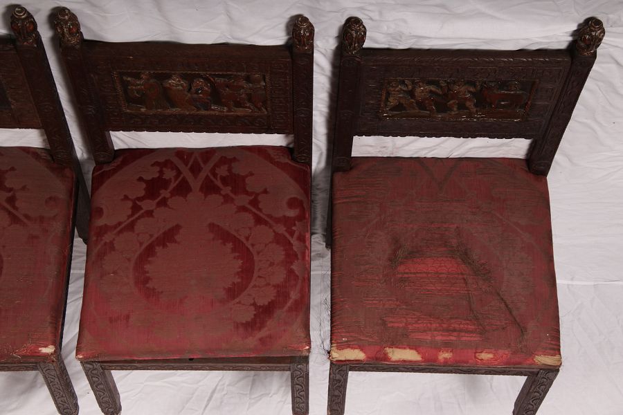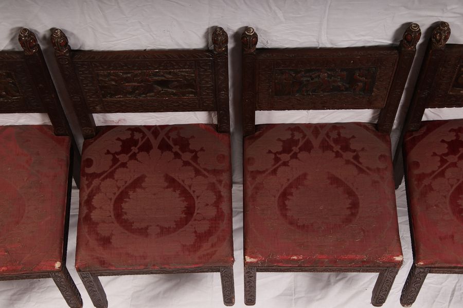 | 6 Antike Stühle mit Relief Schnitzerei im Renaissance Stil um 1900 |