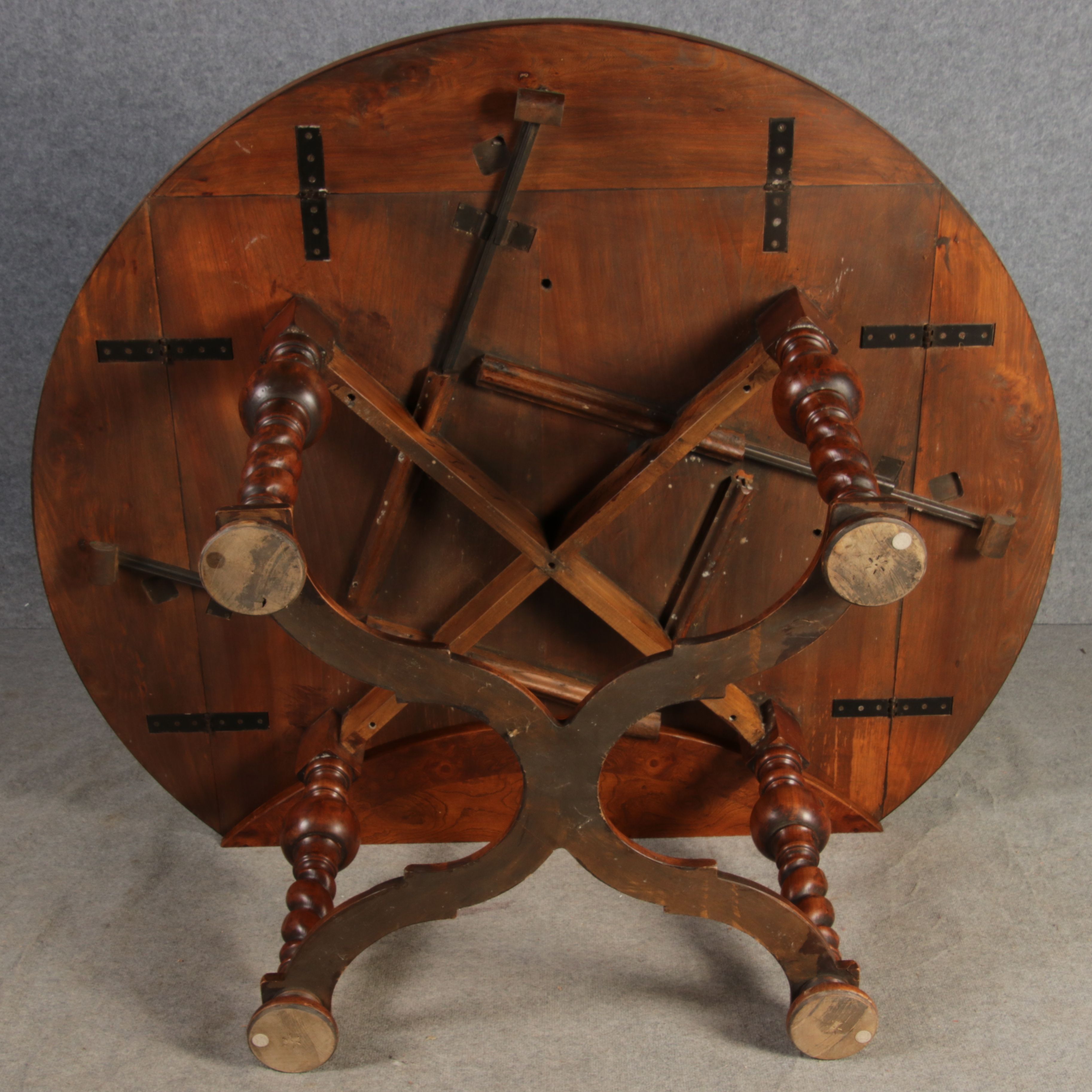 Masse/dimensions: Höhe/Height ca. 77,5 cm, Breite/Broad ca. 115 cm, Tiefe/depth ca.115 cm, Durchmesser ausgeklappt /Diameter unfolded ca. 163 cm. Holz, Schlüssel/wood,
