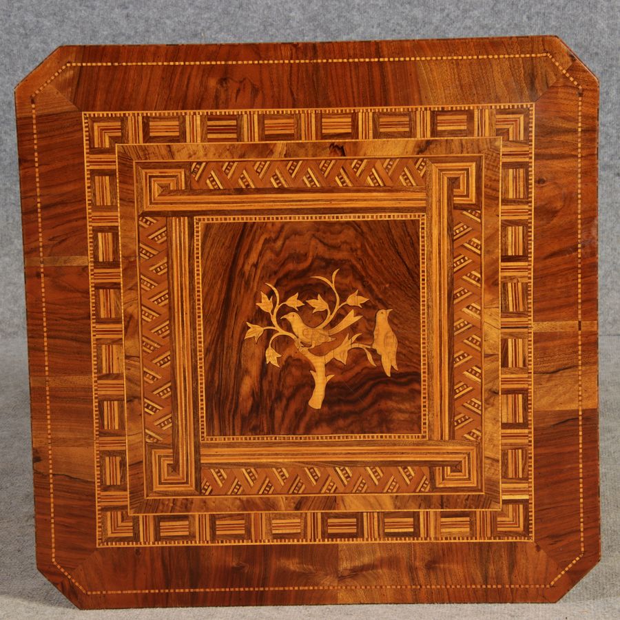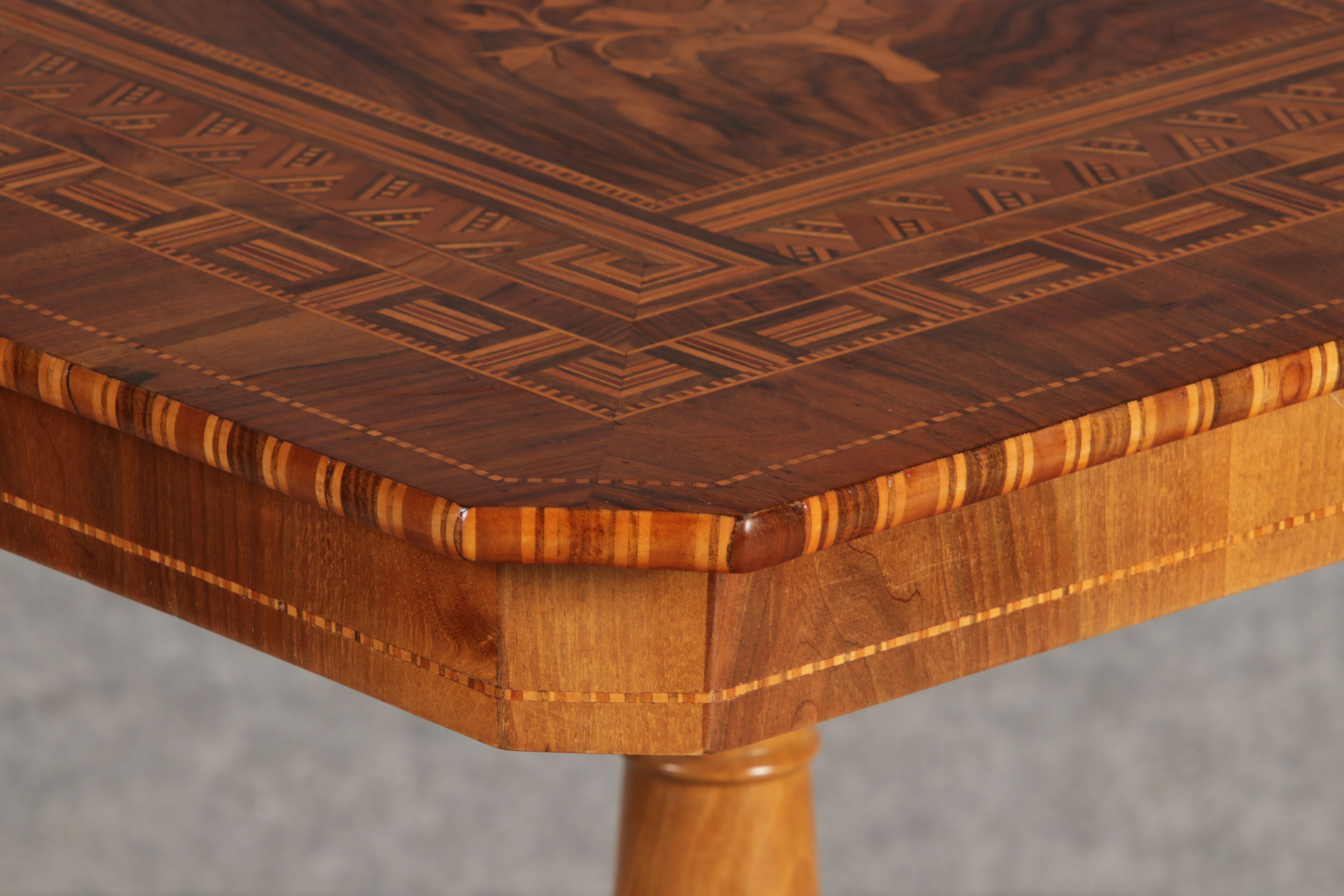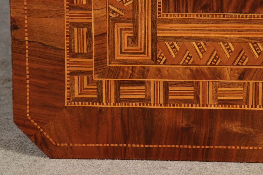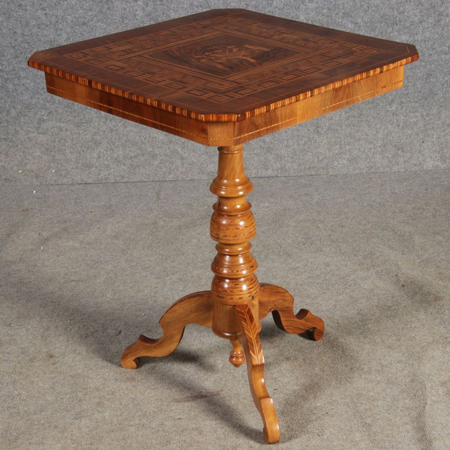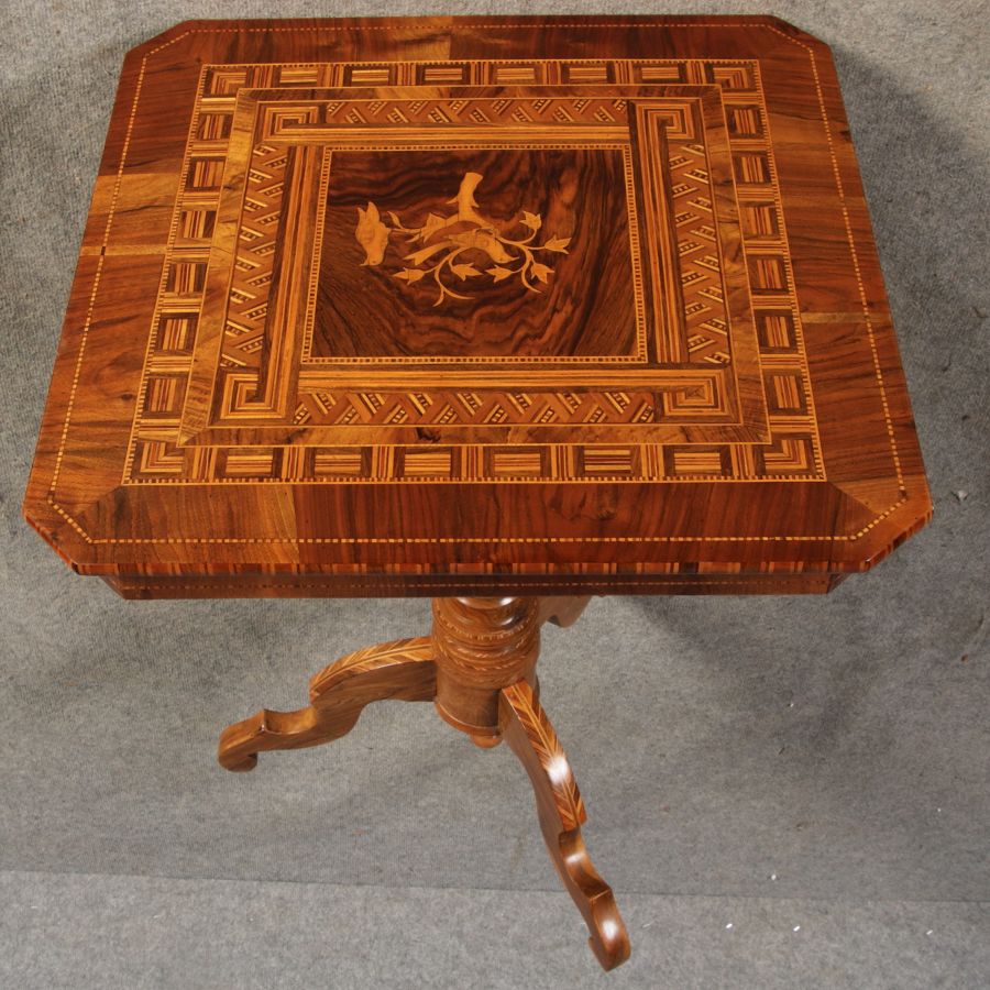 | Antiker Tarsia Rolo Tisch Nussbaum Italien 19. Jh Einlegearbeiten |