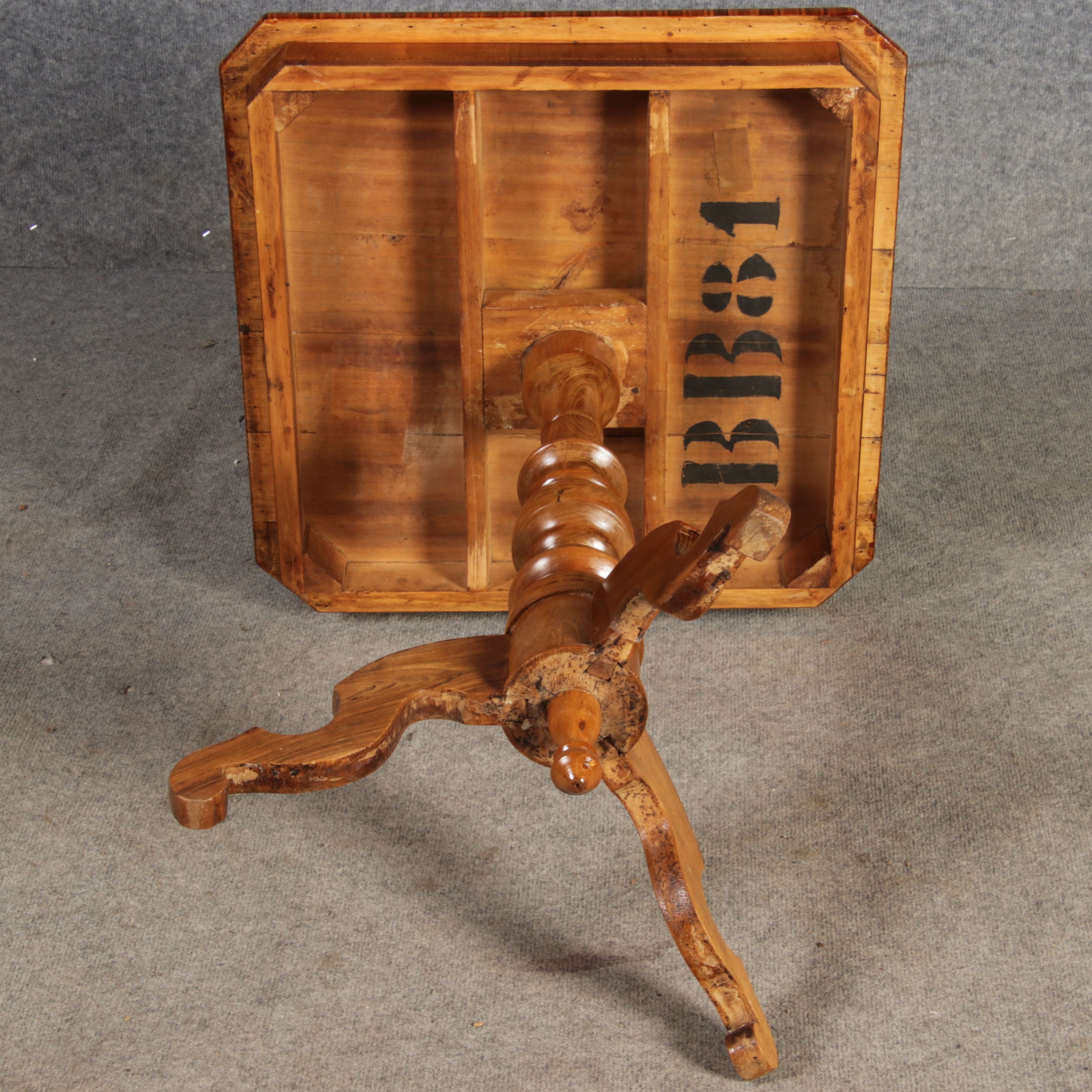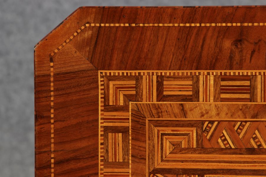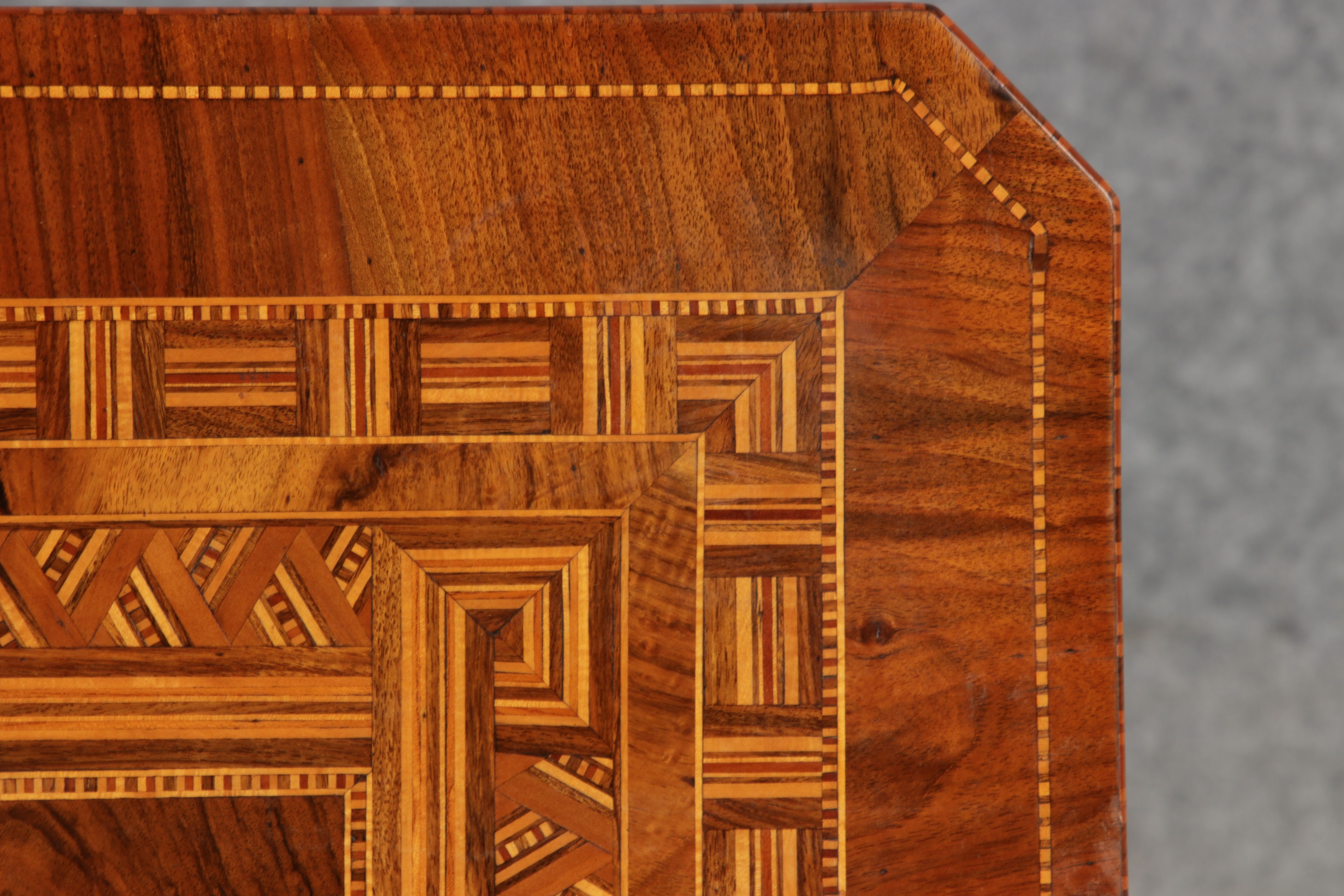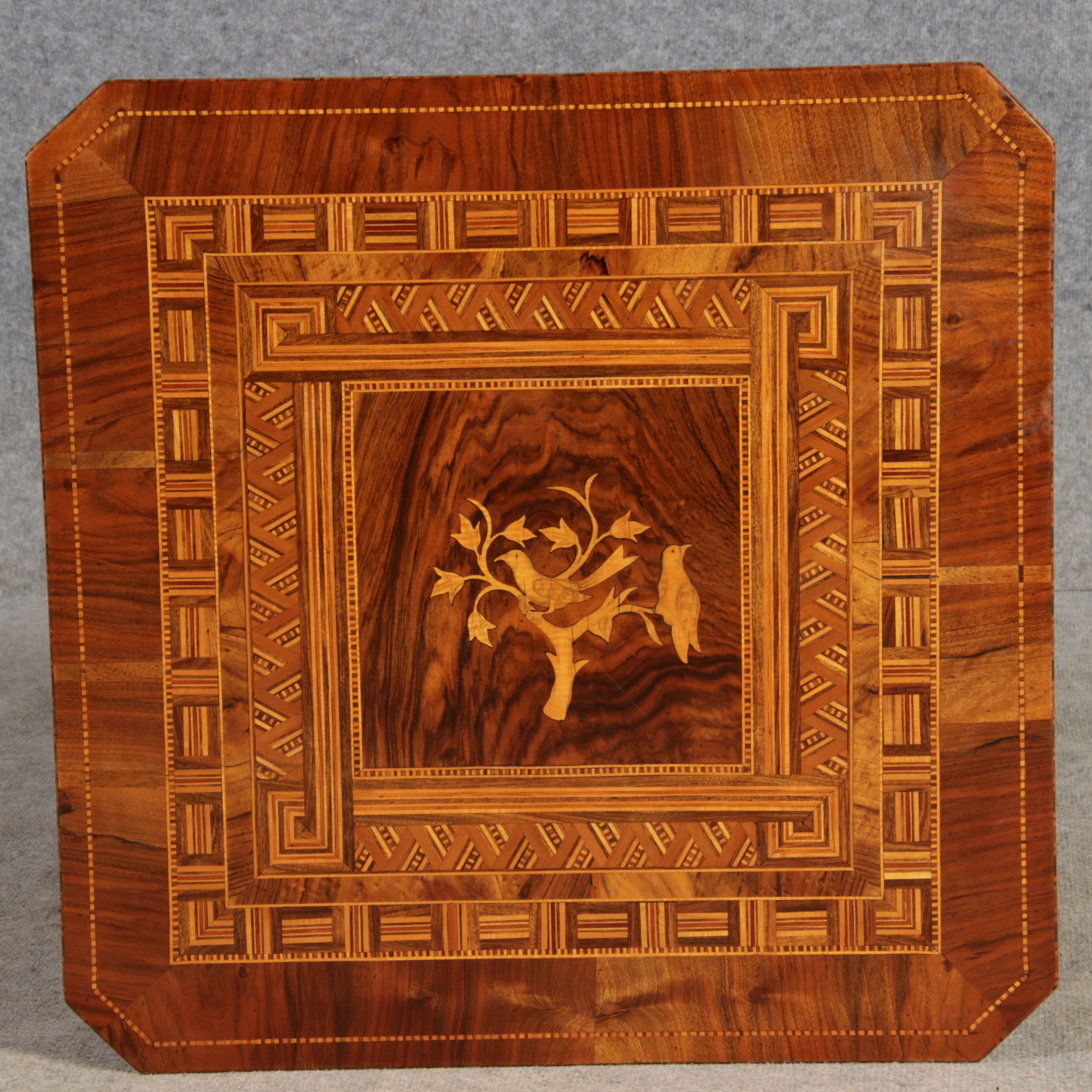 | Antiker Tarsia Rolo Tisch Nussbaum Italien 19. Jh Einlegearbeiten |