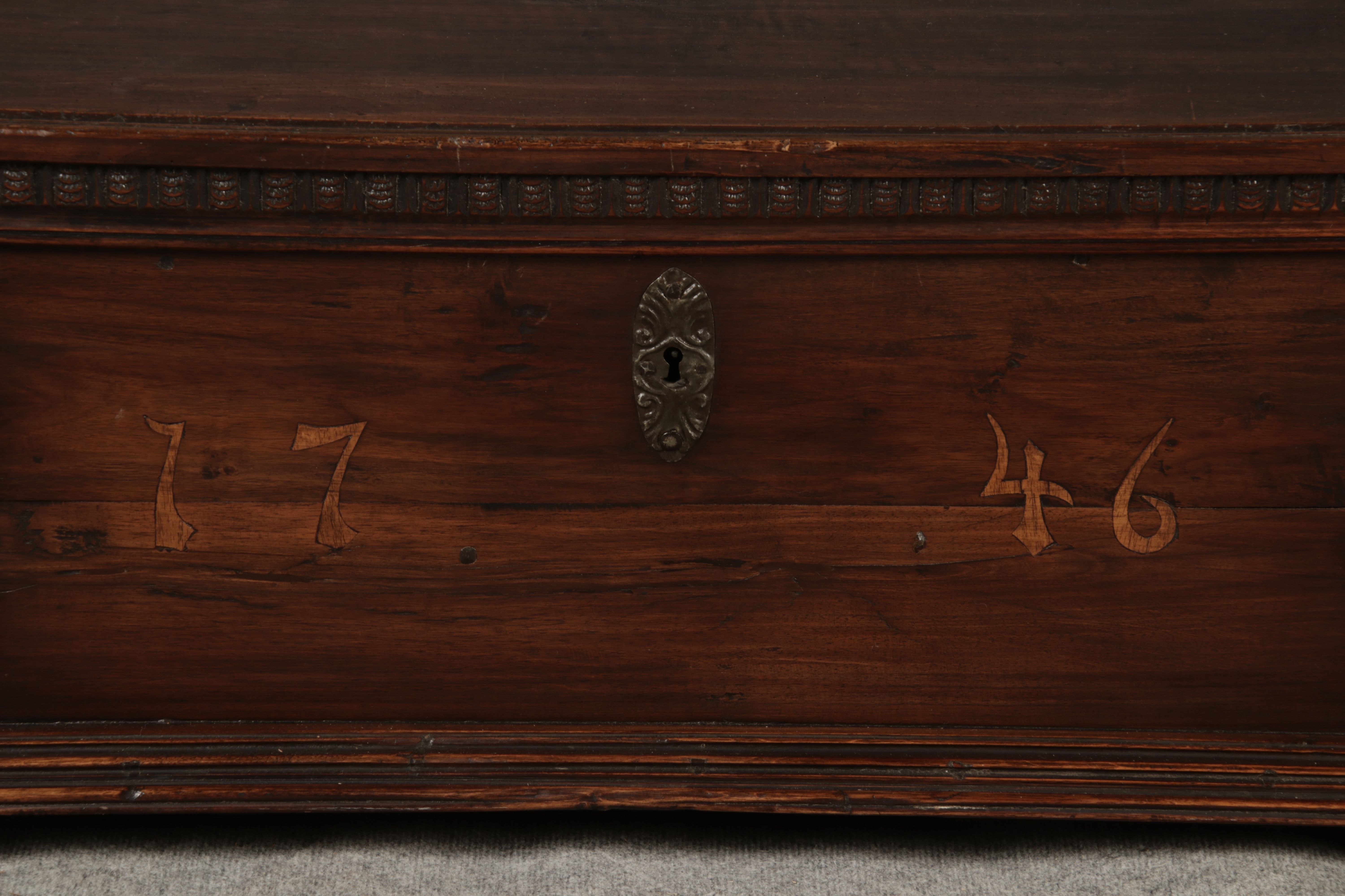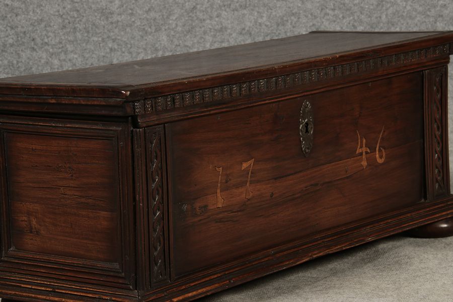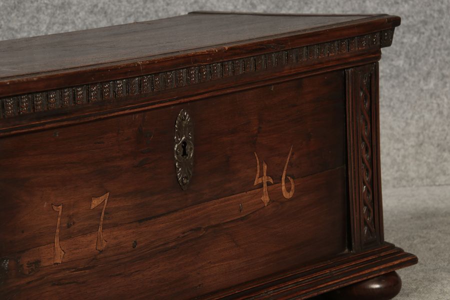Antike Kleine Barocktruhe Nussbaum 17/18 Jh. Datiert 1746 |