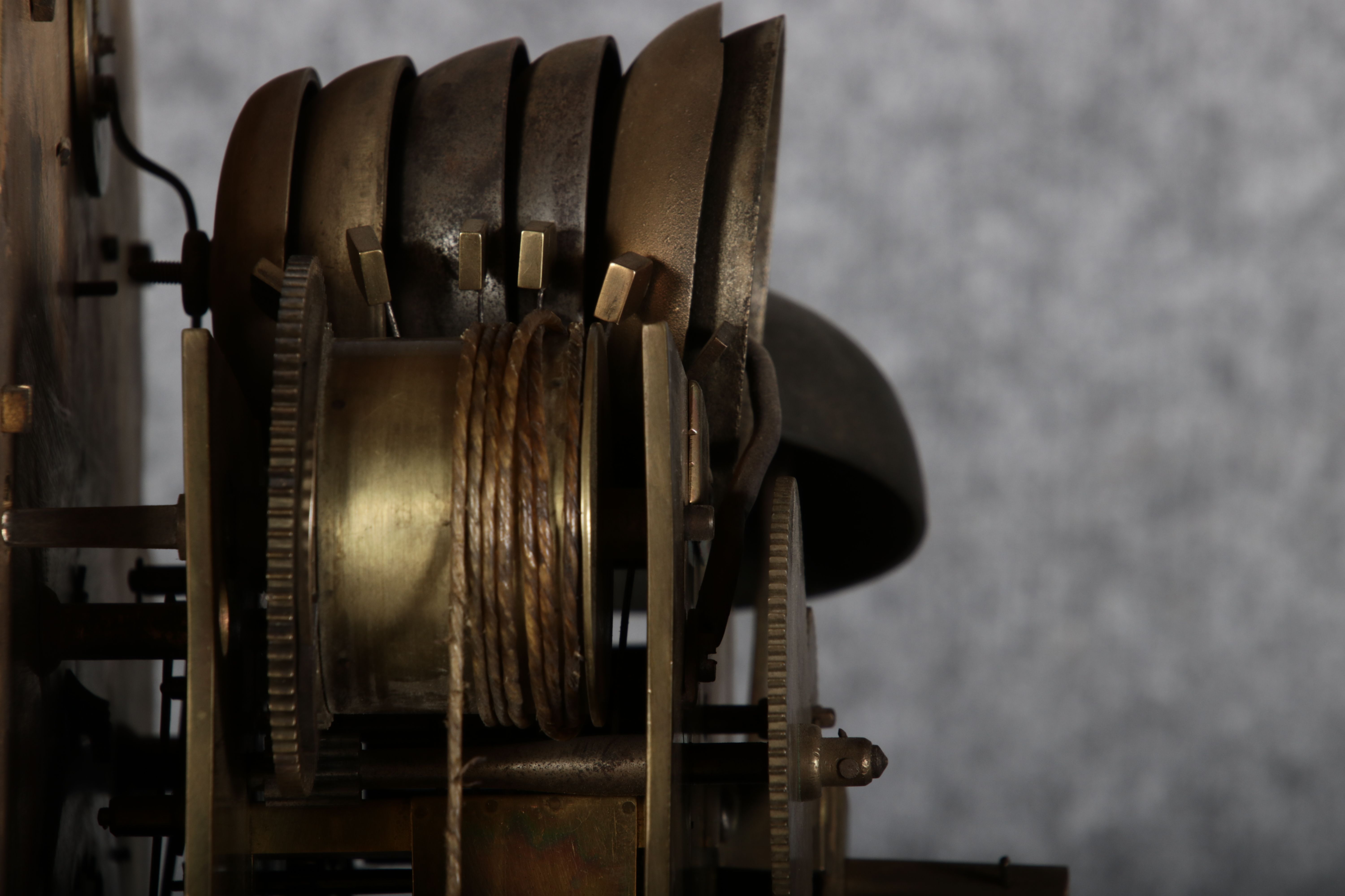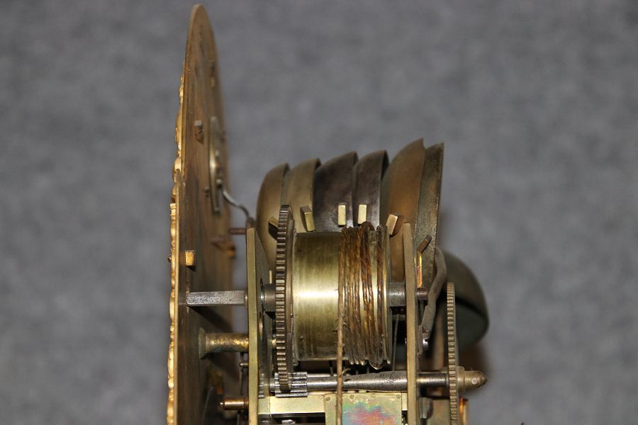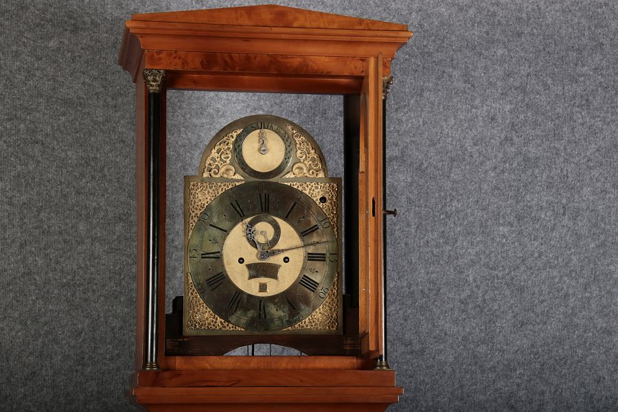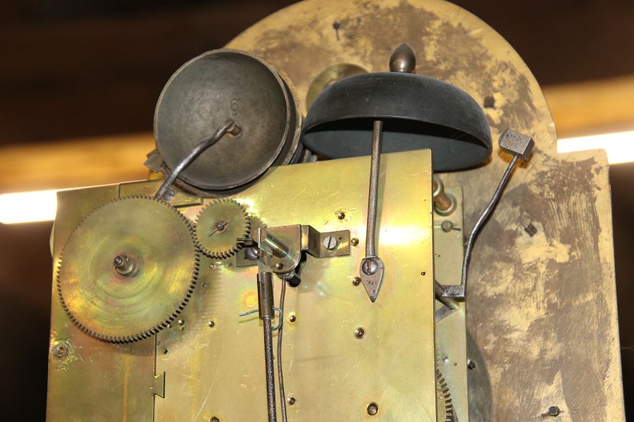 | Für XXL Bild hier klicken43 Antike Standuhr Glockenspiel Kirschbaum Anfang 19 Jh. Diese eindrucksvolle Standuhr mit Glockenspiel aus dem 19 Jh. ist ein hochwertiges antikes Möbelstück, das nicht nur als Zeitmesser, sondern auch als dekoratives Element dient. Sie besteht aus einem eleganten Holzgehäuse mit warmem, natürlichem Finish, das ihre klassische Optik unterstreicht. Der schlichte, geradlinige Korpus und das hohe Gehäuse verleihen der Uhr eine imposante Prämie. Zusätzlich zur optischen und klanglichen Schönheit bietet diese Standuhr einen faszinierenden Einblick in die traditionelle Uhrmacherkunst. Der mechanische Antrieb, sichtbar im Detail der Zahnräder und des Seilzugs, ist ein Meisterwerk der Präzision, das eine gleichmäßige und zuverlässige Zeitanzeige gewährleistet. Das Uhrwerk muss regelmäßig per Hand aufgezogen werden, was den Besitzer an die Sorgfalt und Hingabe erinnert, die mit einem solchen historischen Uhr verbunden ist. Das Uhrwerk zeigt die präzise Handwerkskunst und technische Raffinesse einer mechanischen Uhr, die über ein integriertes Glockenspiel, einen Sekundenzeiger und eine Datumsanzeige verfügt. Es handelt sich um ein massives Uhrwerk aus Messing, das für seine Langlebigkeit und Zuverlässigkeit bekannt ist. Die Kombination aus diesen Funktionen macht dieses Uhrwerk zu einem komplexen und wertvollen Stück, das weit über eine einfache Zeitmessung hinausgeht. |