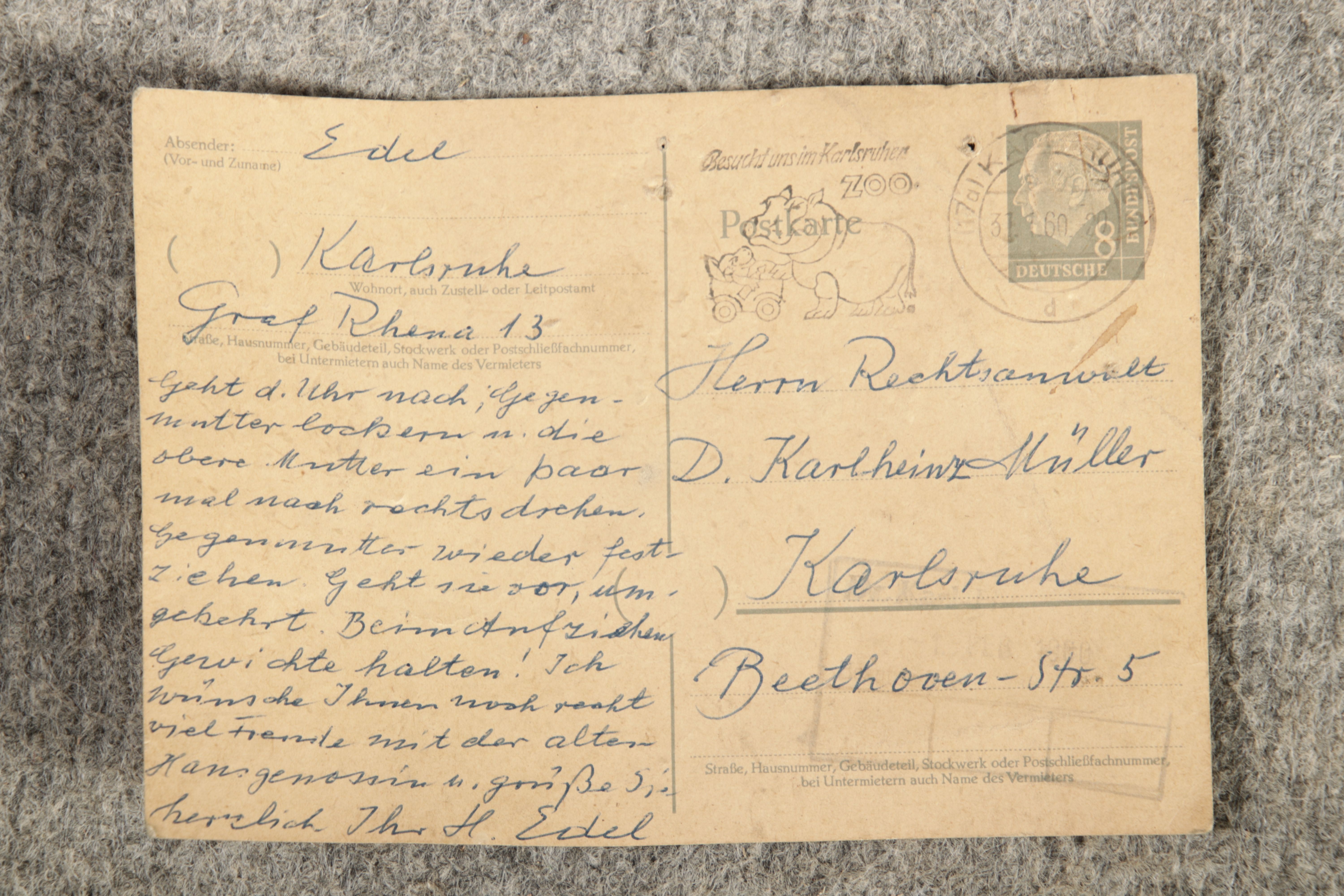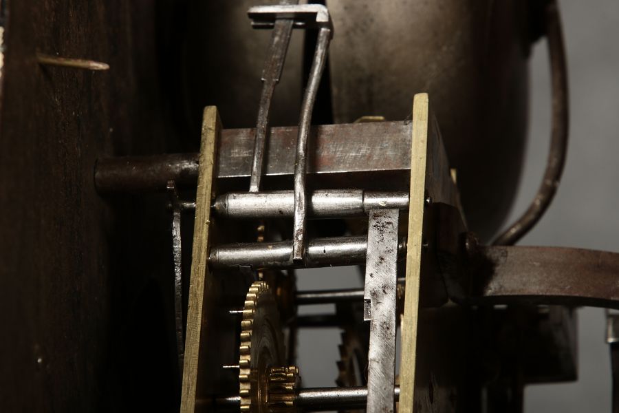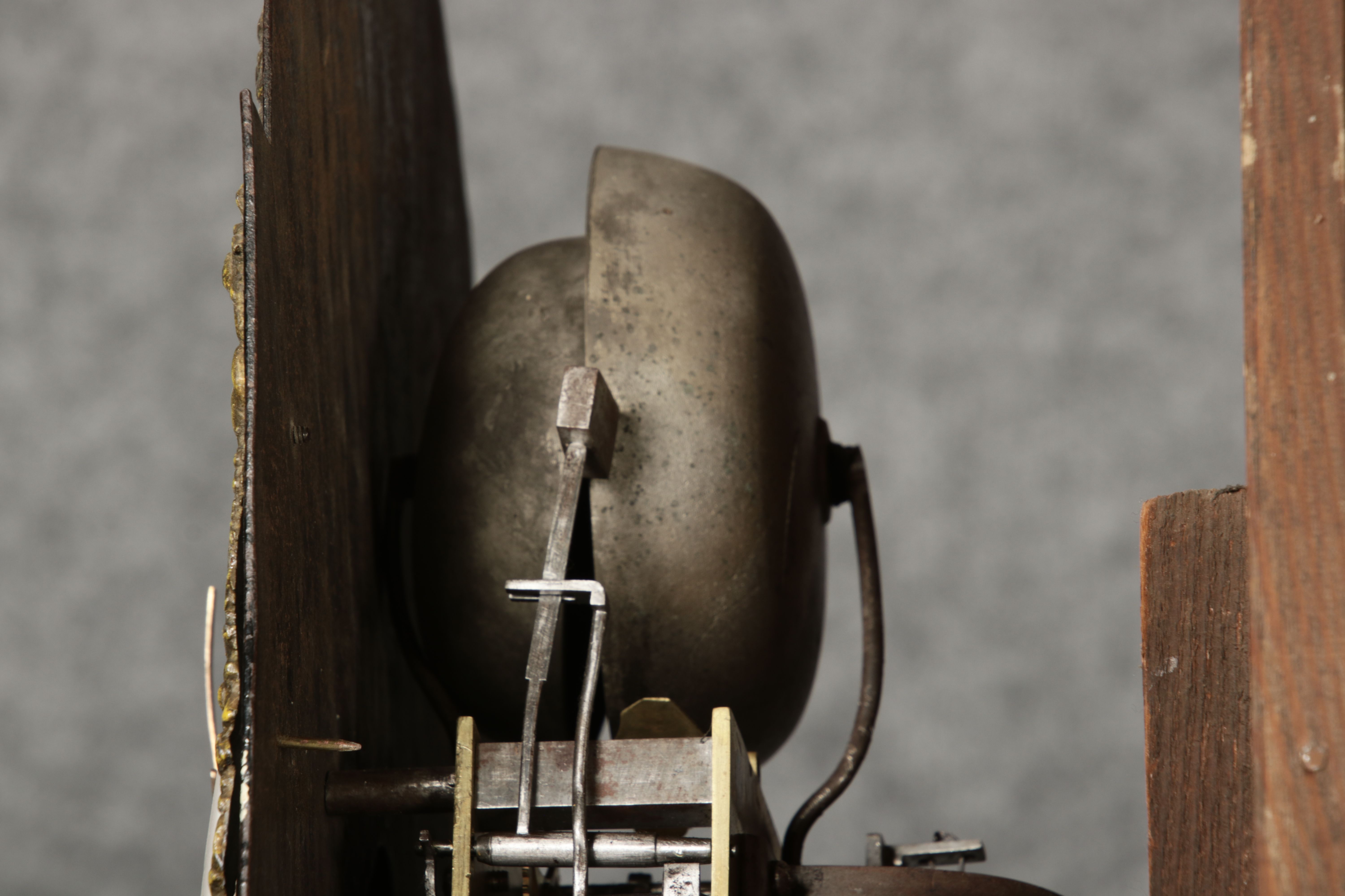 Für XXL Bild hier klicken1 ![]() Uhren Spezifikationen Art der Uhr Standuhr mit zwei Glocken Alter und Herkunft 18 Jahrhundert Gehäuse Material Eichen Holz Masse Höhe ca. 263 cm, Breite ca. 34,5/50,5 cm, Tiefe ca. 22,5/28,5 cm Material Uhrwerk Messing Eisen Silber Holz Pendel- Aufhängung Fadenaufhängung Hemmung und Gewichte Ankerhemmung Schlagwerk auf zwei Glocke 1/4 1/2 3/4 1/1 Stundenschlag auf kleine Glocke, schlag der vollen Stunde auf große Glocke. Kipphammer Schlagwerkssteuerung (der Glockenhammer kippt um von einer auf die andere Glocke zu wechseln). Zertifikate Dokumente alte Rechnung einer Überholung, Postkarte vom 31.01.1960 mit einer Handschriftlichen Anweisung für die Uhr. Zustand Gehäuse Guter Zustand mit Gebrauchsspuren, das Zifferblatt ist beschädigt, alt restauriert siehe Bilder. Bilder sind Bestandteil der Auktion. Zustand Uhrwerk Guter Zustand mit Gebrauchsspuren. Uhrwerk läuft an und ist nicht geprüft auf Funktion, keine Garantie das die Uhr läuft. Kann aber gerne von meinem Uhrmacher überholt werden. Preis und dauer der Überholung auf Anfrage. Bilder sind Bestandteil der Auktion. |