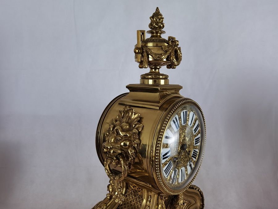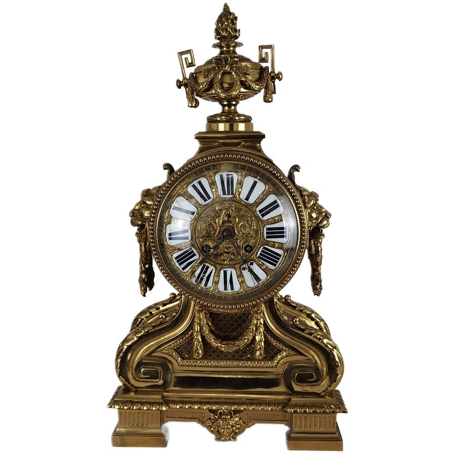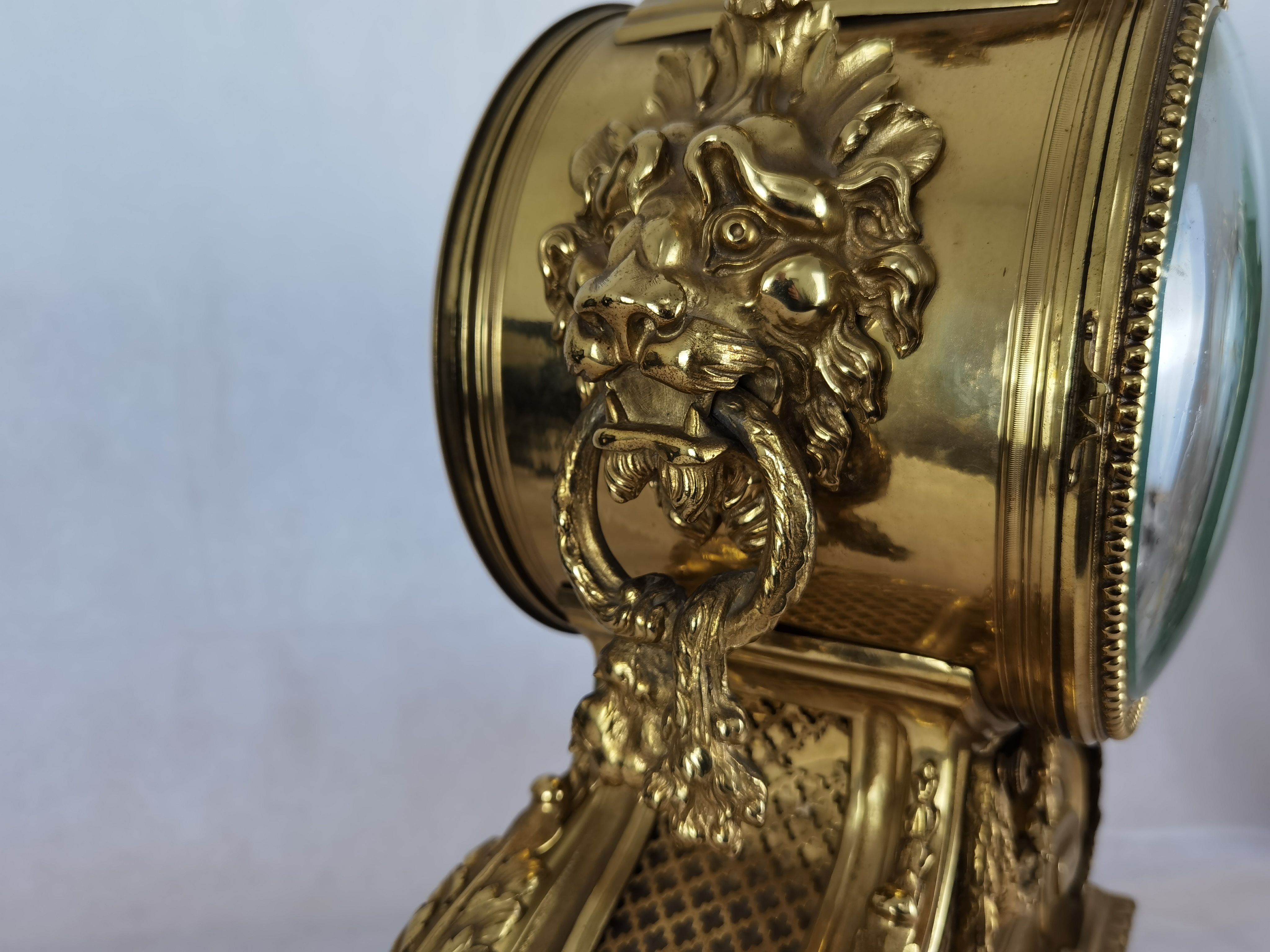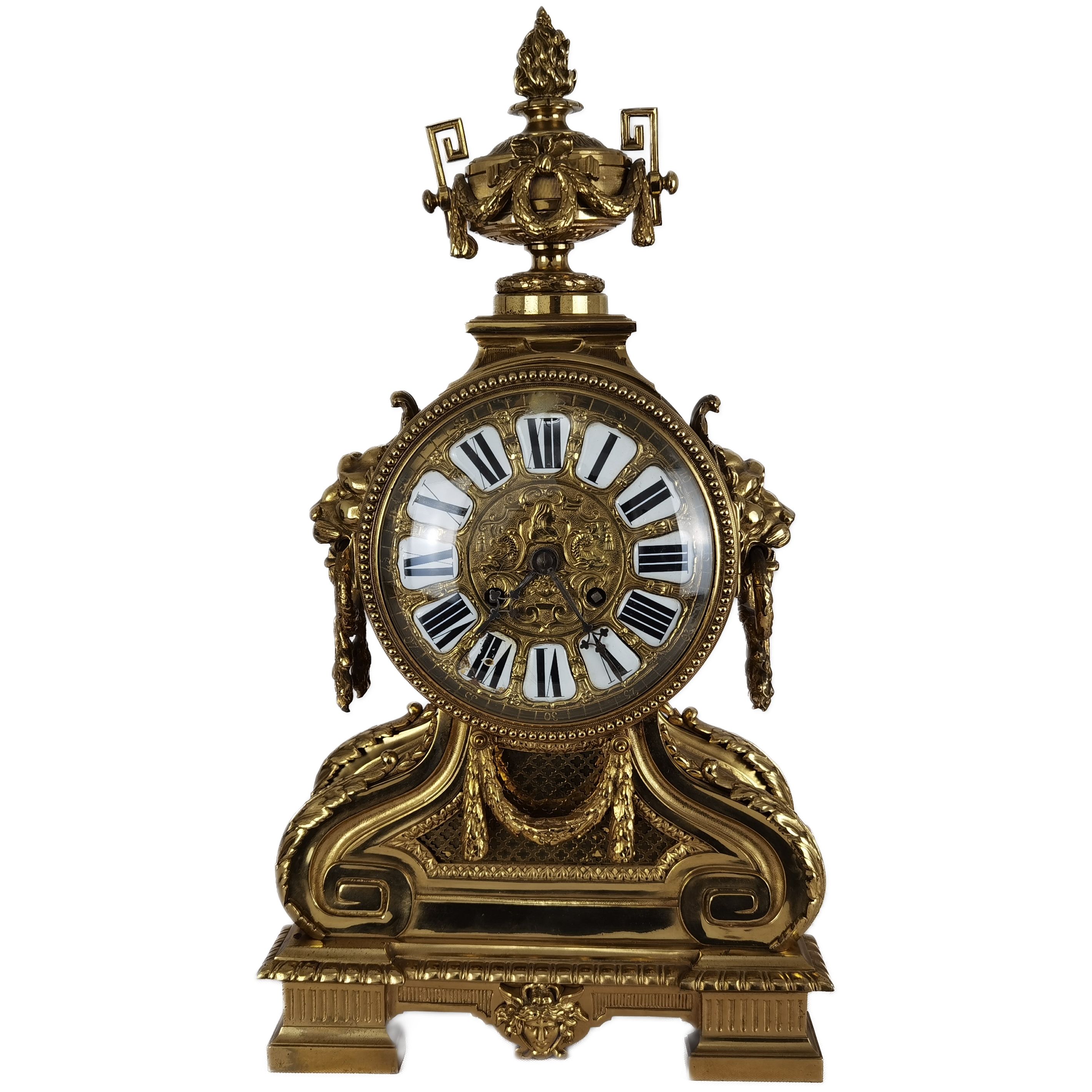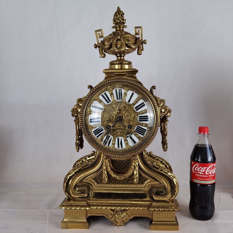 | Sehr große Antike 22 kg schwere vergoldete Bronze Prunk Pendüle |