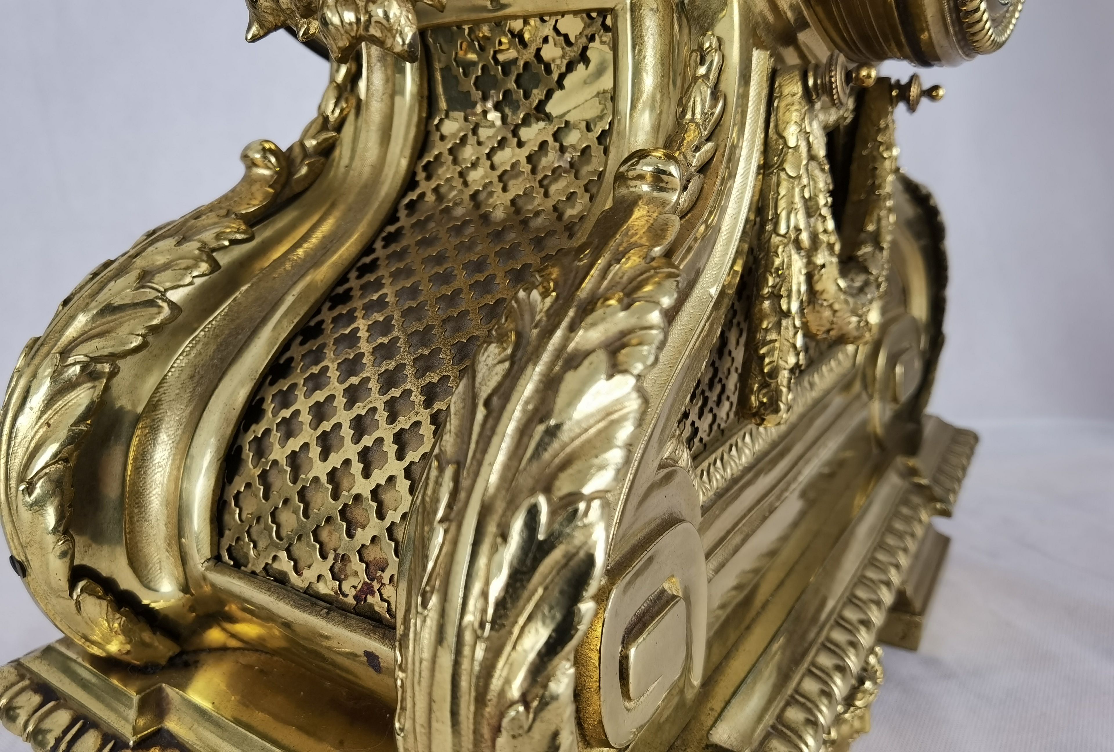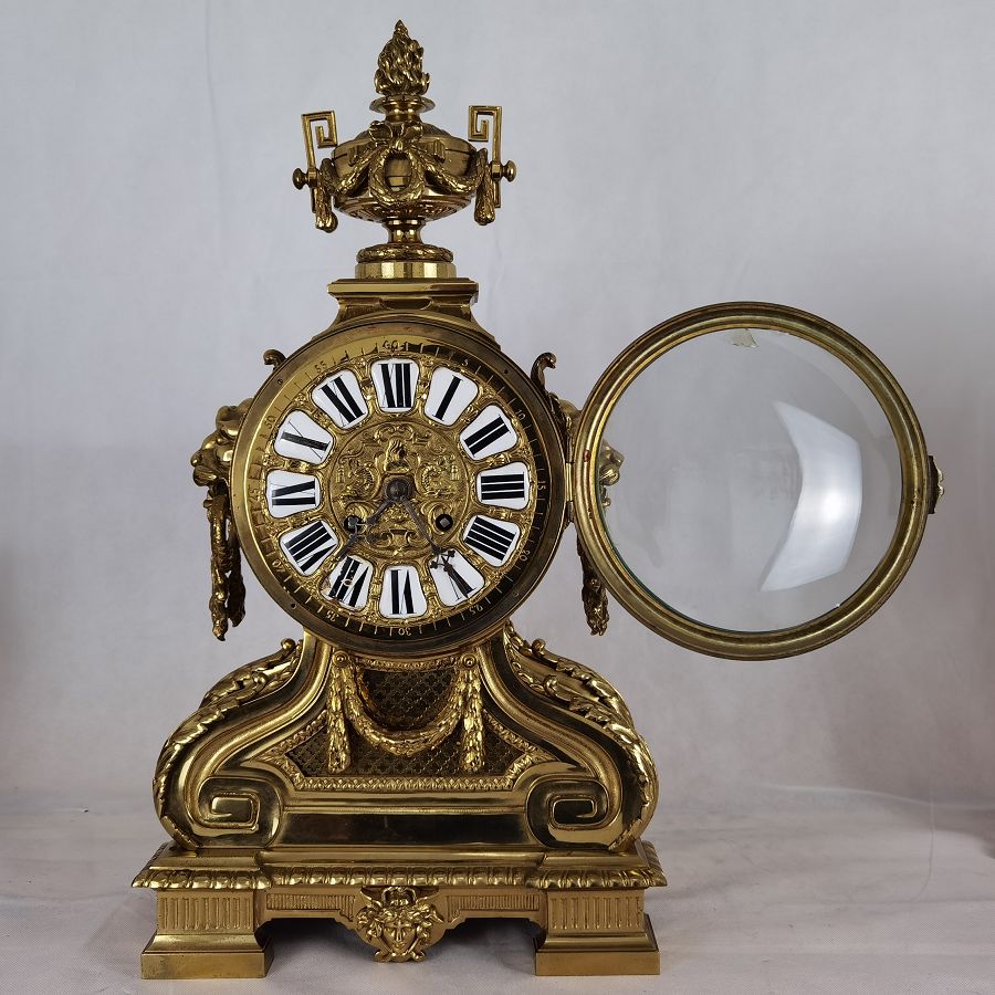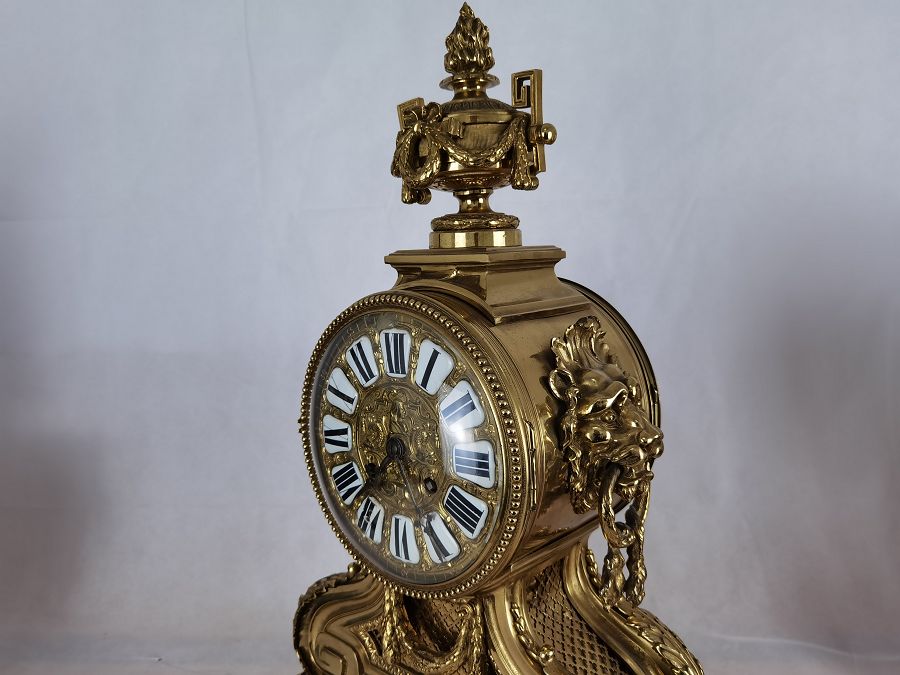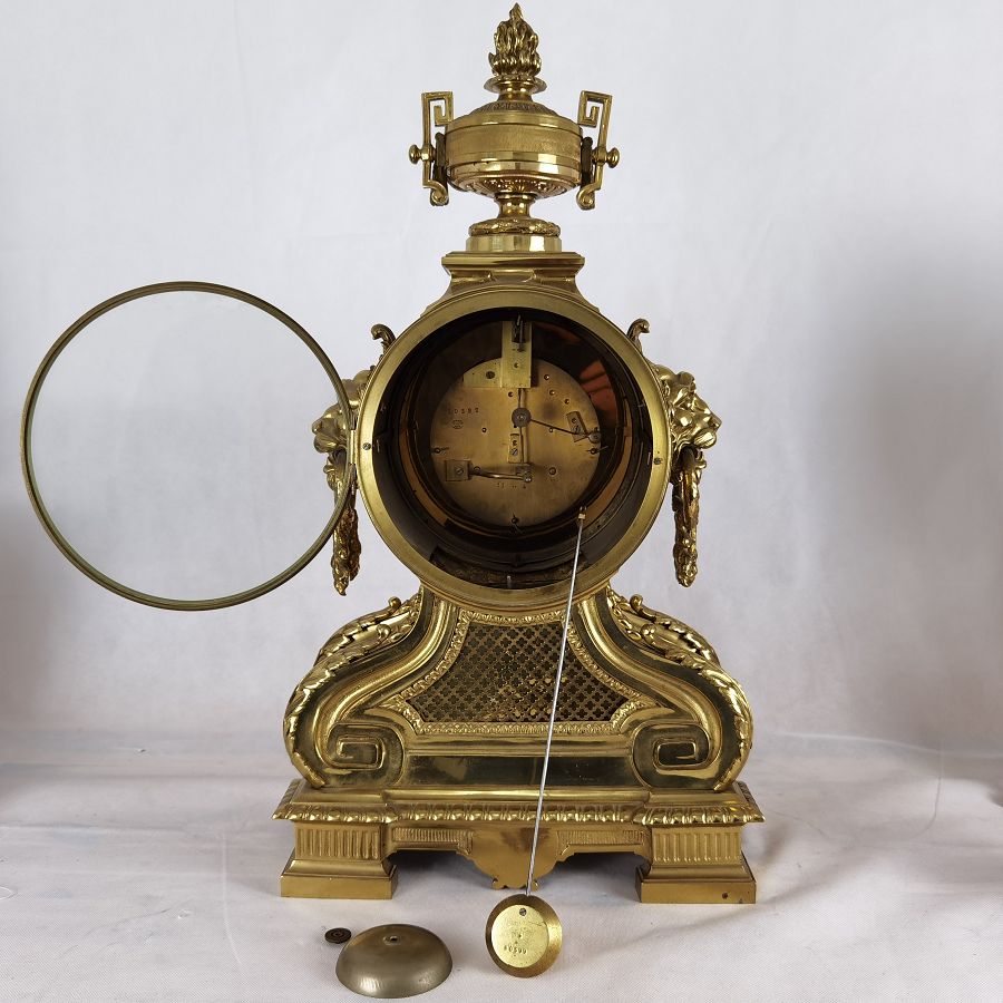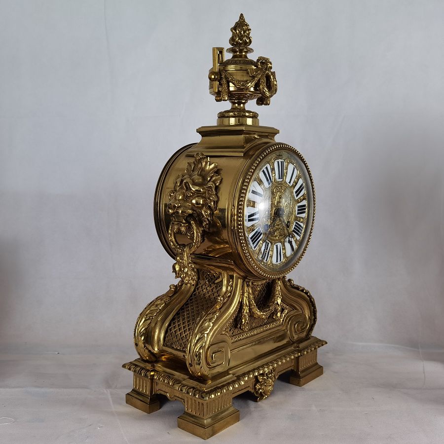 | Sehr große Antike 22 kg schwere vergoldete Bronze Prunk Pendüle |
