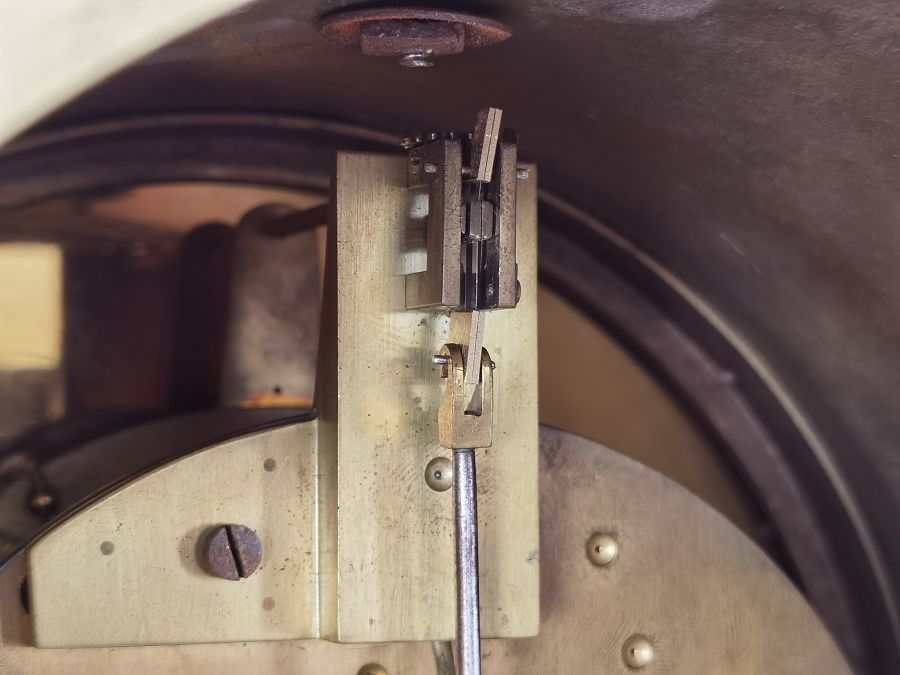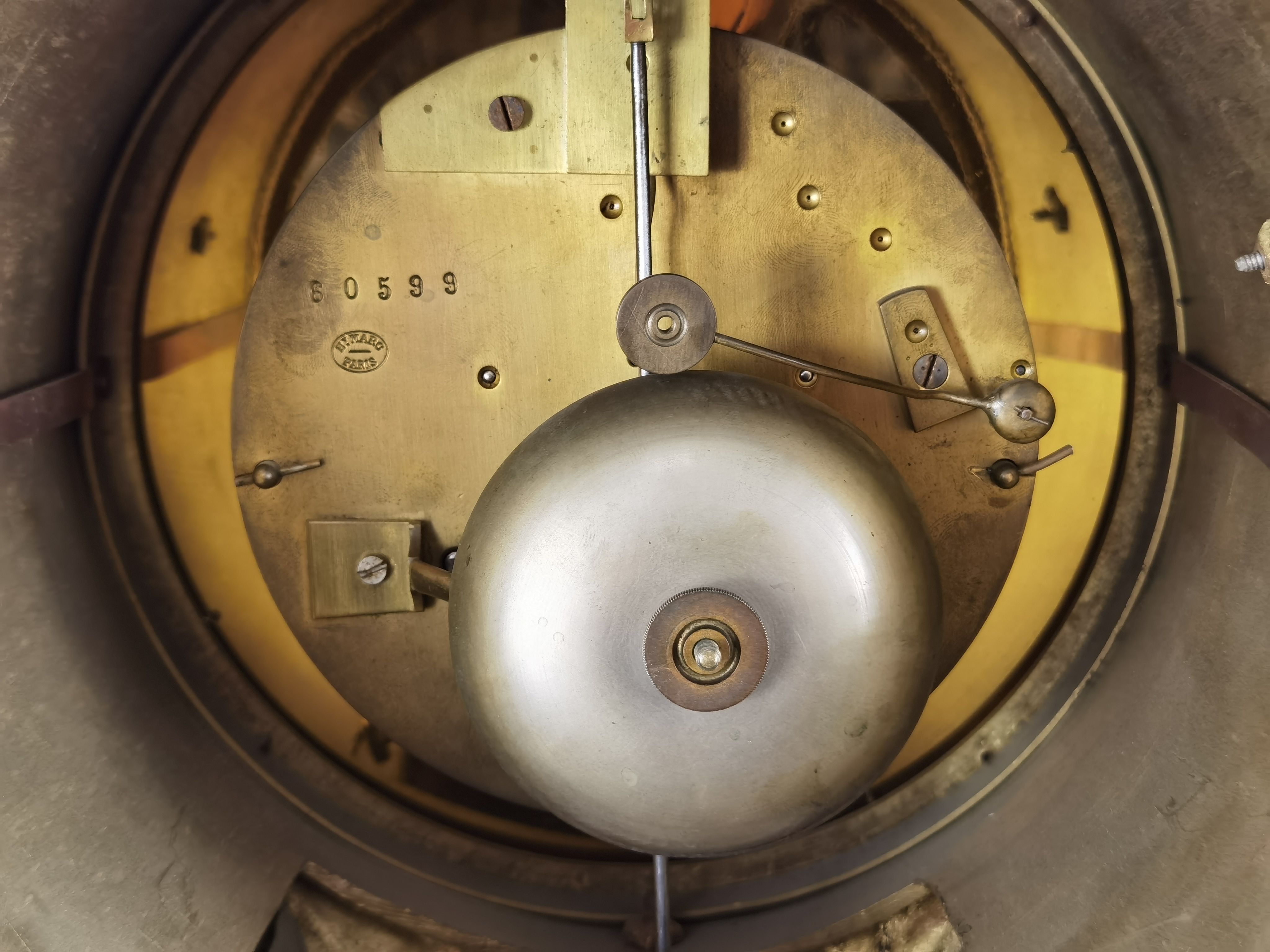 Für XXL Bild hier klicken1 Uhren Spezifikationen Art der Uhr Pendüle Kamin- Uhr Tisch- Uhr Wecker Alter und Herkunft Alter Wahrscheinlich um 1870 und die Herkunft ist Frankreich Paris Gehäuse Material Bronze vergoldet Masse und Gewicht der Uhr Höhe ca. 67 cm, Breite ca. 36 cm, Tiefe ca. 19,5 cm und ca. 22 kg Material Uhrwerk Messing Eisen Pendel- Aufhängung Pendelfeder Hemmung und Gewichte Ankerhemmung Zylinderhemmung Schlagwerk Stundenschlag Schlag auf Glocke Zustand Gehäuse Sehr Guter Zustand mit fast keinen Gebrauchsspuren, kleine Beschädigung am Ziffernblatt und der Glases. Bilder sind Bestandteil der Auktion. Zustand Uhrwerk Guter Zustand Gebrauchsspuren. Uhrwerk läuft gut, jedoch ohne Garantie. Bilder sind Bestandteil der Auktion. |