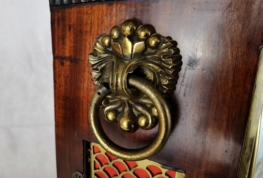 Uhren Spezifikationen Art der Uhr Pendüle Kamin- Uhr Tisch- Uhr Alter und Herkunft Alter ist um 1820 und die Herkunft ist England London Gehäuse Material Messing Holz Mahagoni Masse Uhr Höhe ca. 53 cm, Breite ca. 30 cm, Tiefe ca. 17 cm Pendel- Aufhängung Pendelfeder Schlagwerk 1/1 Schlag auf Glocke mit Repetition Nachtmodus Zustand Gehäuse Guter Zustand mit Gebrauchsspuren, teilweise ergänzt, beschädigt, mit Fehlstellen, Schlösse fehlen. Bilder sind Bestandteil der Auktion. Zustand Uhrwerk Guter Zustand mit Gebrauchsspuren. Uhrwerk läuft einwandfrei. Bilder sind Bestandteil der Auktion. |
