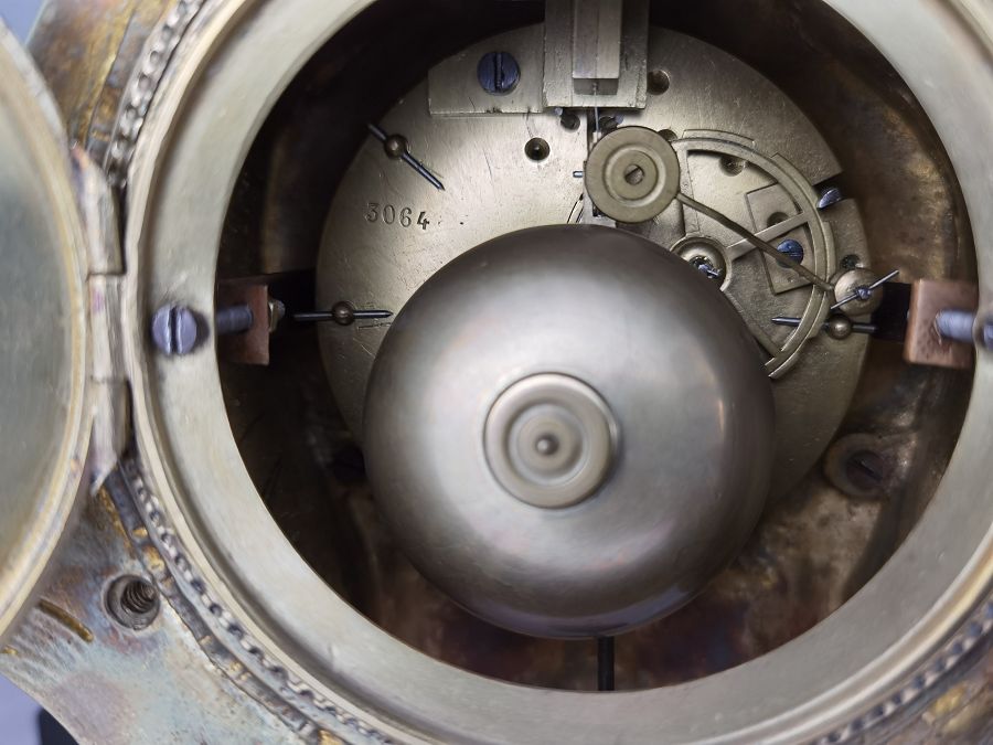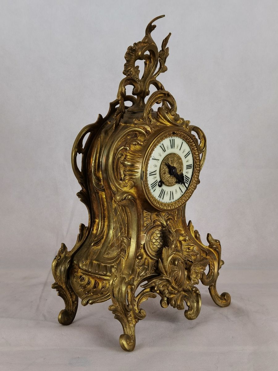 Für XXL Bild hier klicken1 Uhren Spezifikationen Art der Uhr Wanduhr Pendüle Kamin- Uhr Tisch- Uhr Alter und Herkunft Alter Wahrscheinlich um 1855 und die Herkunft ist Frankreich Gehäuse Material Messing Bronze Masse Uhr Höhe ca. 38 cm, Breite ca. 22,5 cm, Tiefe ca. 12 cm Masse Beisteller Höhe ca. 35 cm, Breite ca. 19,5 cm, Tiefe ca. 19,5 cm Material Uhrwerk Messing Eisen Silber Holz Pendel- Aufhängung Pendelfeder Hemmung und Gewichte Ankerhemmung Schlagwerk 1/1 1/2 Schlag auf Glocke Zustand Gehäuse Guter Zustand mit Gebrauchsspuren. Bilder sind Bestandteil der Auktion. Zustand Uhrwerk Guter Zustand mit Gebrauchsspuren. Uhrwerk läuft, jedoch ohne Garantie. Bilder sind Bestandteil der Auktion. |