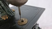 Uhren Spezifikationen Art der Uhr Standuhr Wanduhr Pendüle Kamin- Uhr Tisch- Uhr Wecker Alter und Herkunft Alter Wahrscheinlich um 1880 und die Herkunft ist Frankreich Gehäuse Material patiniertes Metall Masse Uhr Höhe ca. 62 cm, Breite ca. 31,5 cm, Tiefe ca. 19 cm Schlagwerk 1/1 1/2 Schlag auf Glocke Zustand Gehäuse Guter Zustand mit geringen Gebrauchsspuren, hinterer Deckel hat einen Sprung in der Glasscheibe. Bilder sind Bestandteil der Auktion. Zustand Uhrwerk Guter Zustand mit geringen Gebrauchsspuren. Uhrwerk läuft einwandfrei. Nach dem Transport braucht es etwas Feingefühl um die Uhr auszurichten. Bilder sind Bestandteil der Auktion. |