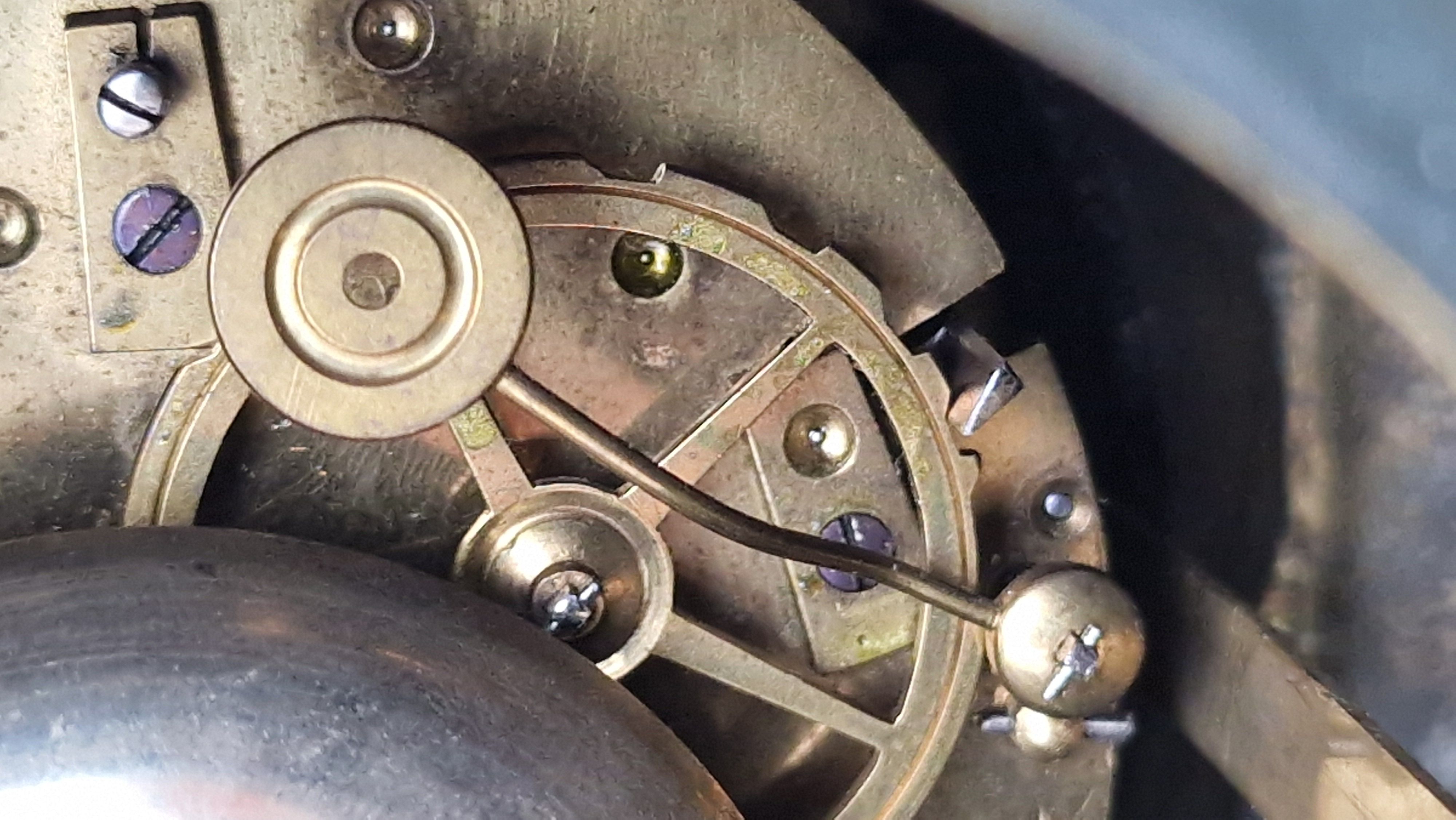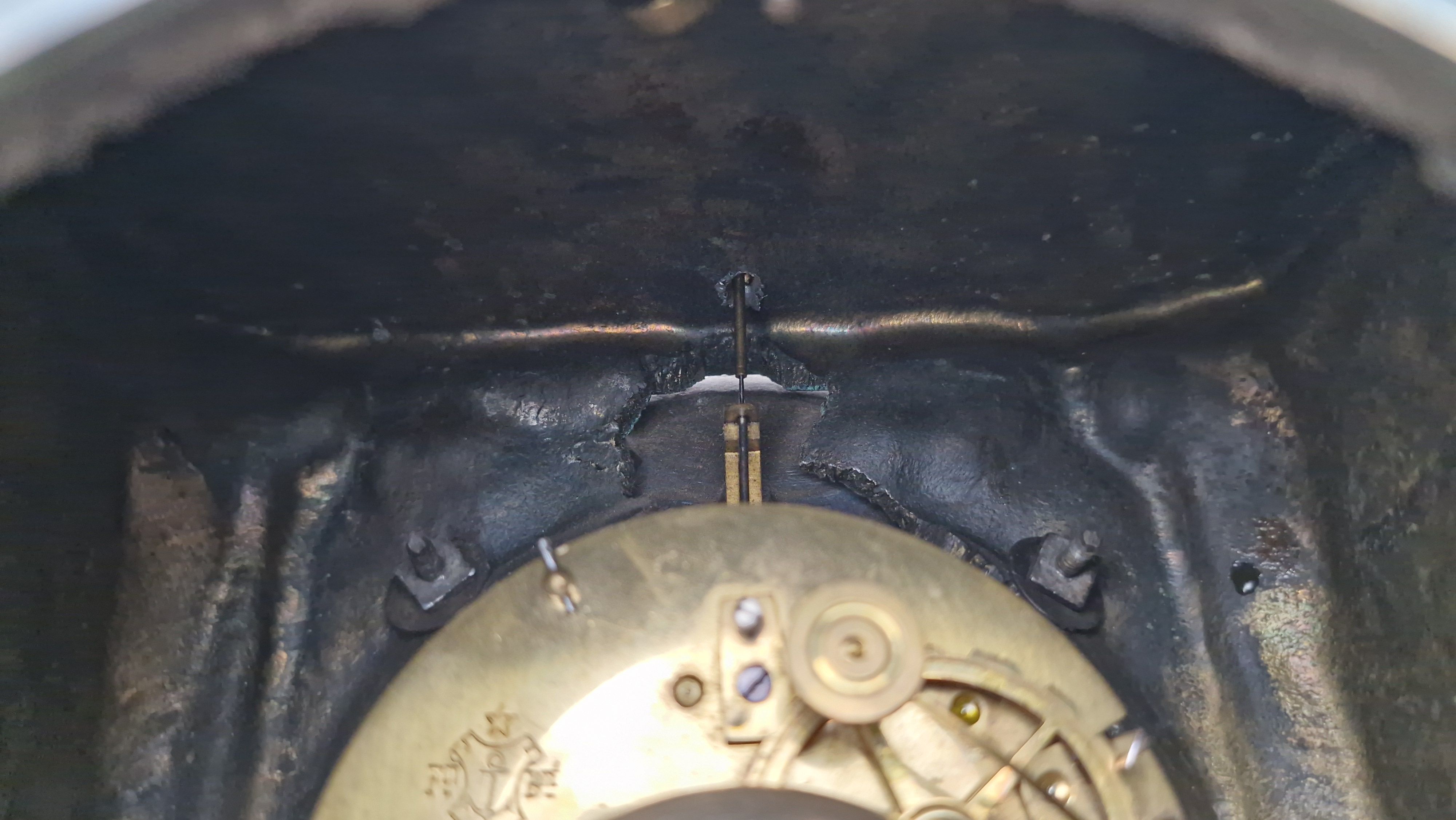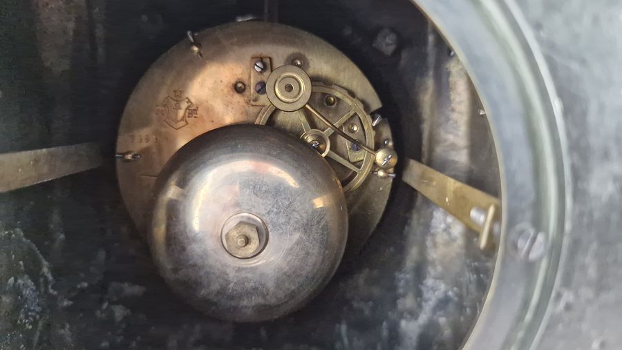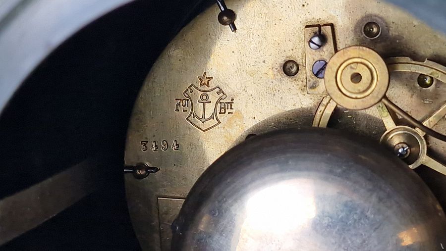 Roosevelt-Hotel in New Orleans steht (zum Teil aus Watch-Wiki). Nun zu dieser Uhr selbst: Es ist eine ganz normale Französische Kaminuhr. Das Gehäuse besteht aus zwei Teilen, Metallguss Patiniert und teilweise Goldlack überzogen sind. Das Email Ziffernblatt wird durch eine Lünette mit geschliffenen falsettierten Glas geschützt. Hinten ist das Werk durch einen Lünette mit Milchglas geschützt Zum Uhrwerk: Auf der hinteren