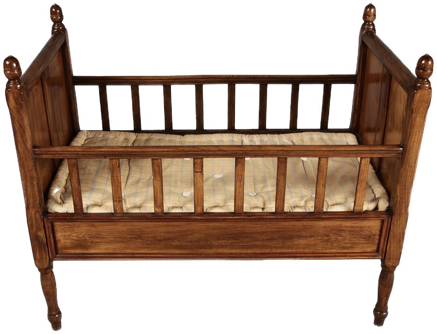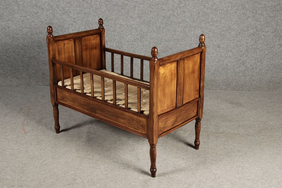 | Antikes Biedermeier Kinderbett Puppenbett 19 Jh. Nussbaum |
