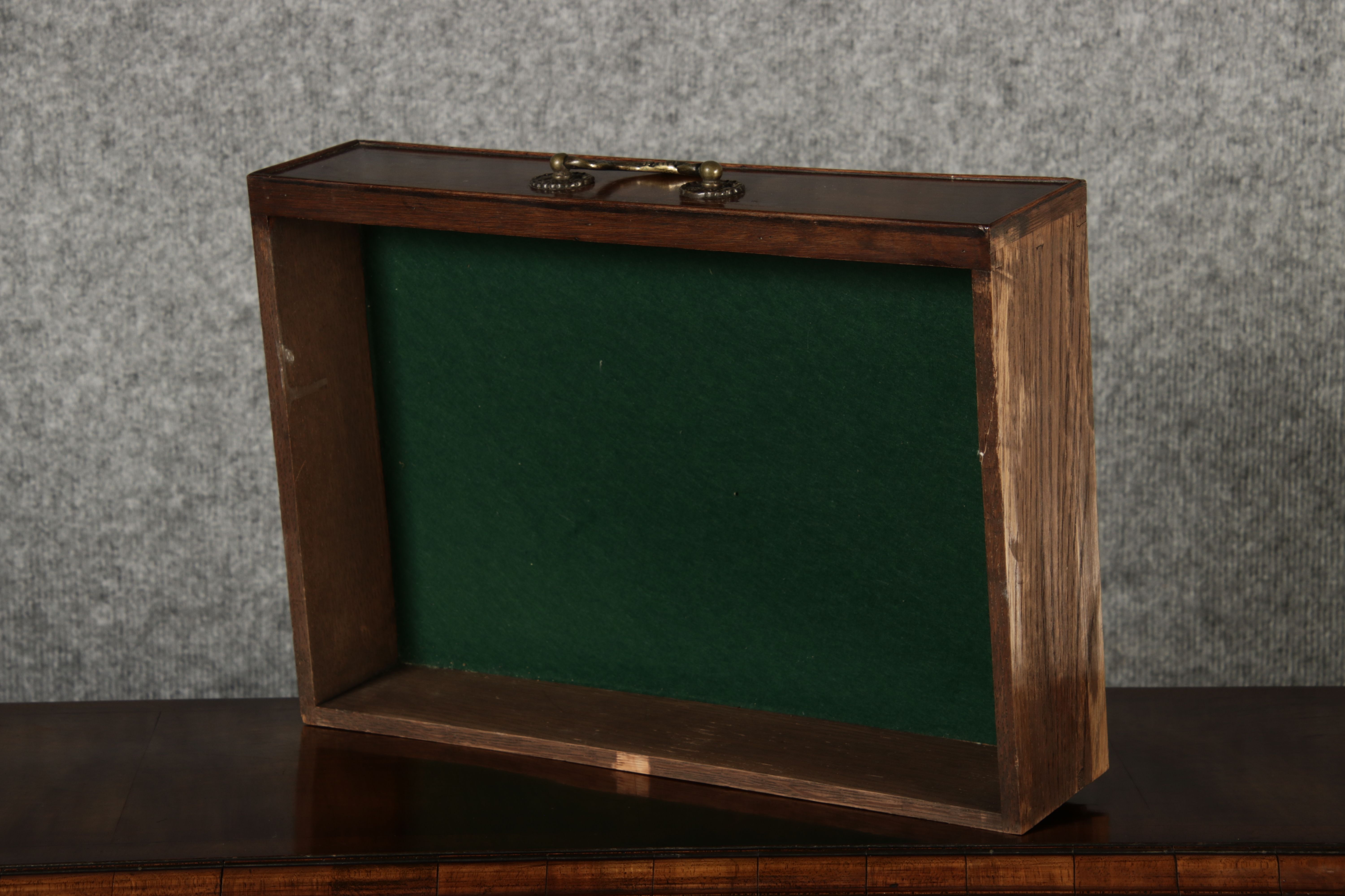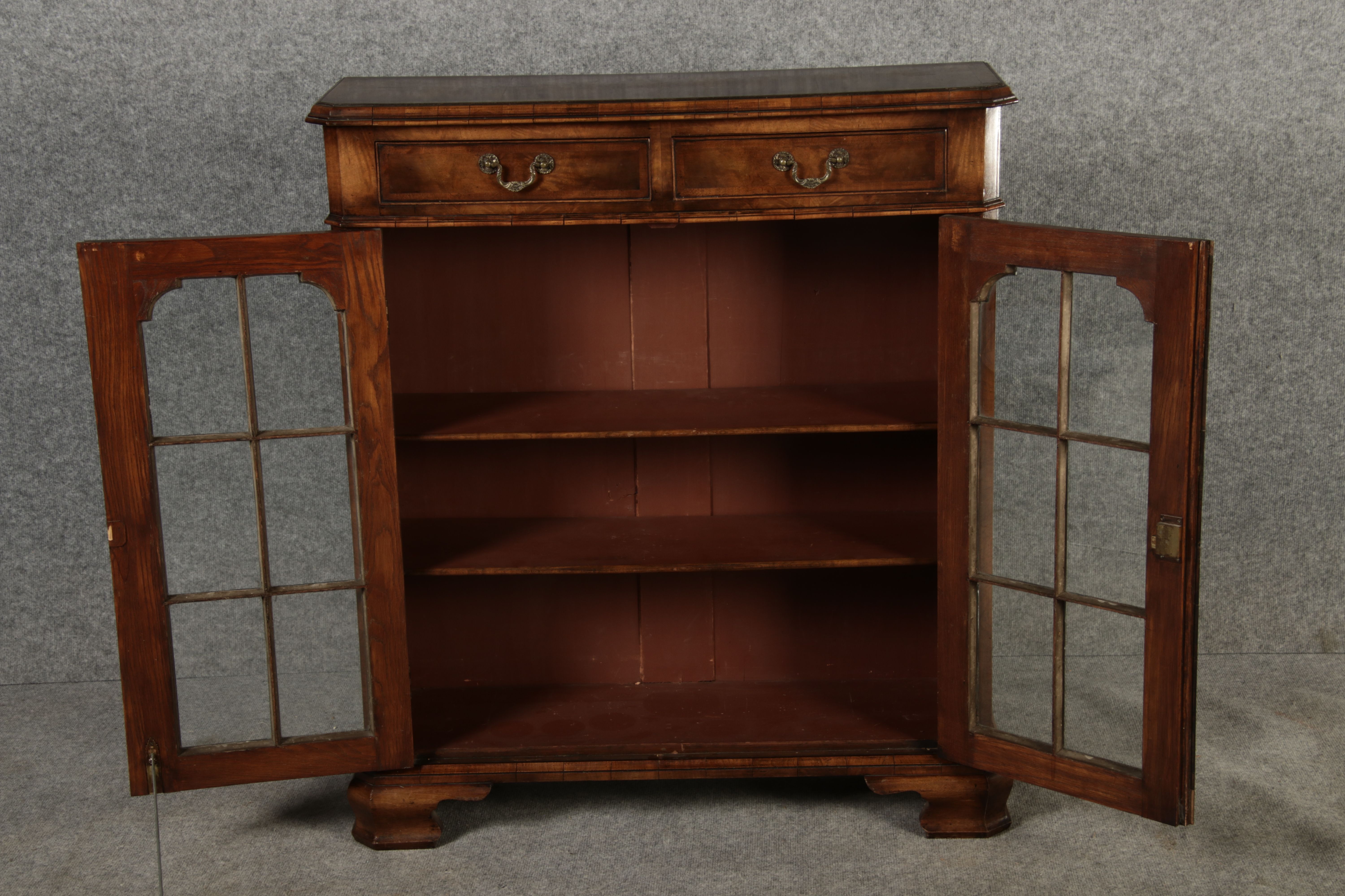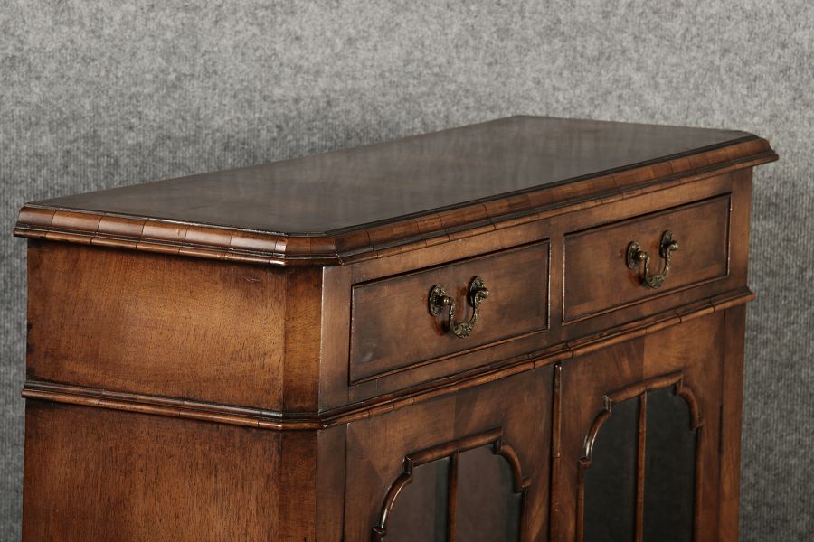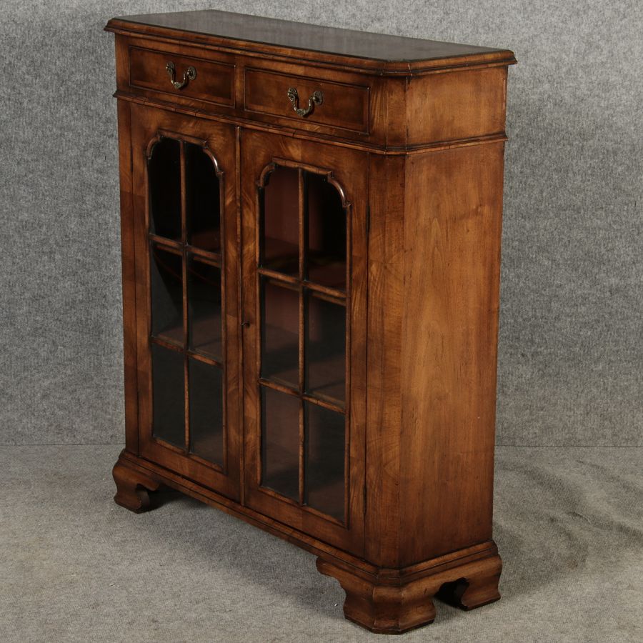 Beschreibung/description: Antike kleine Viktorianische Vitrine / Bücherschrank aus dem 19 Jh. Nussbaum furniert auf Eiche. Ideal für den Flur nur 30 cm Tief. ArtikelNummer /number: vi126