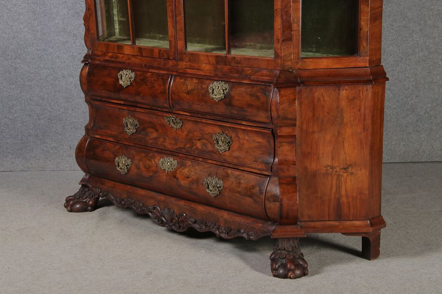 | Antike 248 cm Hohe Barock Vitrine Holland 18 Jh. Nussbaum | ||
