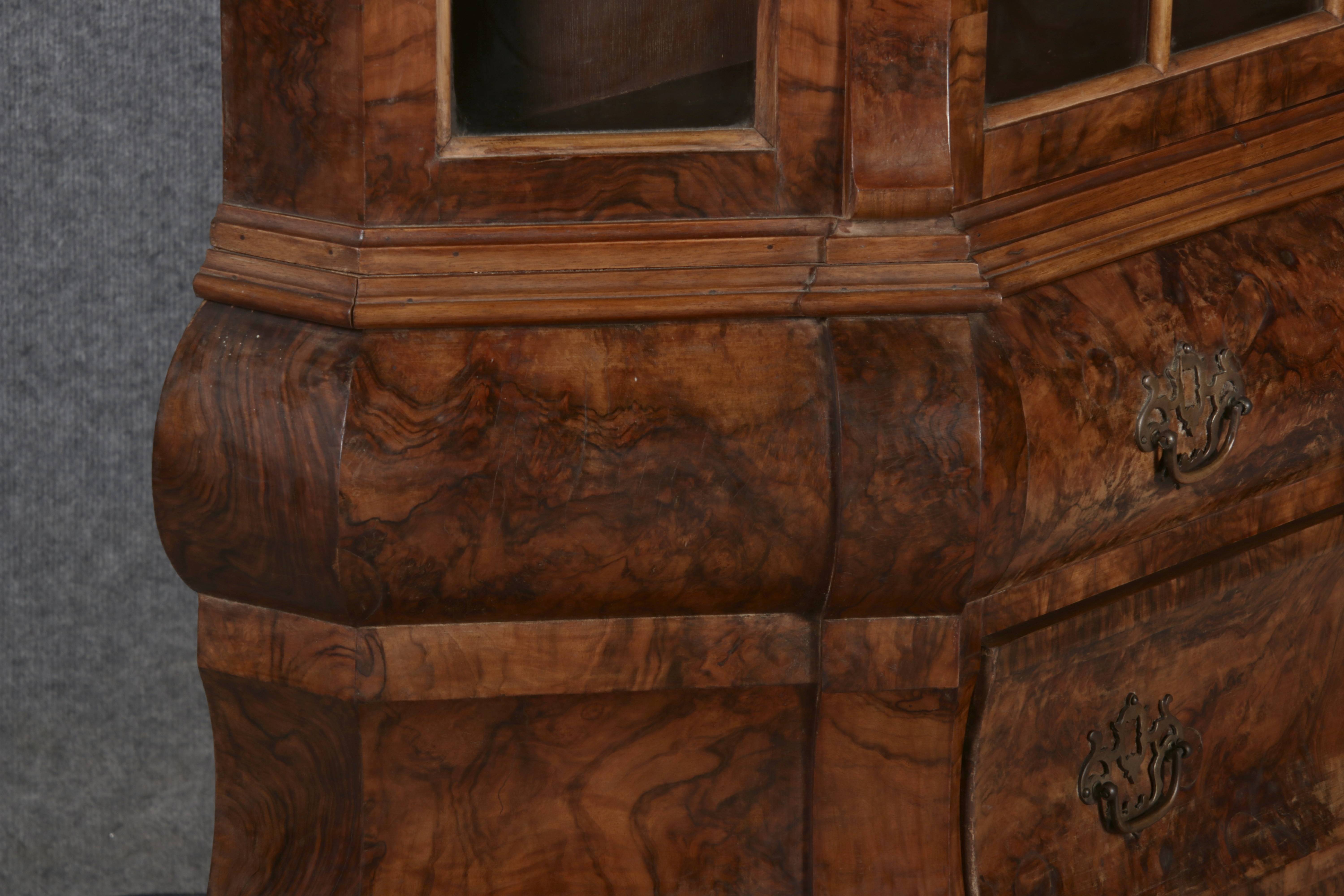 | Antike kleine Holländische Barockvitrine um 1900 Nussbaum | ||