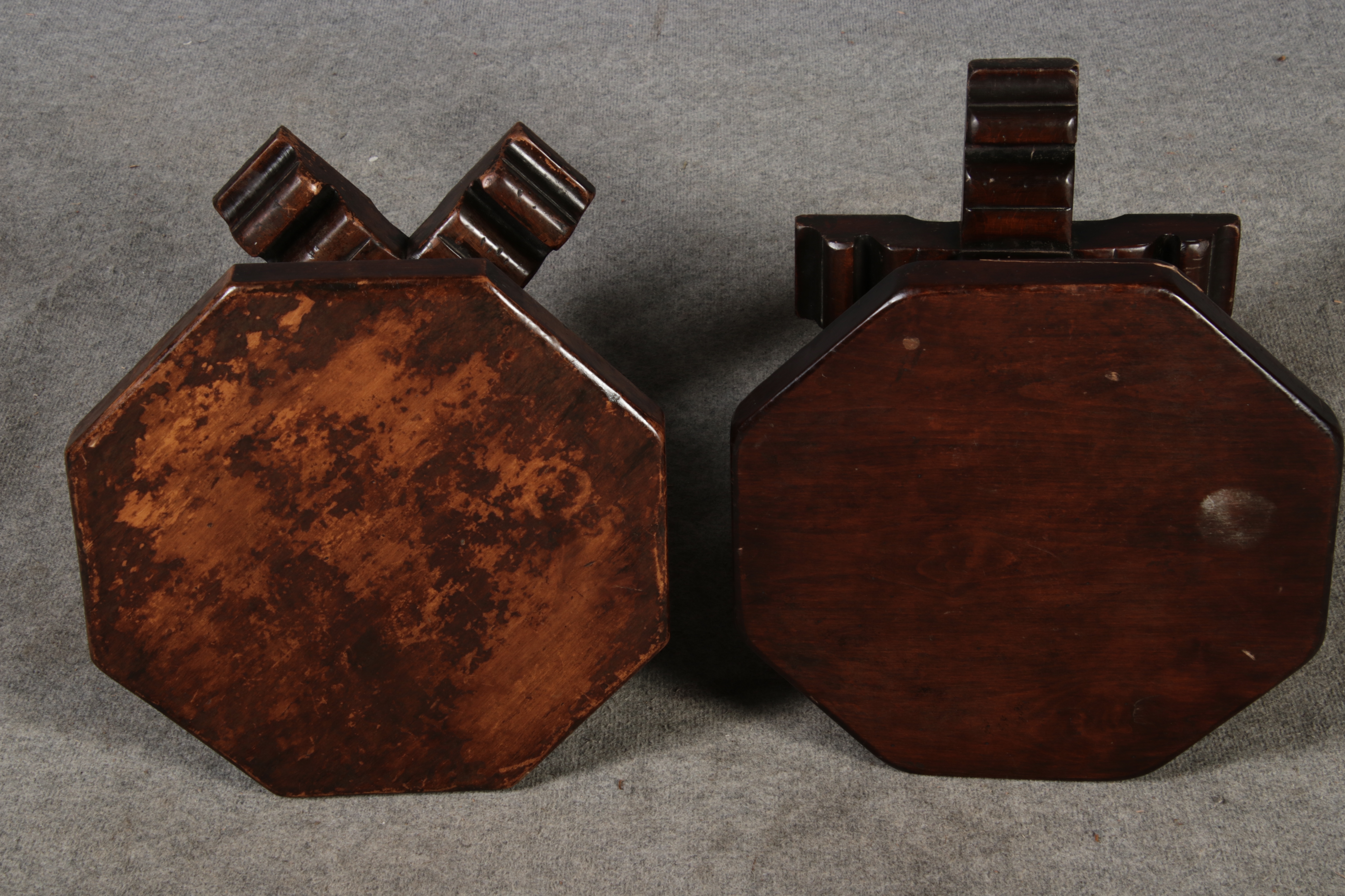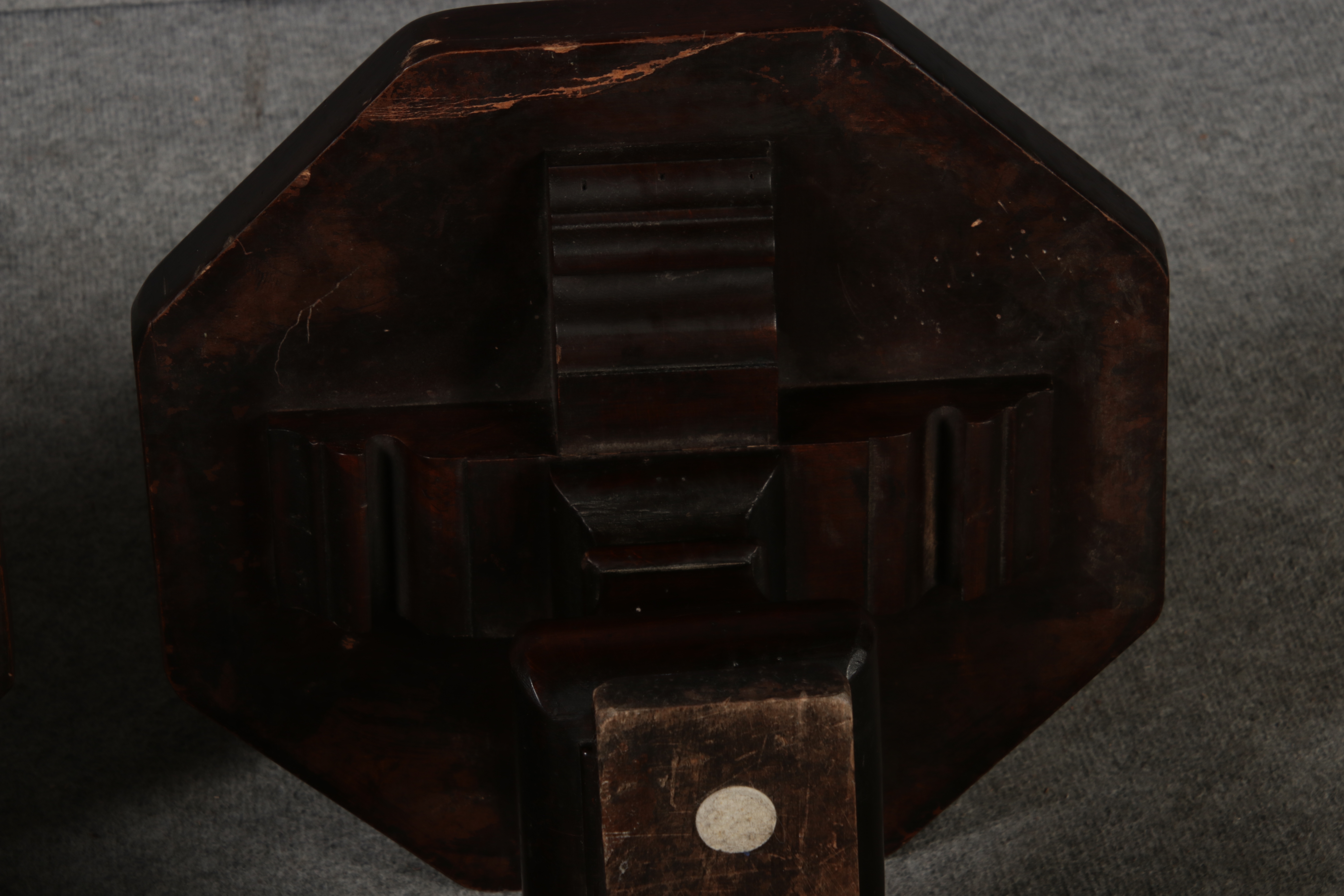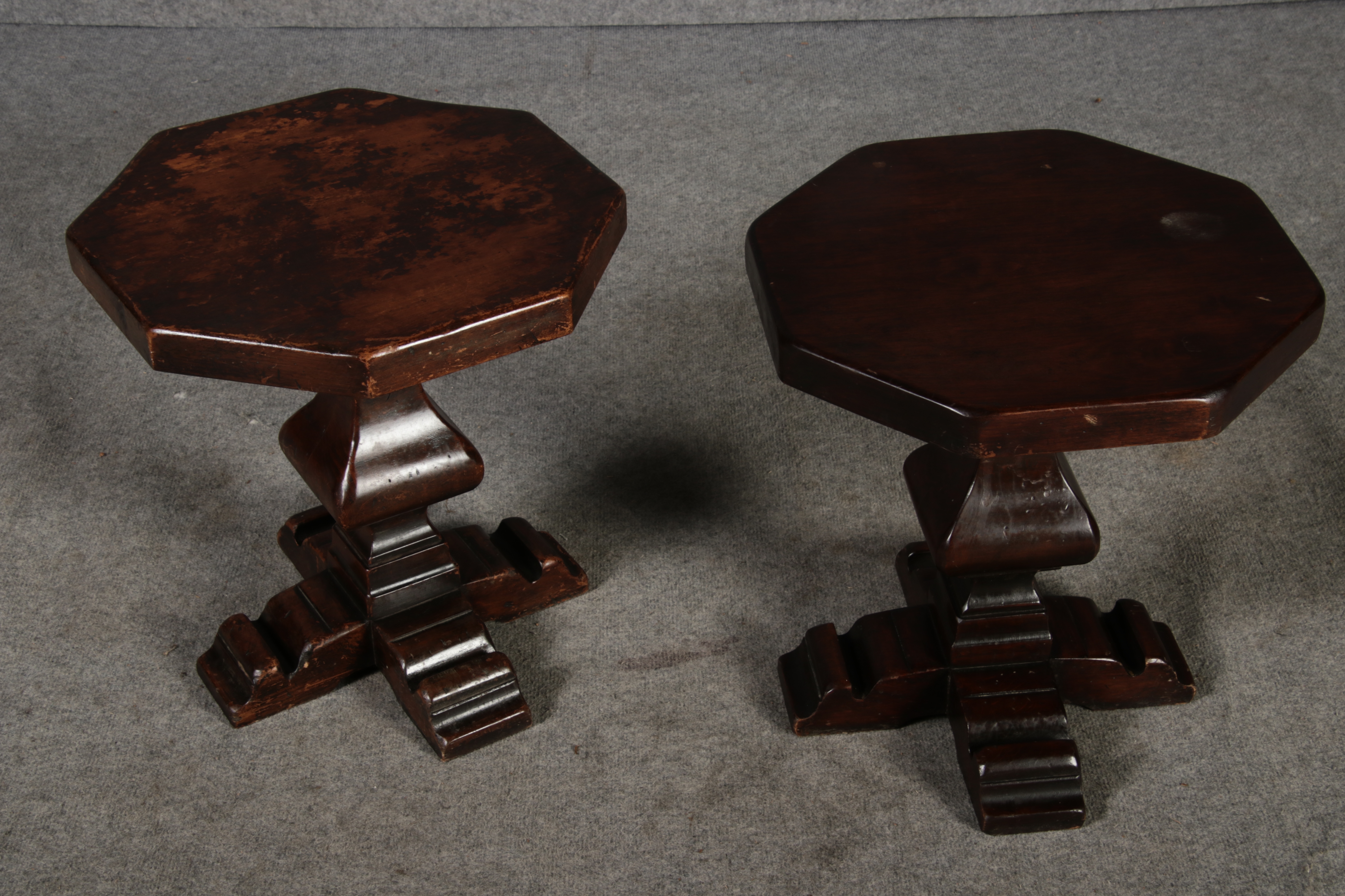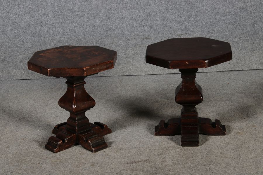 zwei Antike Blumen Tischchen Oktogonal um 1880 Nussbaum |