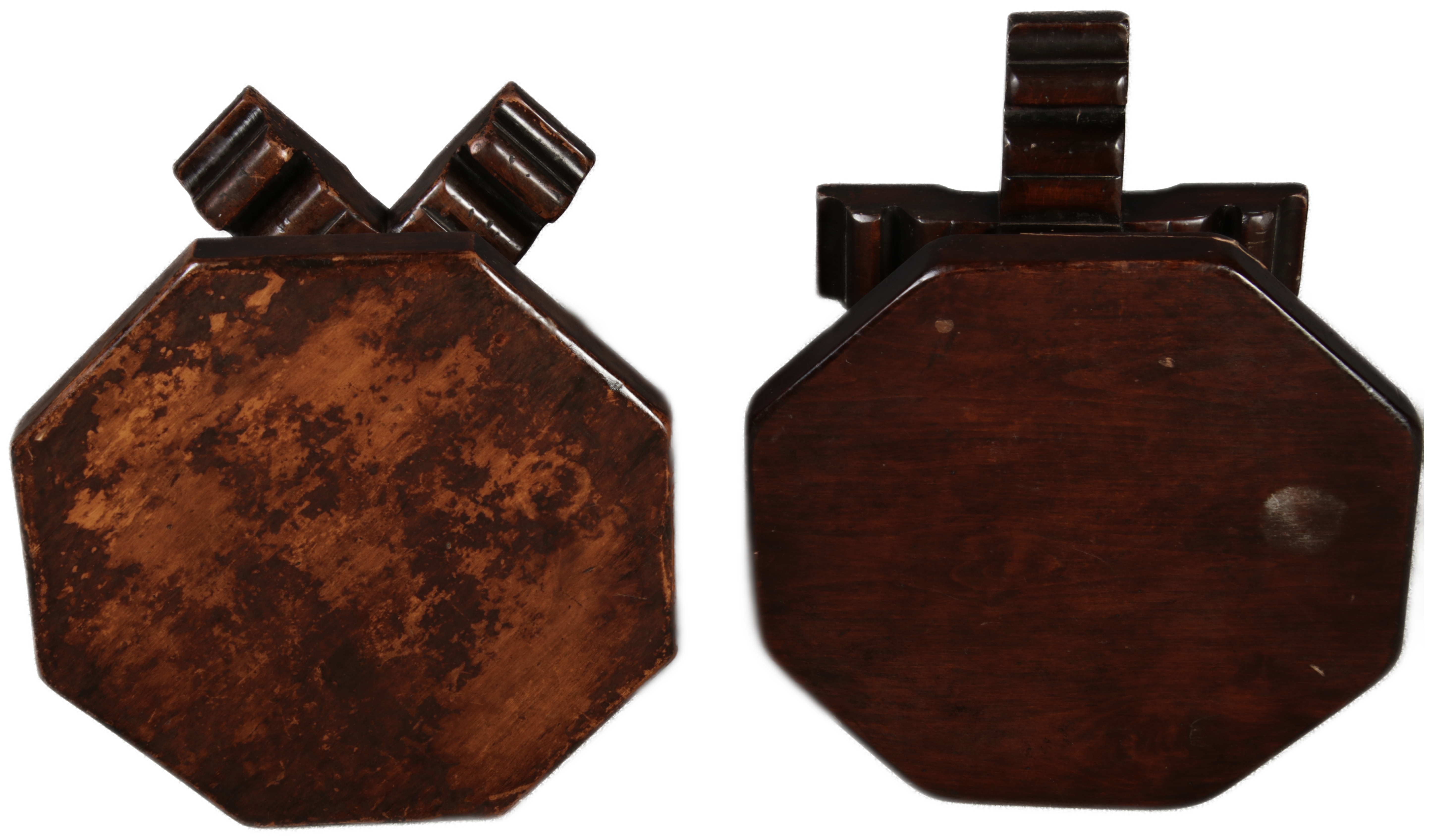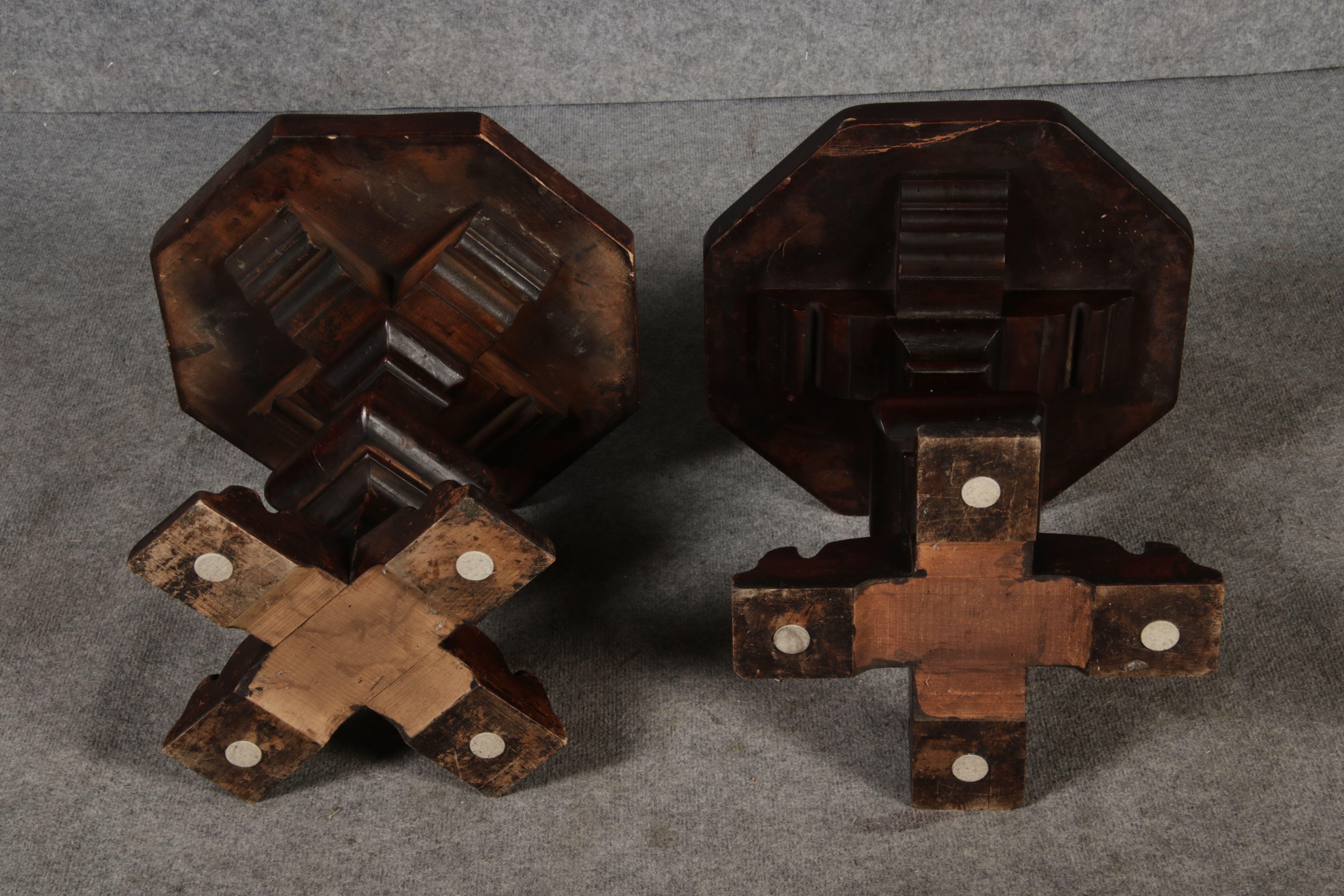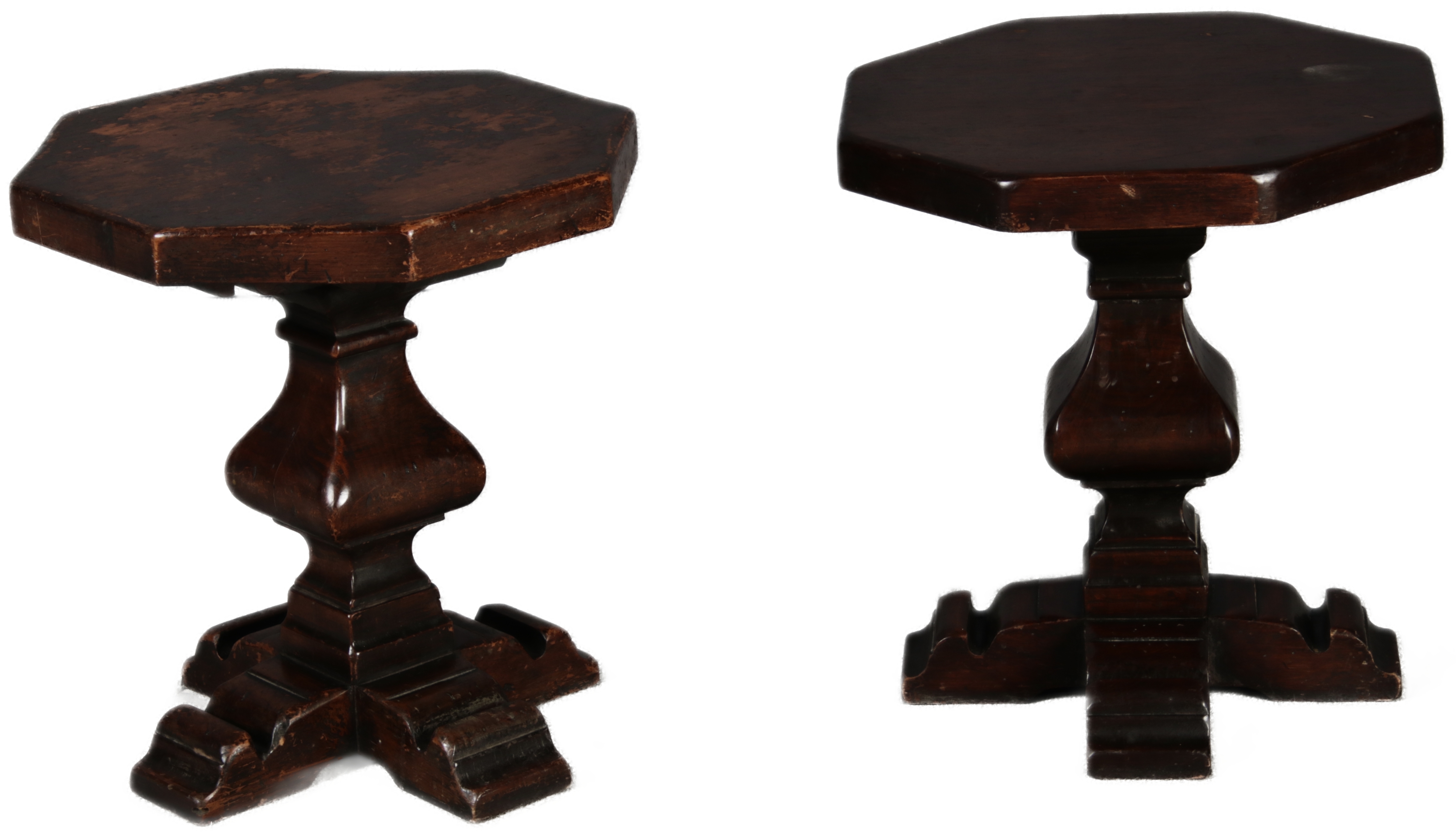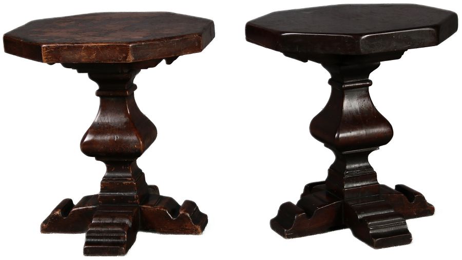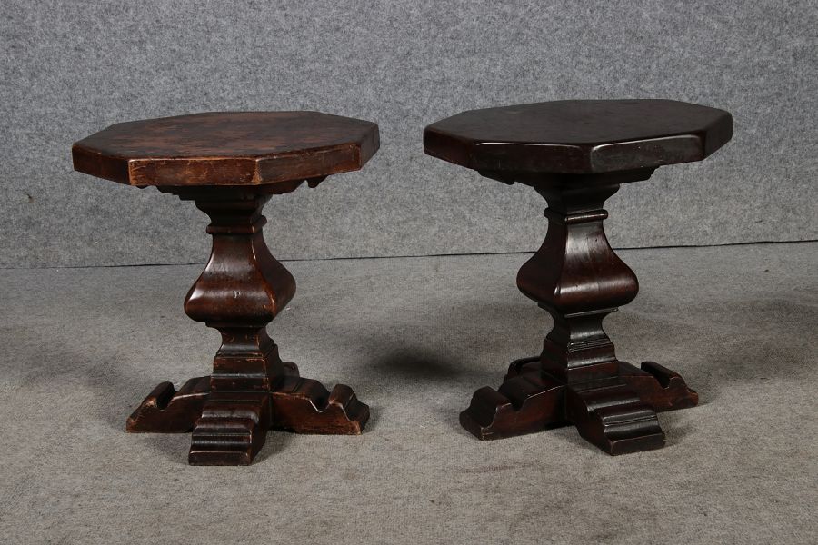 zwei Antike Blumen Tischchen Oktogonal um 1880 Nussbaum |