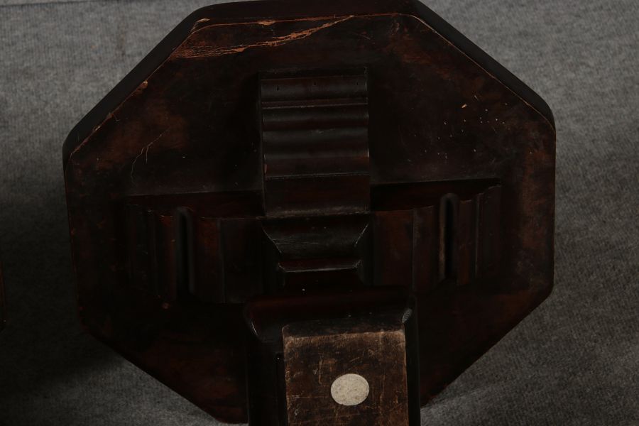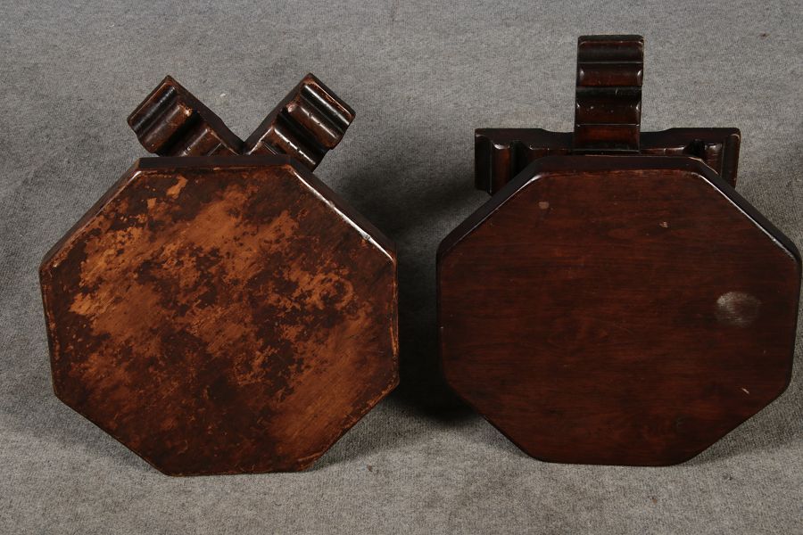 | zwei Antike Blumen Tischchen Oktogonal um 1880 Nussbaum | ||