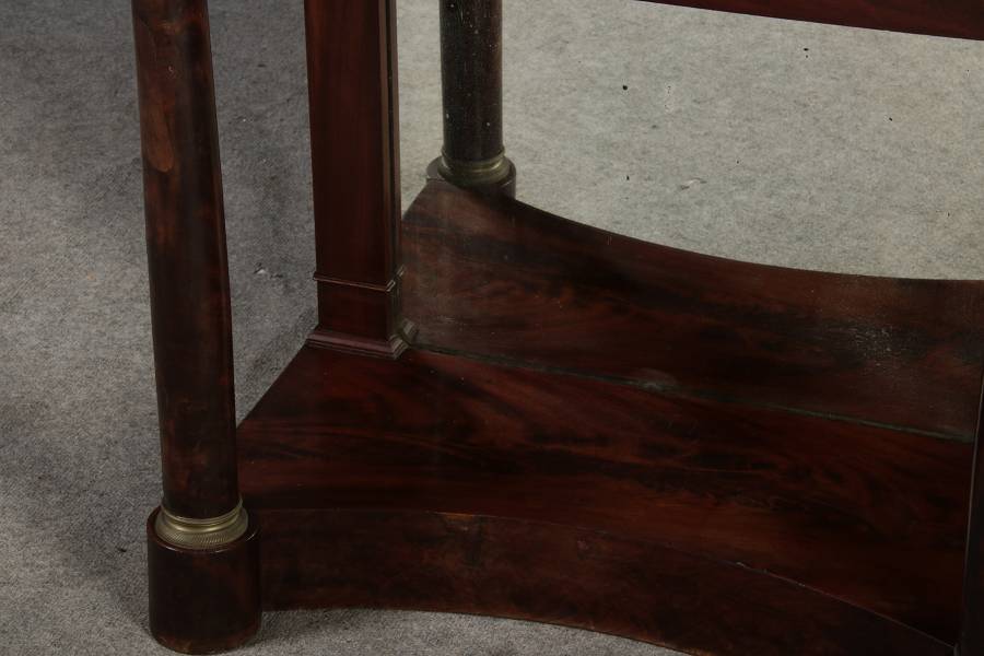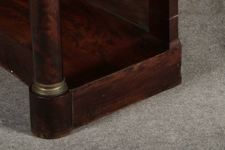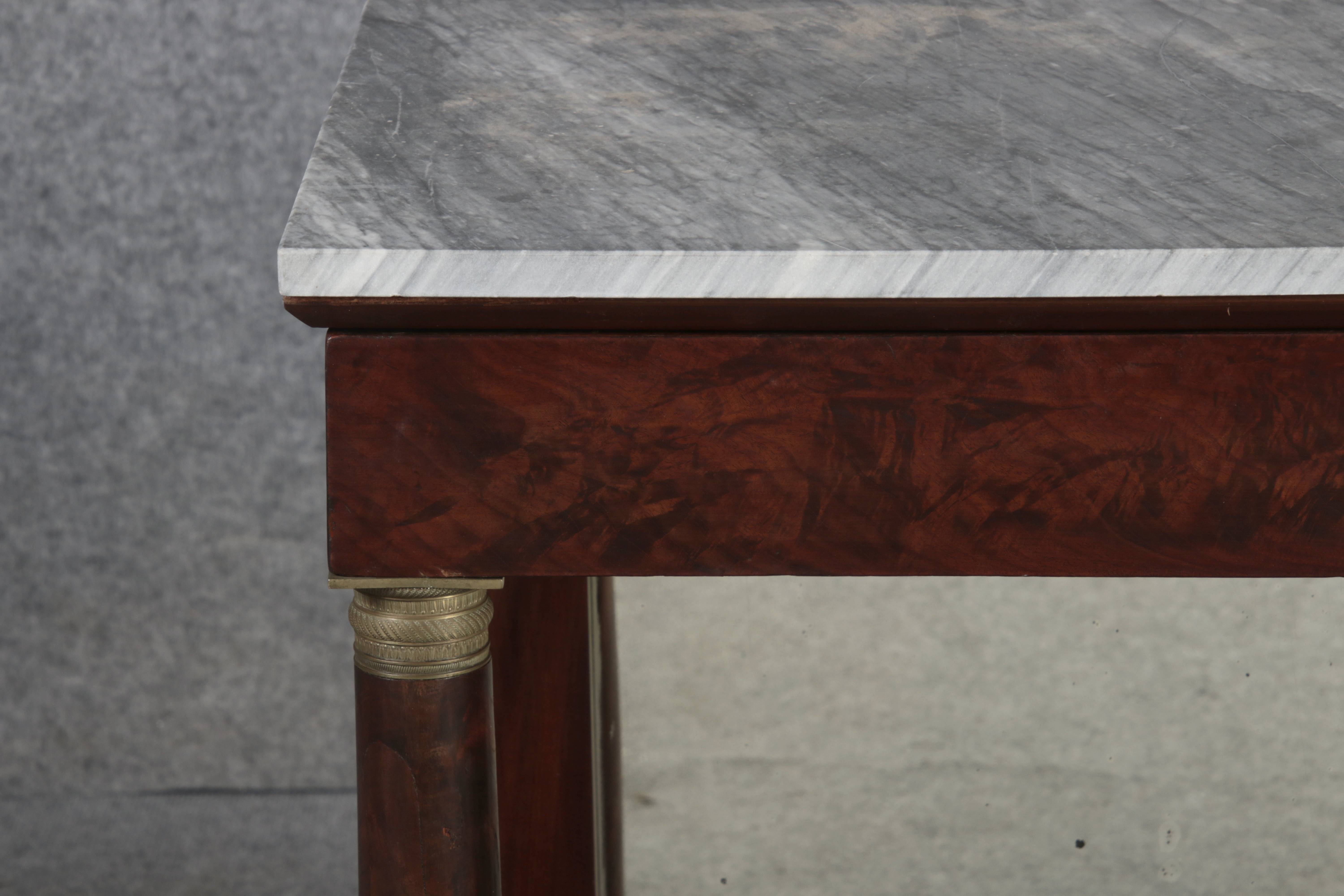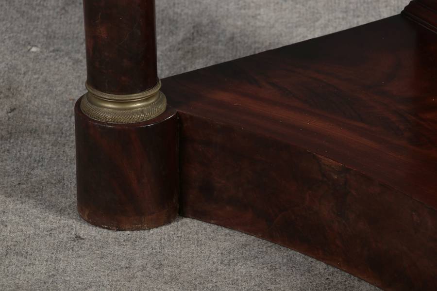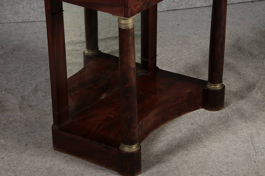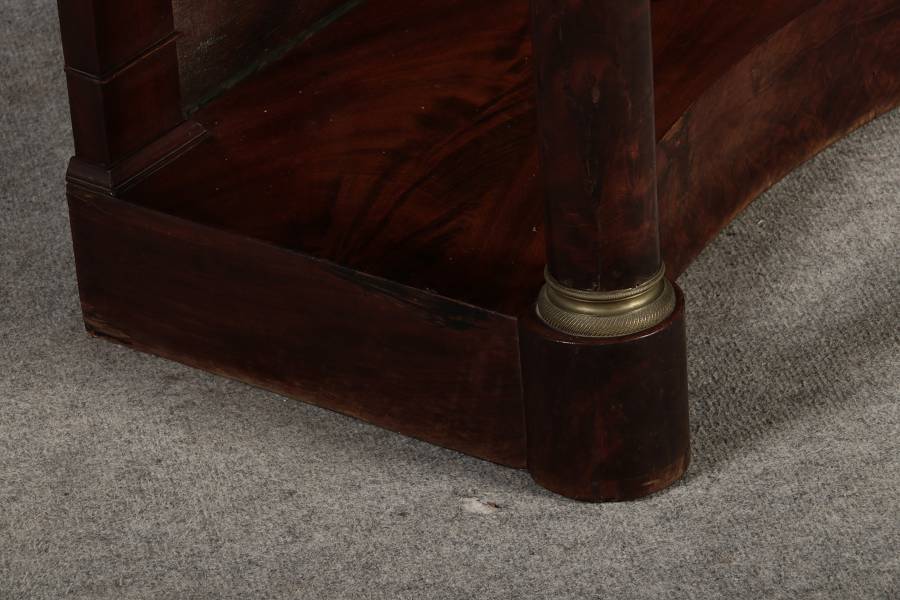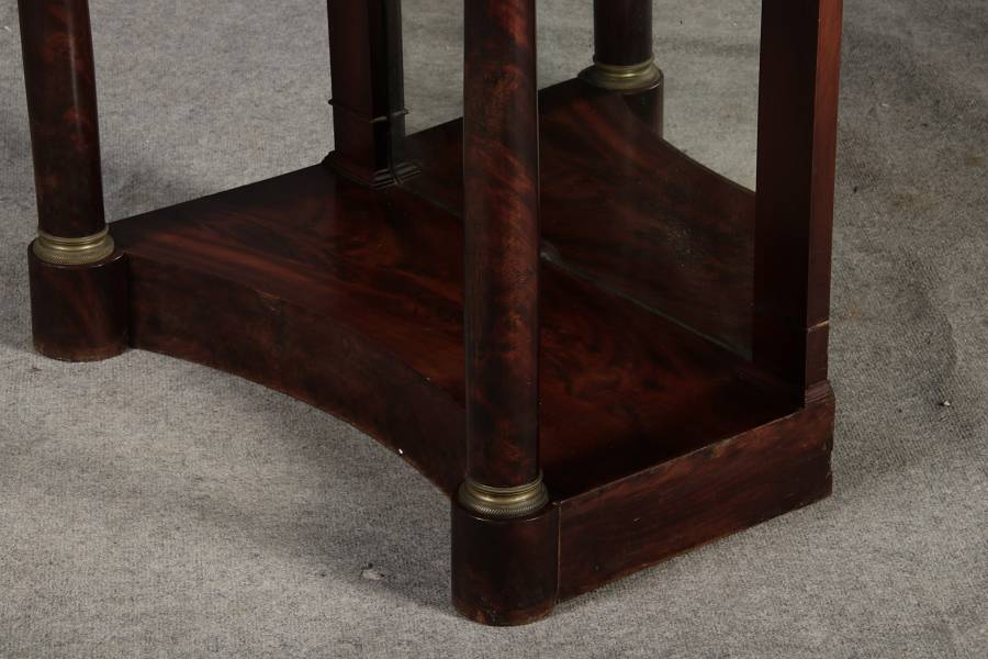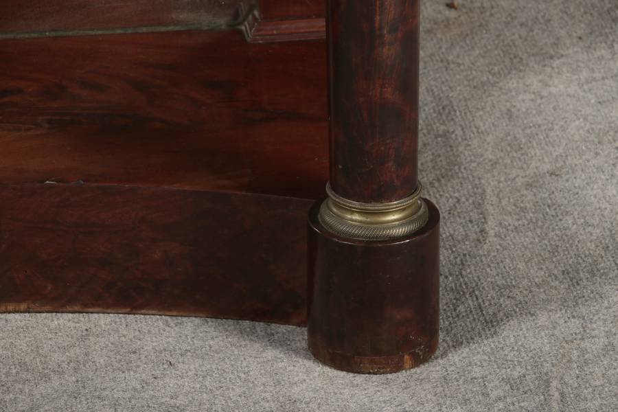 | Antike Empire Wandkonsole Mahagoni Marmor Spiegel Messing Basen und Kapitele um 1810 | ||