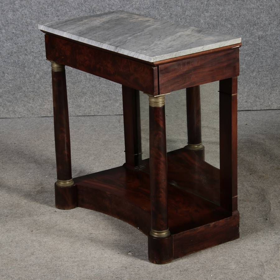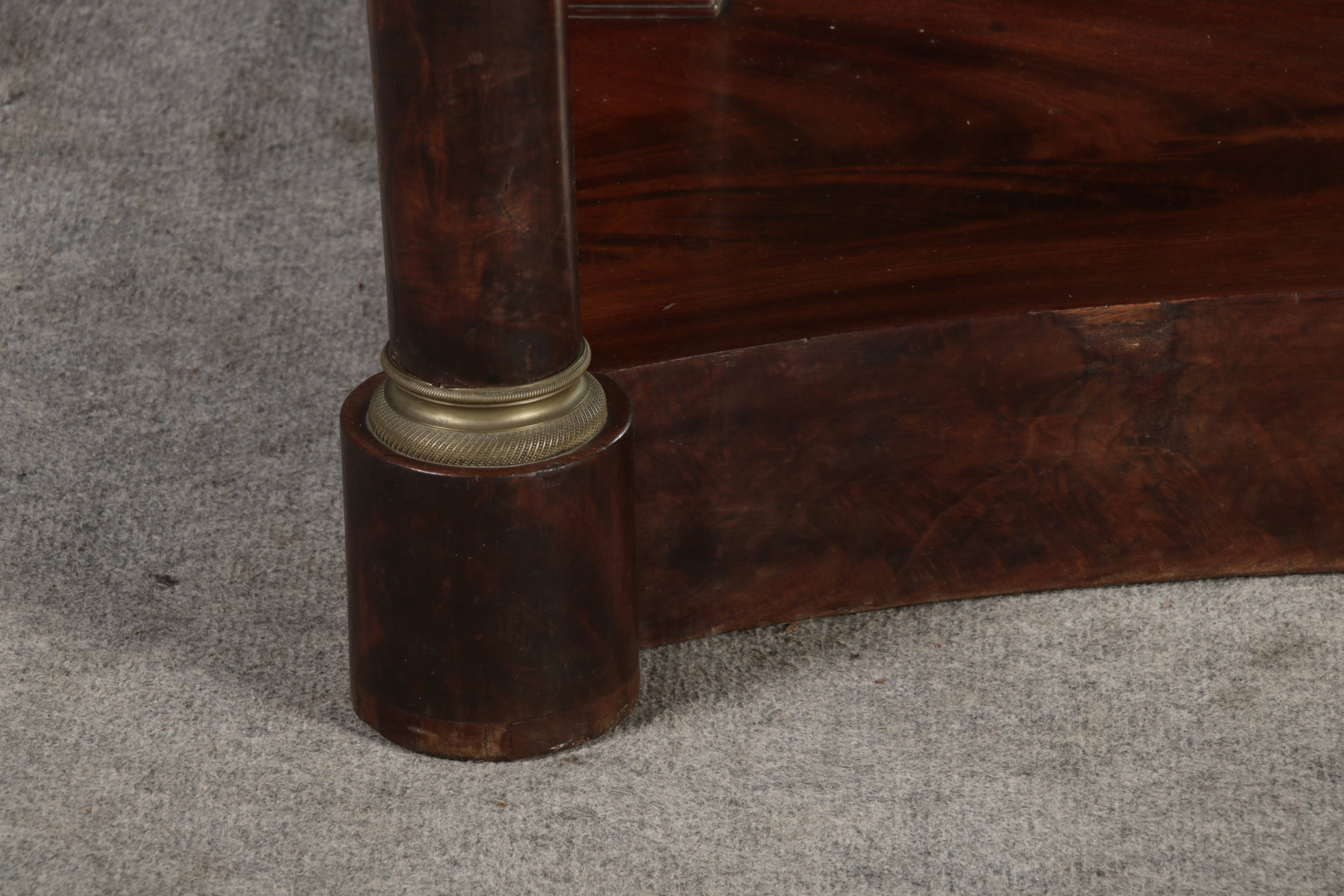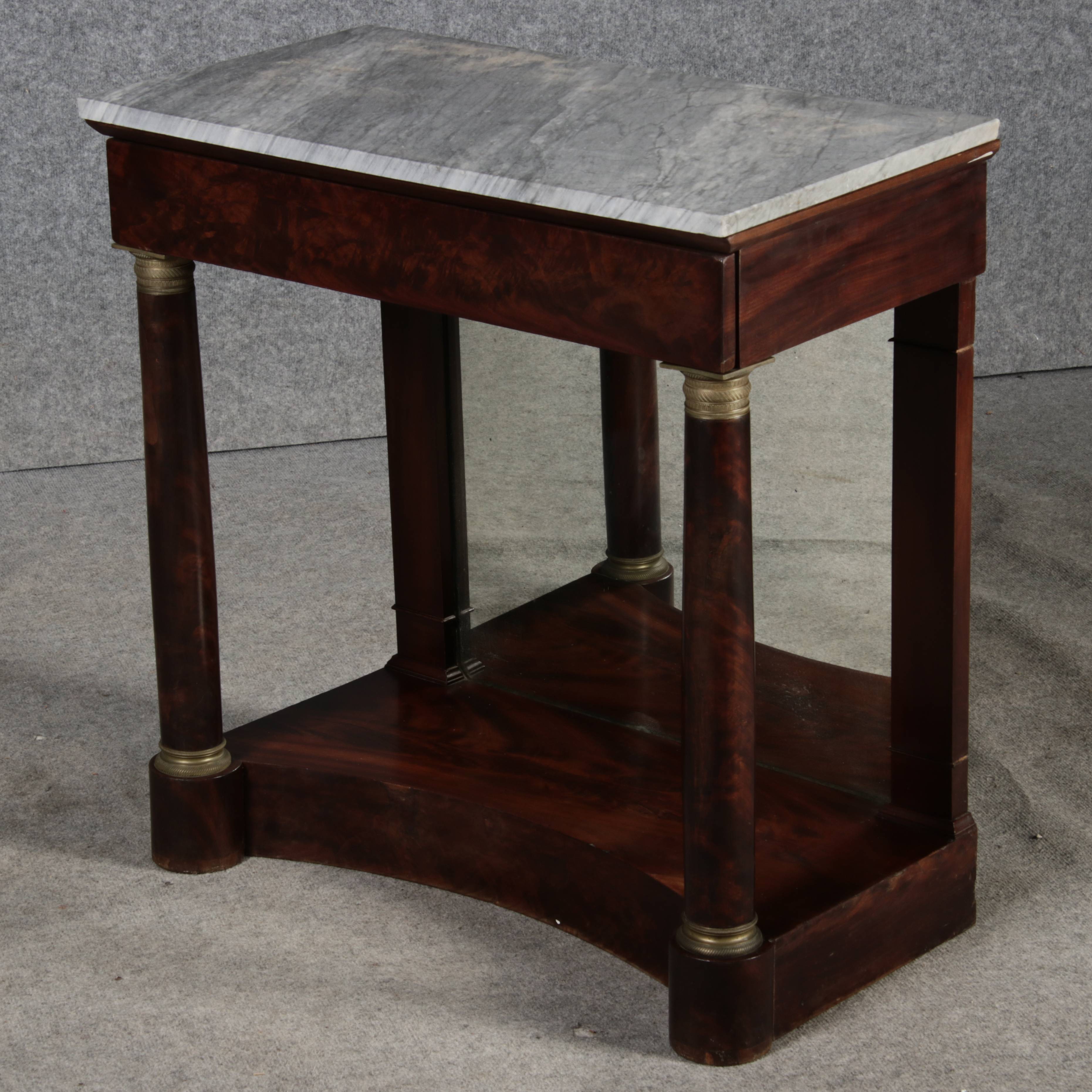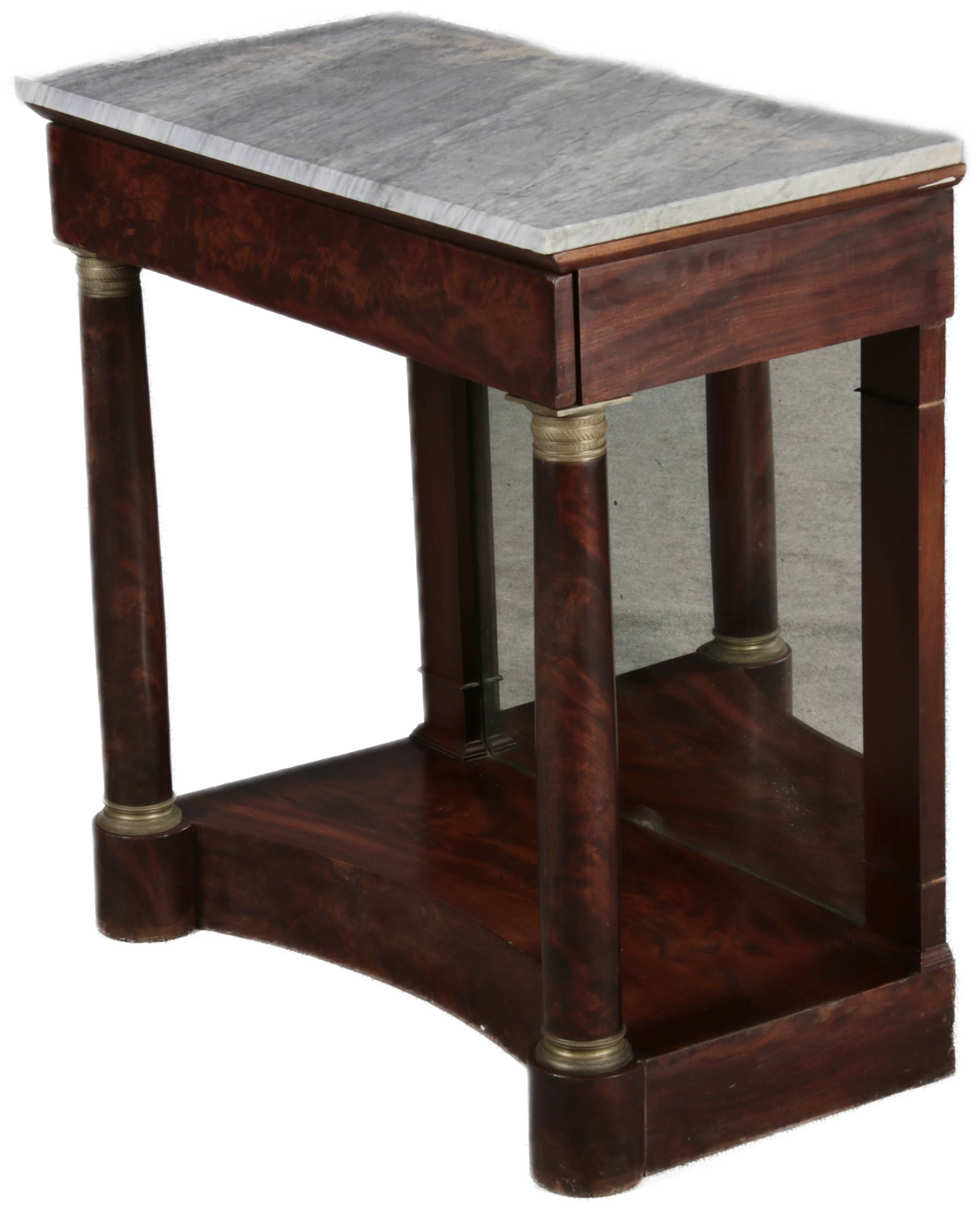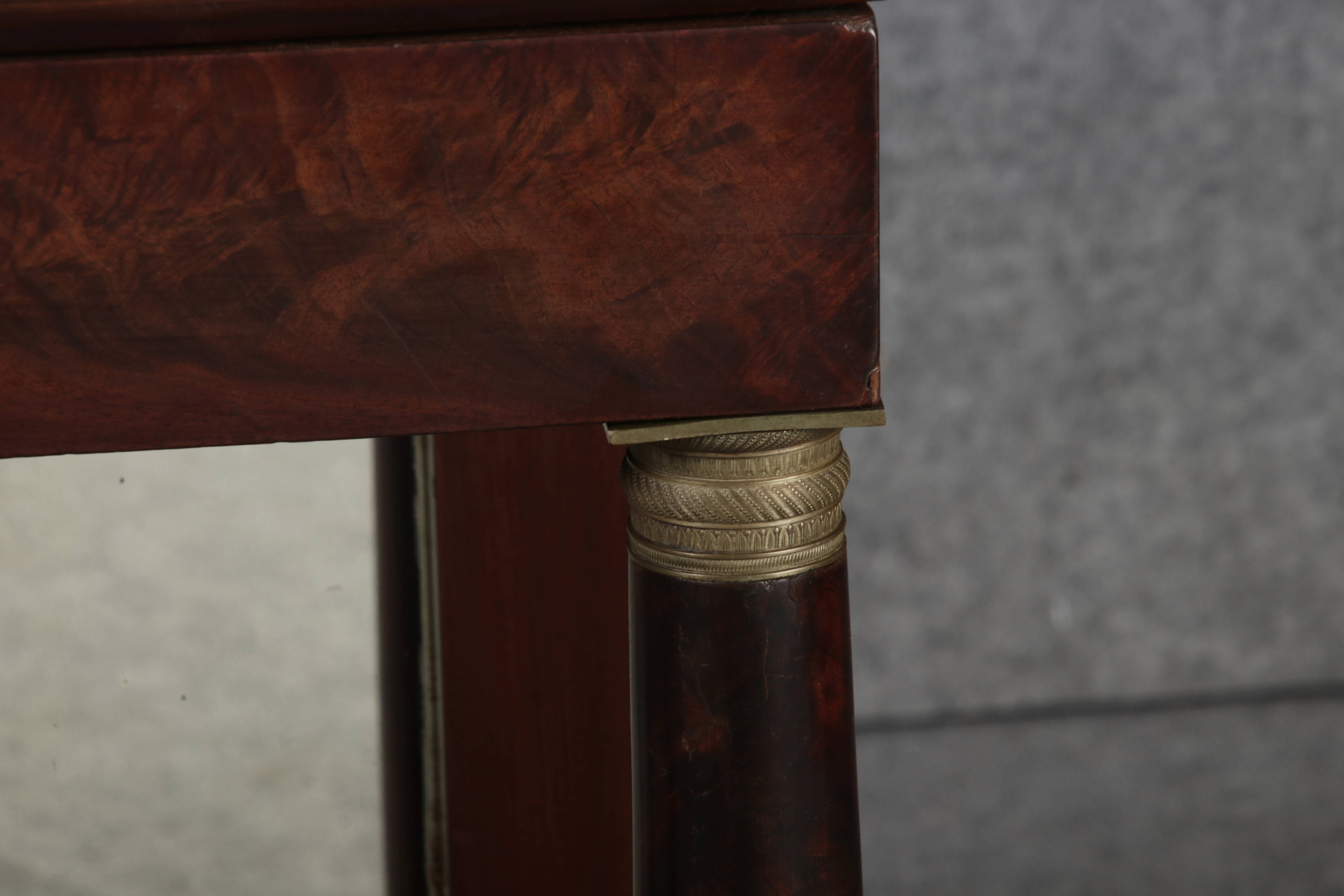| Antike Empire Wandkonsole Mahagoni Marmor Spiegel Messing Basen und Kapitele um 1810 | ||