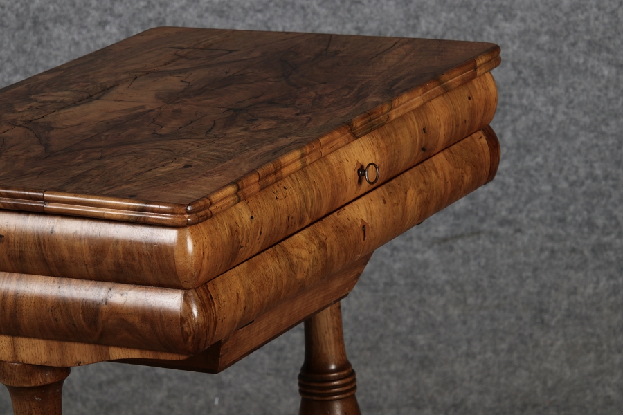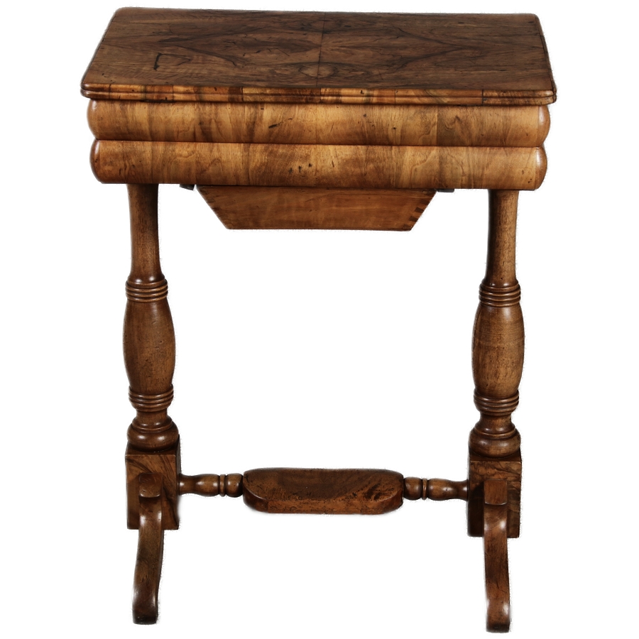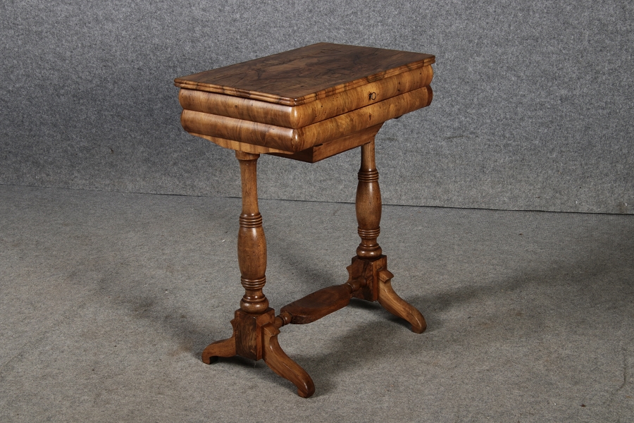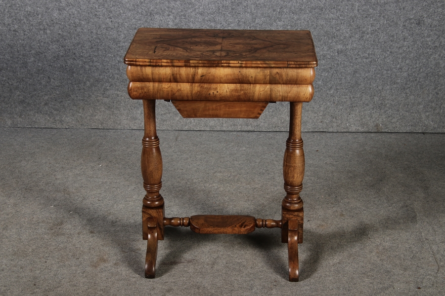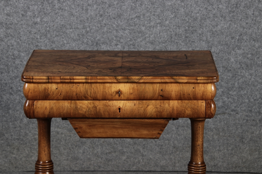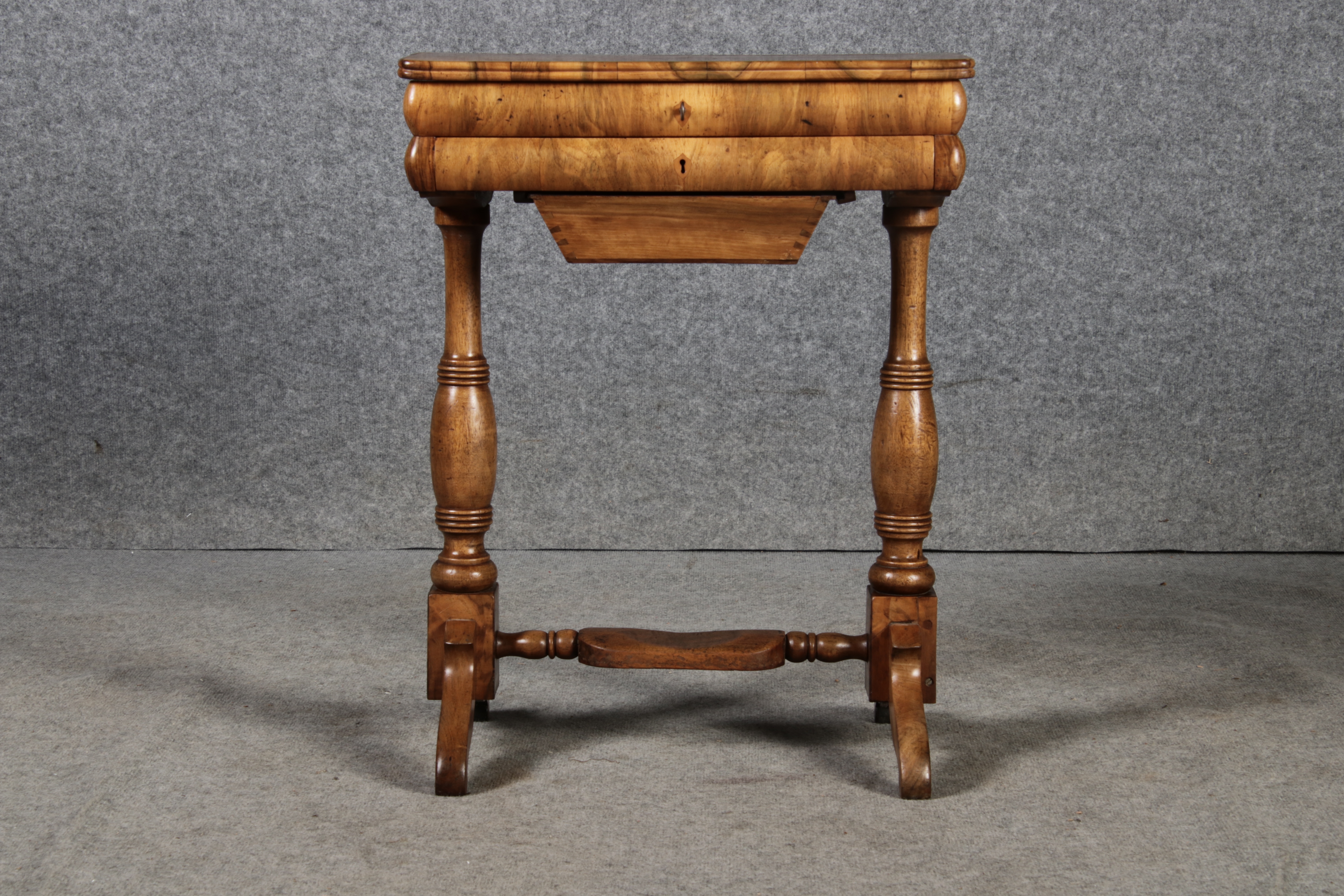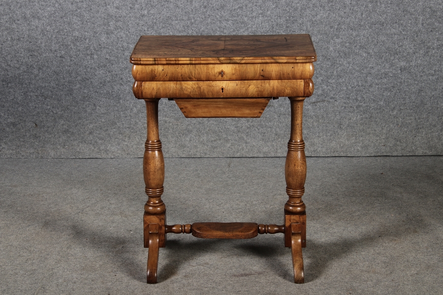 | Antiker Näh- Beistell- Tisch Biedermeier Nussbaum 19 Jh. | ||