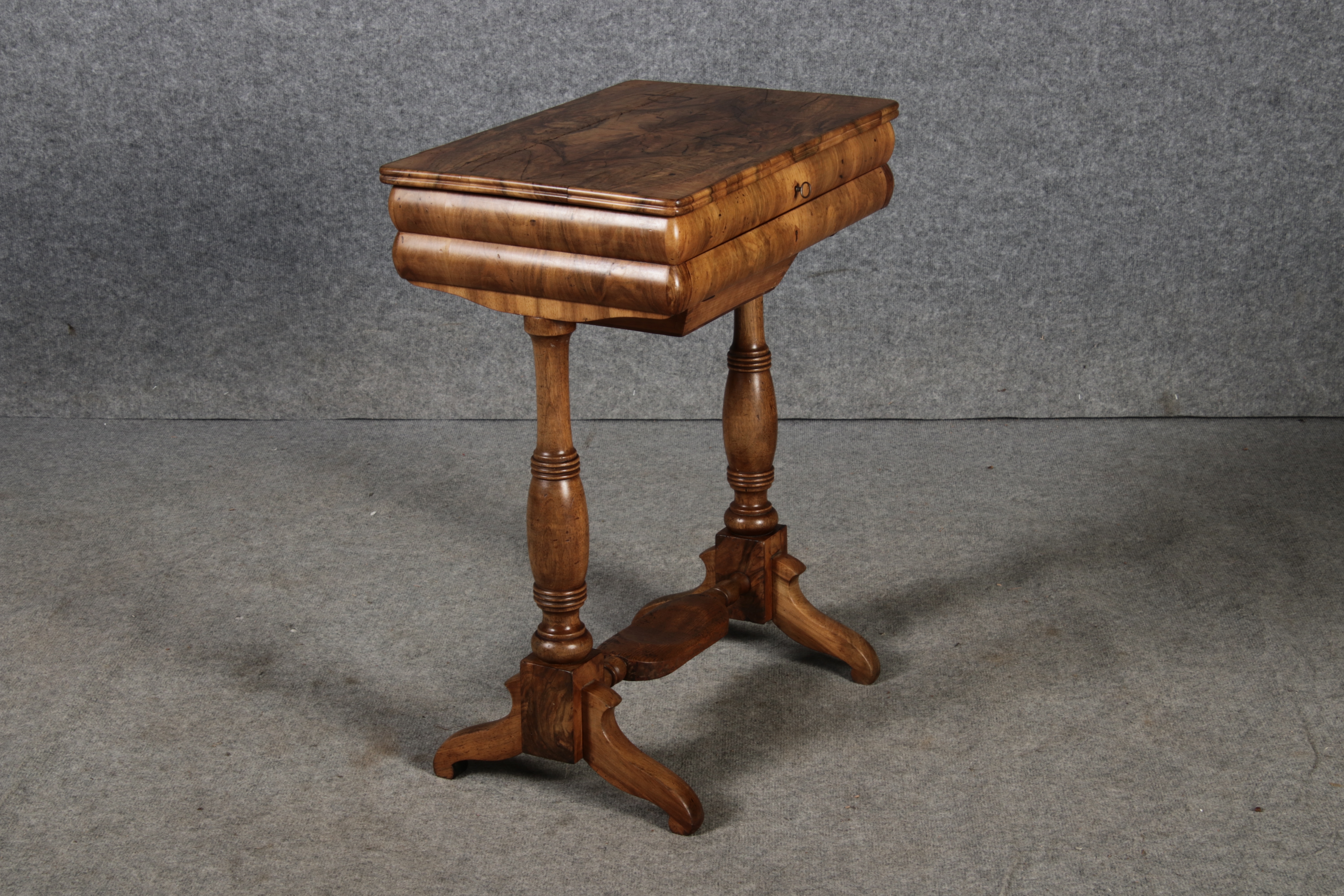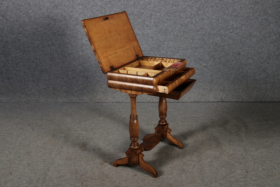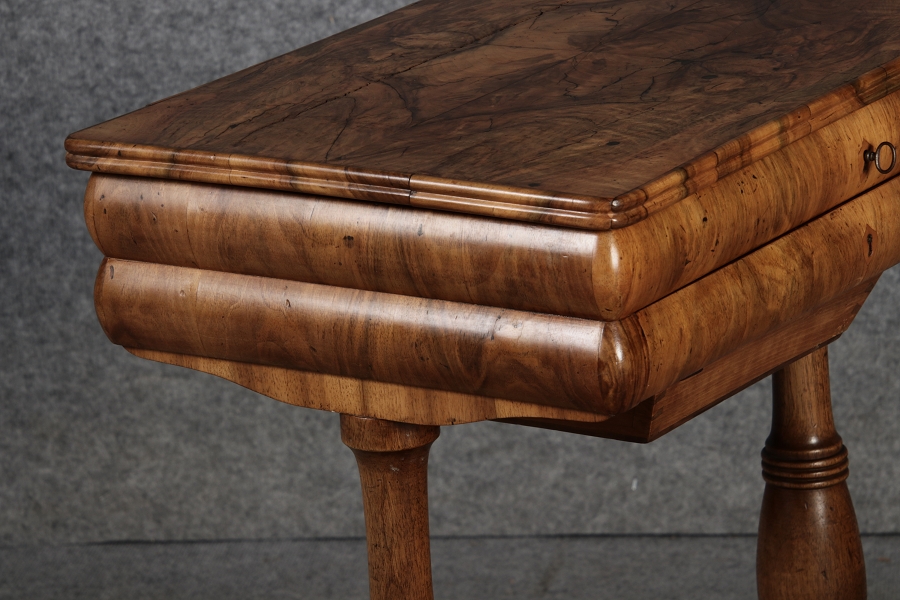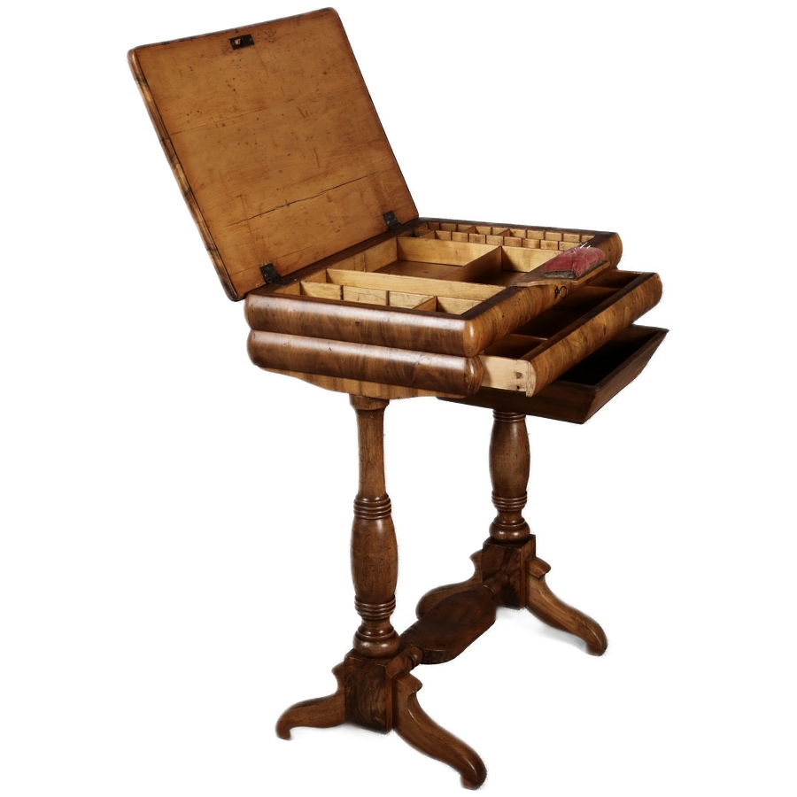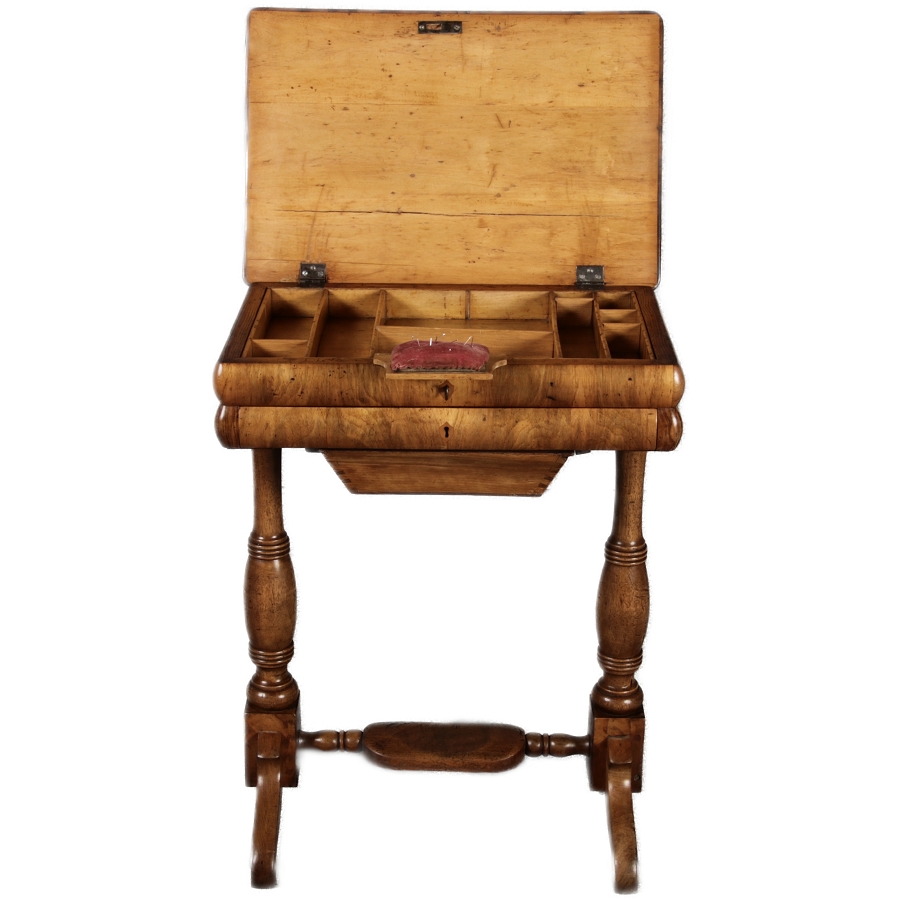 | Antiker Näh- Beistell- Tisch Biedermeier Nussbaum 19 Jh. | ||