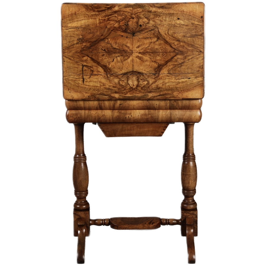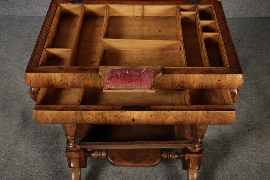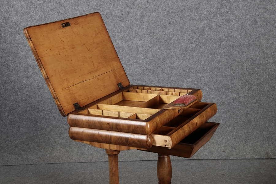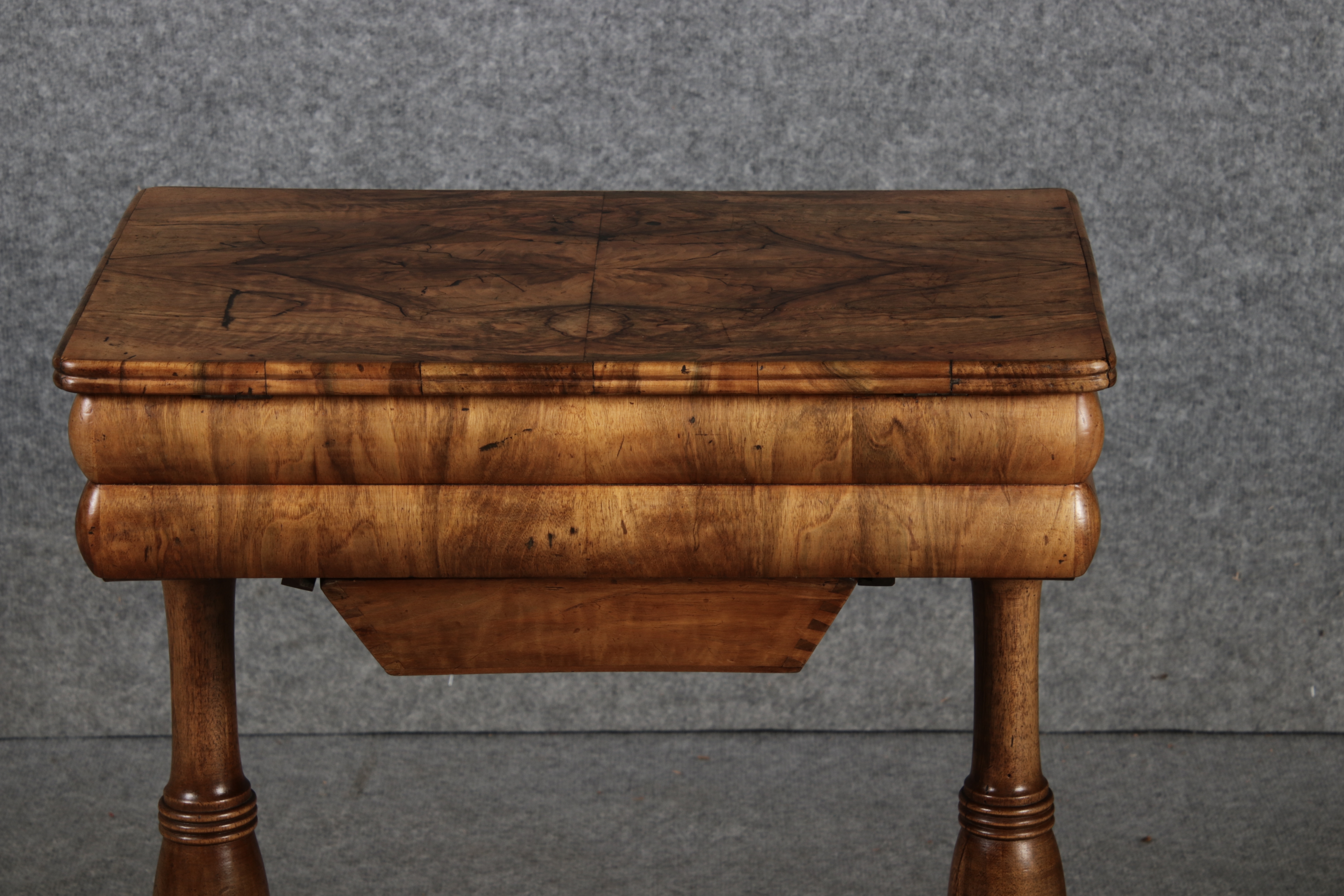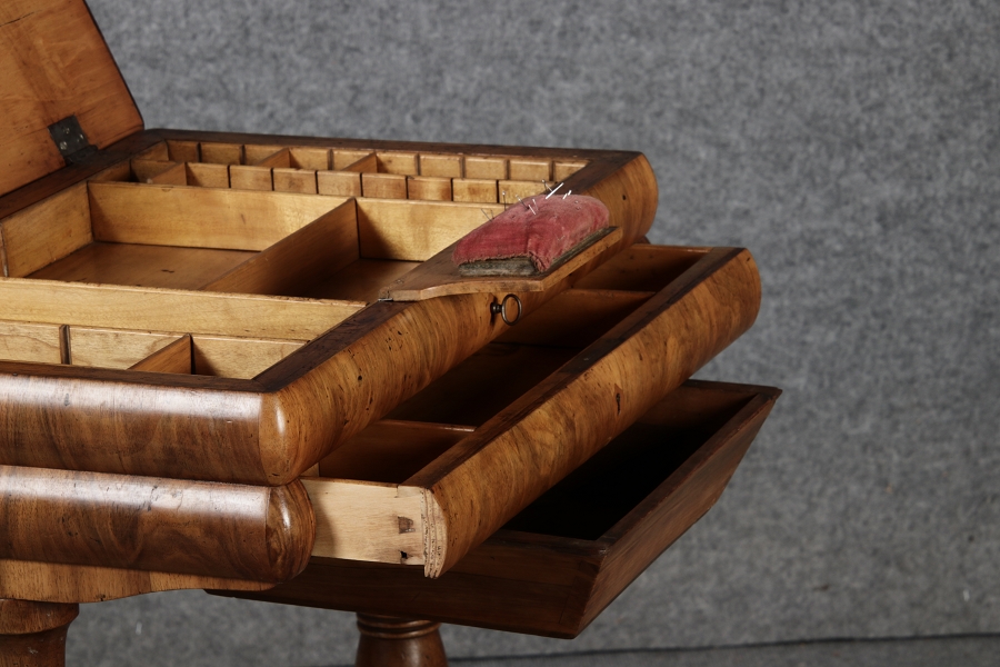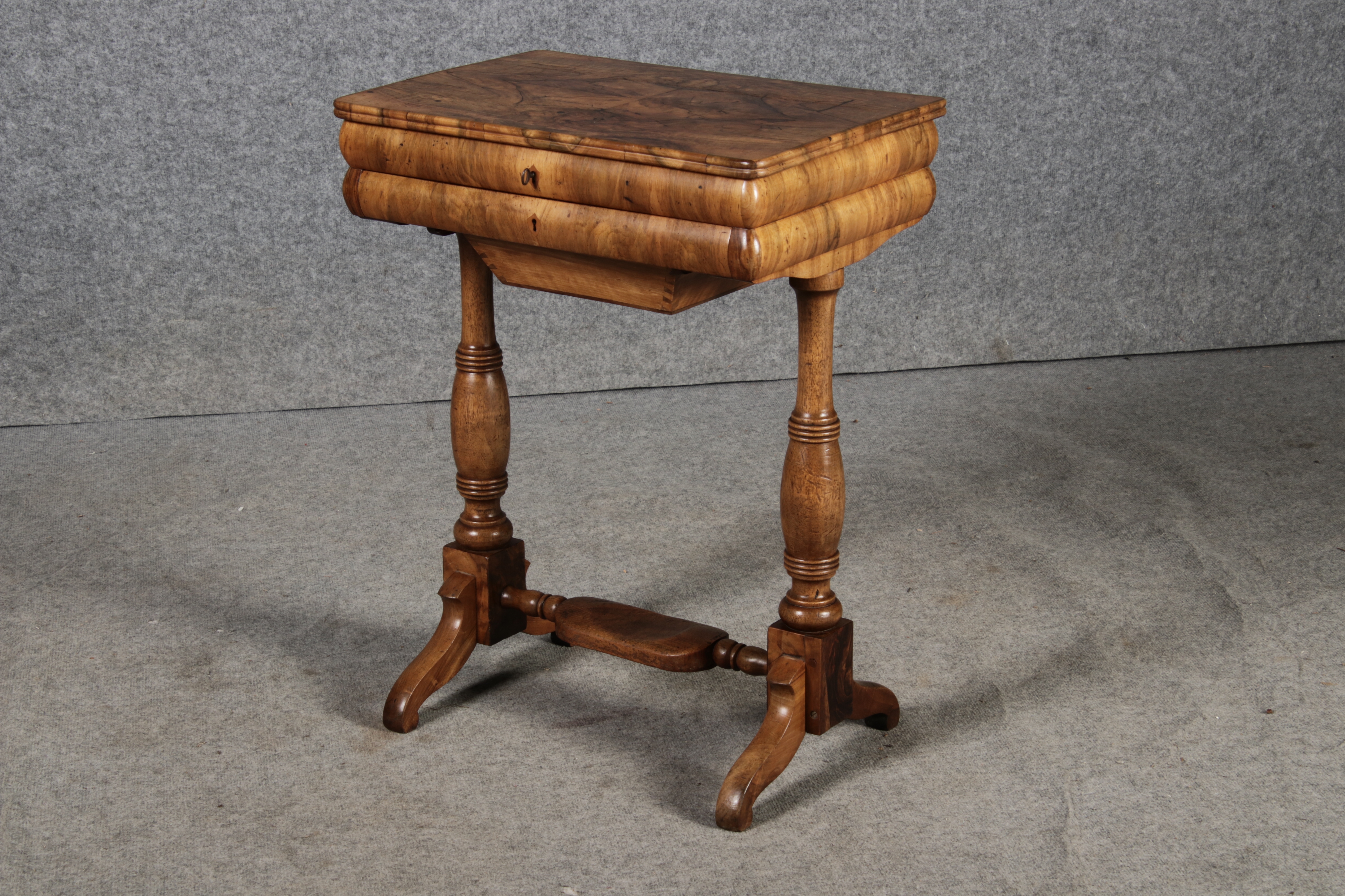 | Antiker Näh- Beistell- Tisch Biedermeier Nussbaum 19 Jh. | ||