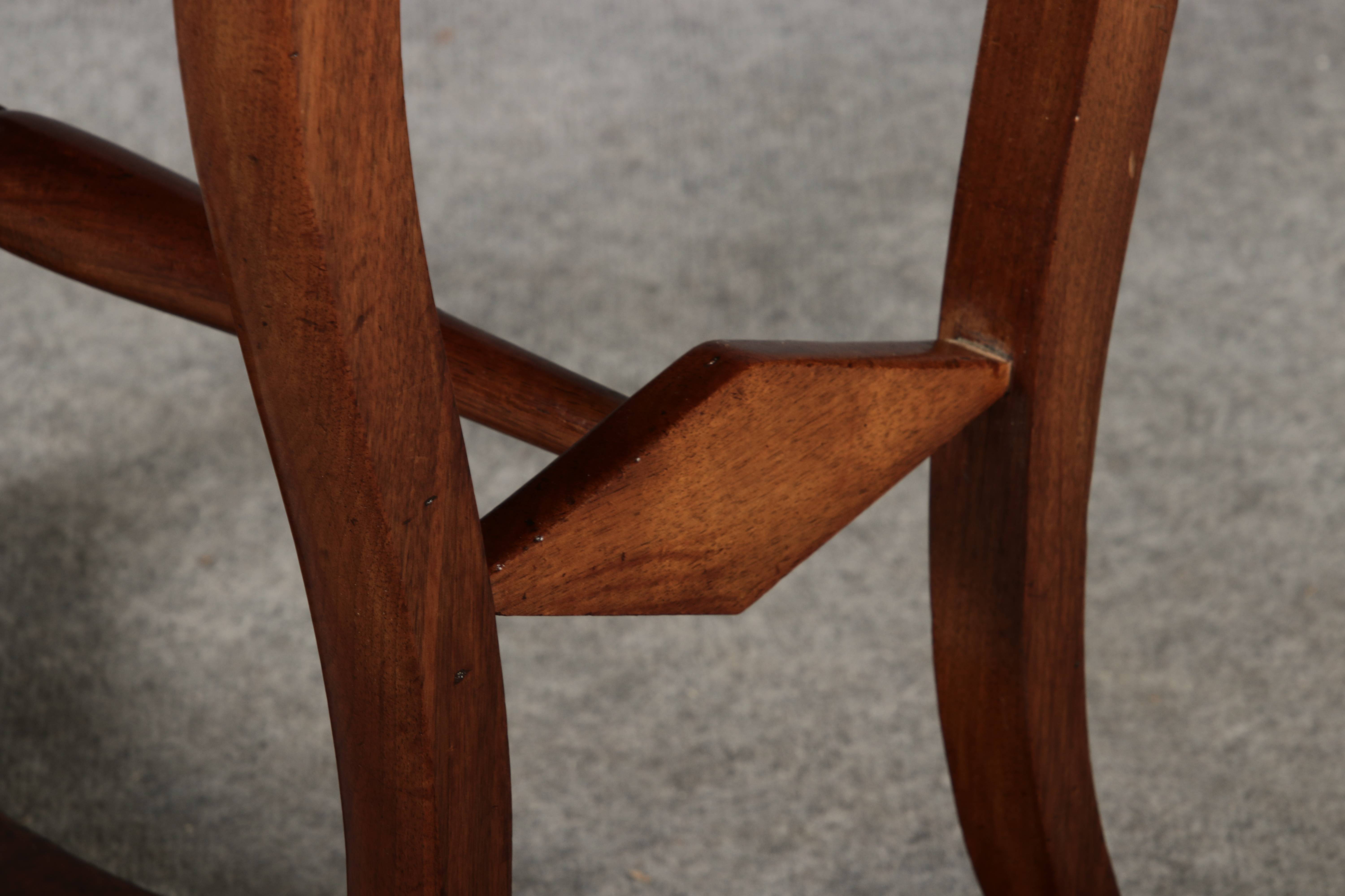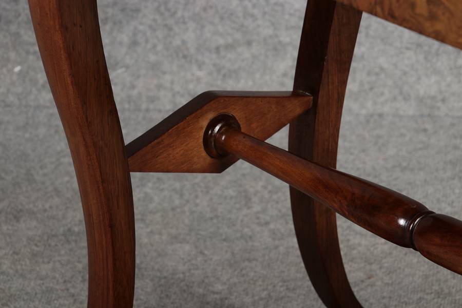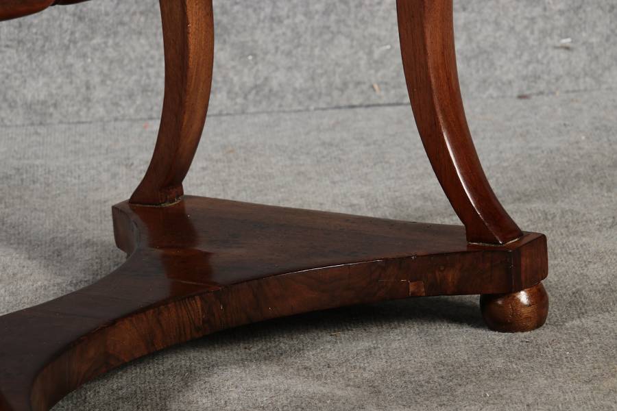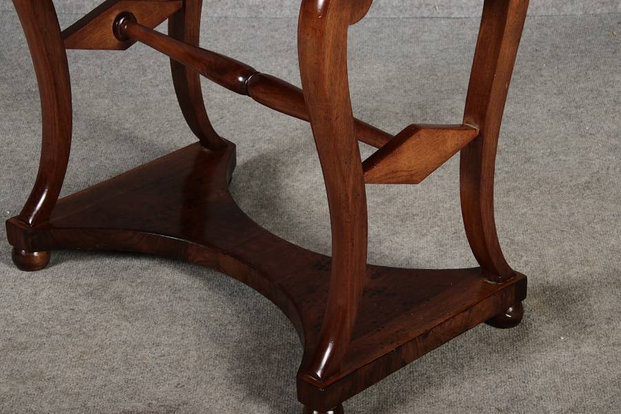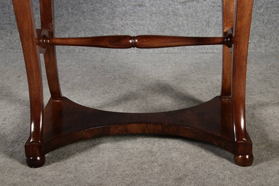 riginal Biedermeier Beistelltisch / Nähtisch aus Nussbaum – ca. 1820–1840 Dieser elegante Biedermeier-Tisch ist ein echtes Highlight für Liebhaber klassischer Möbel. Das warme, fein gemaserte Nussbaumholz und die stiltypisch geschwungenen Formen verleihen dem Stück eine hochwertige und zeitlose Ausstrahlung. Durch seine kompakte Größe eignet er sich ideal als Beistelltisch, kleiner Schreib- oder Nähtisch in Wohn- und Arbeitsbereichen. Merkmale