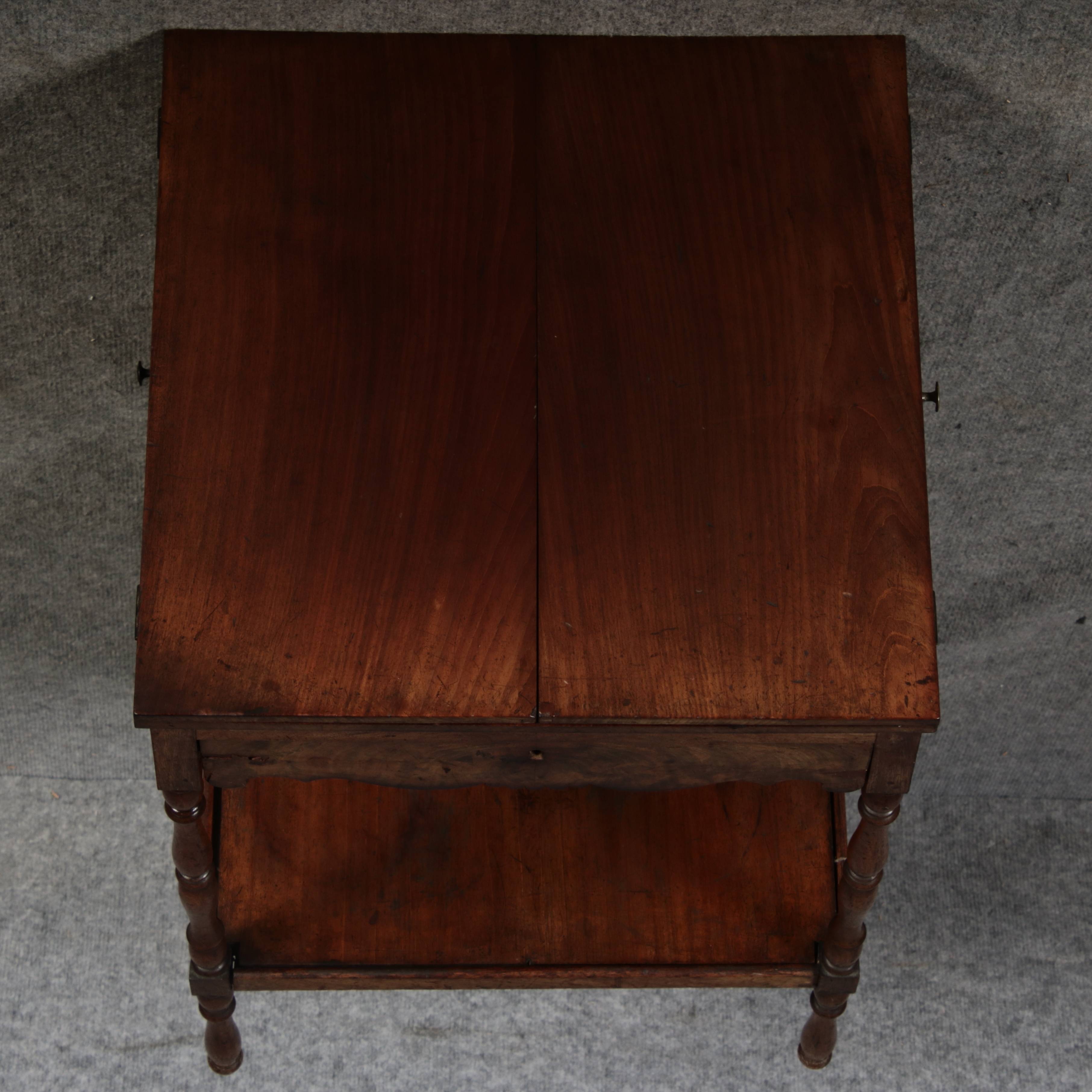 Masse/dimensions: Höhe/Height ca. 67 cm, Breite /Broad ca. 46 cm, Breite aufgeklappt/Broad unfoldedca. 92 cm, Tiefe /Deep ca. 46 cm Material/material Das Material ist Mahagoni ,er hat 1 Schlüssel