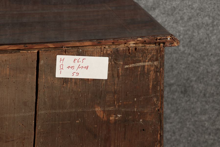Die Kommode ist wahrscheinlich aus dem 18 Jh. und die Herkunft ist wahrscheinlich