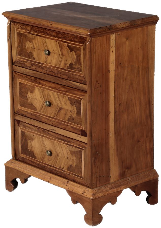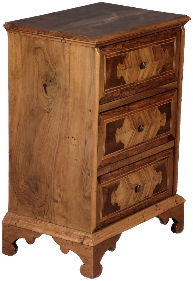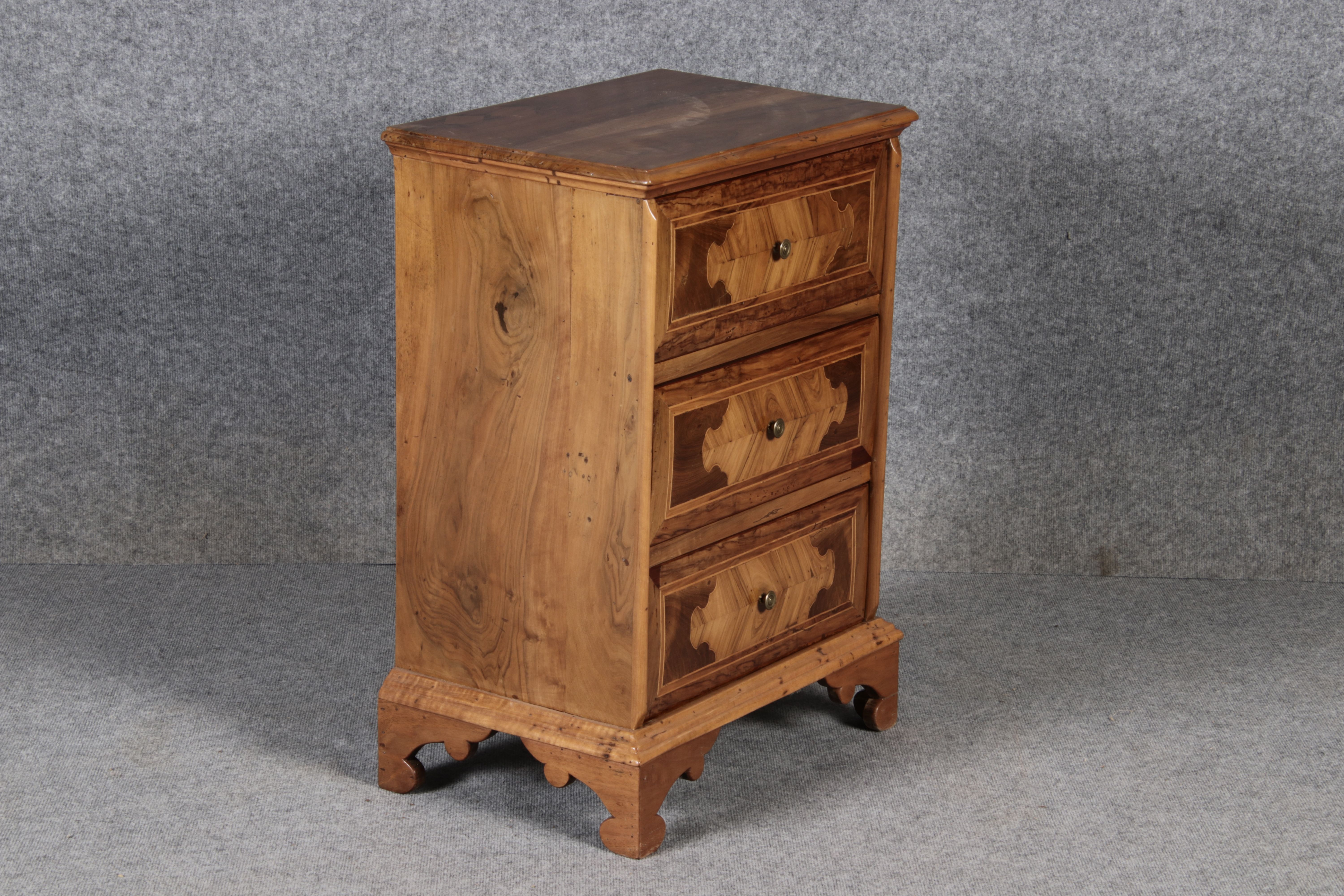| Antike kleine 58 cm breite Italienische Barockkommode Nussbaum 18 Jh |