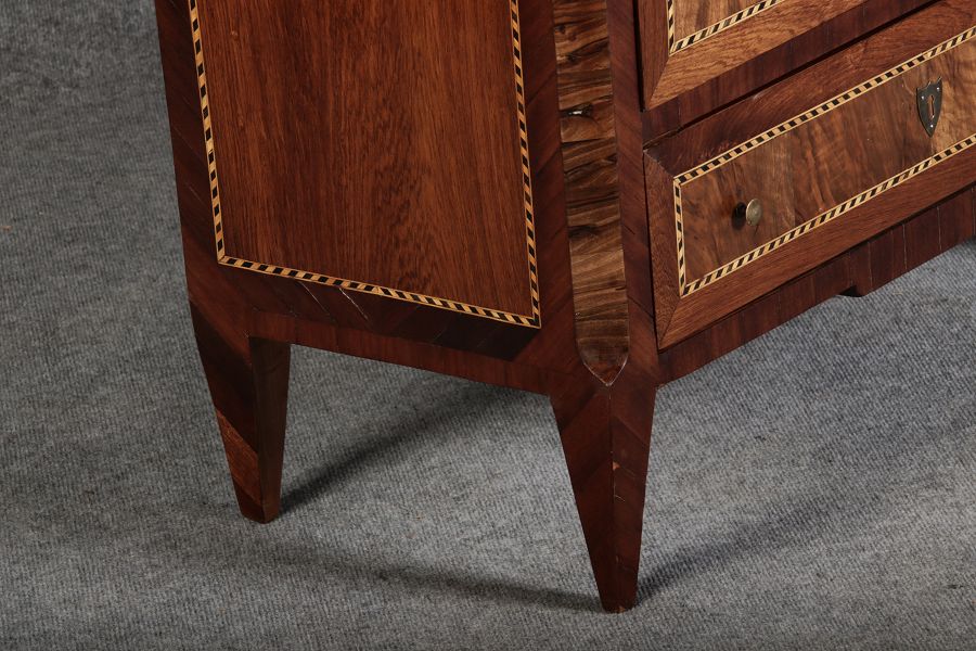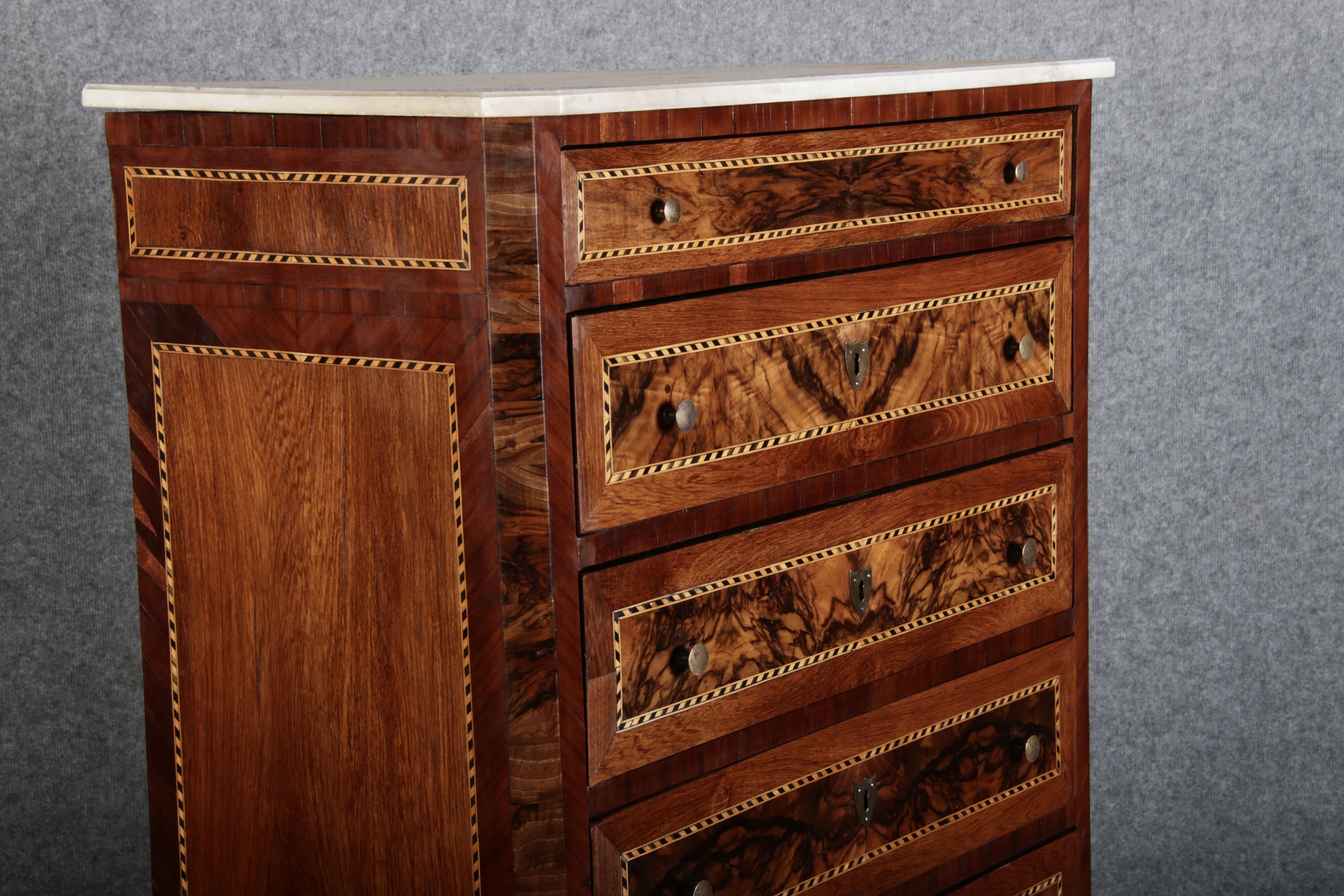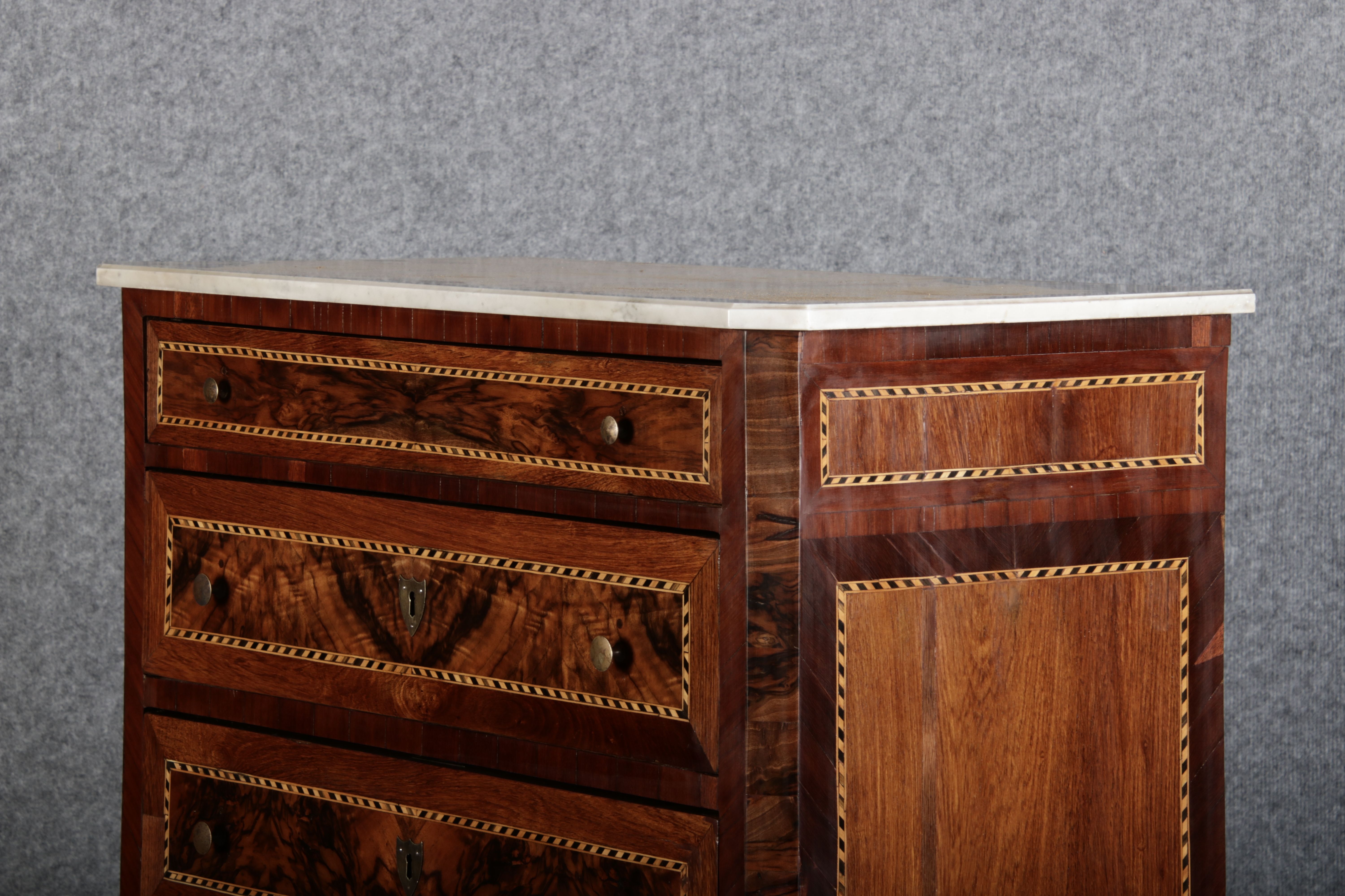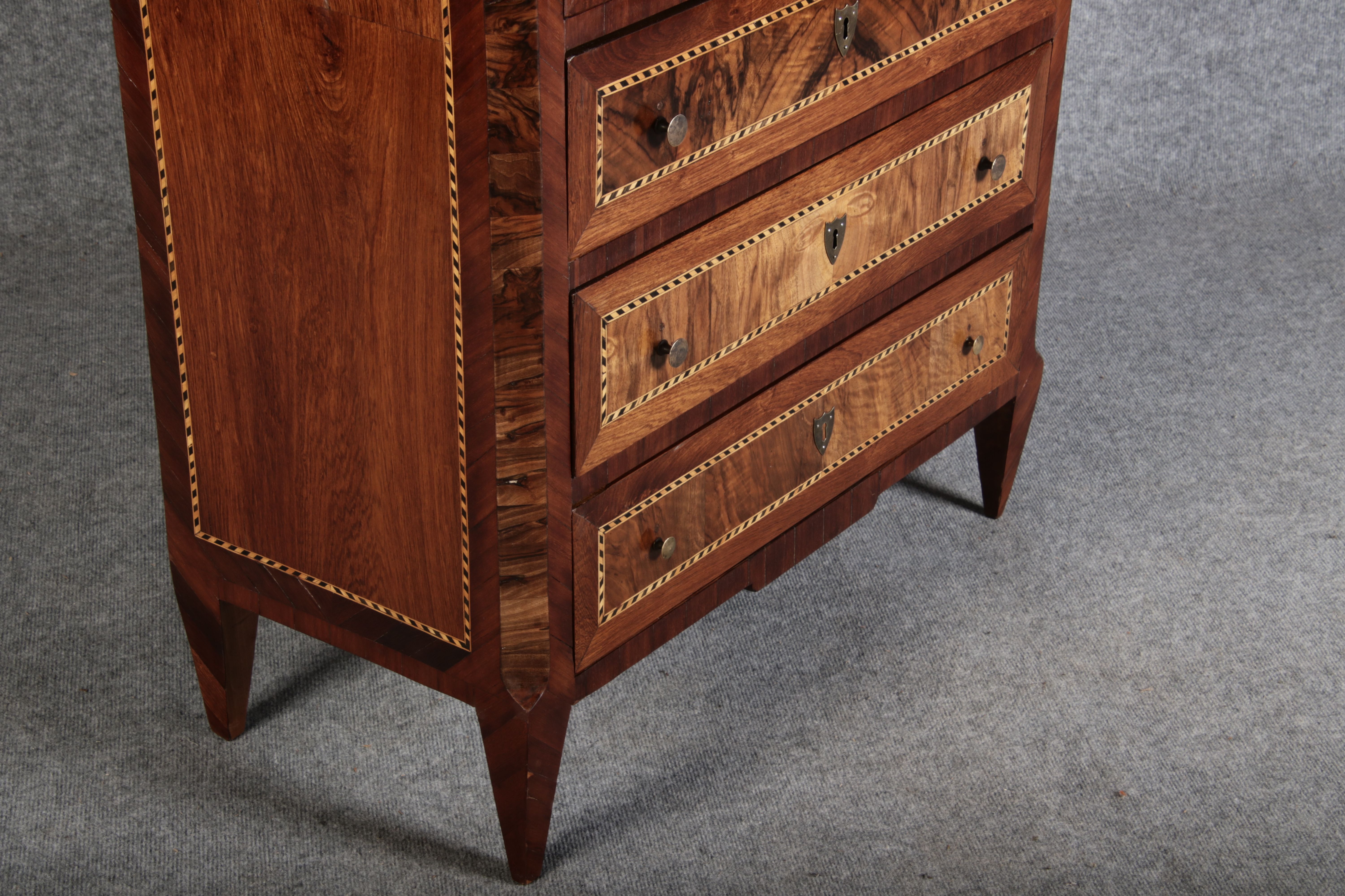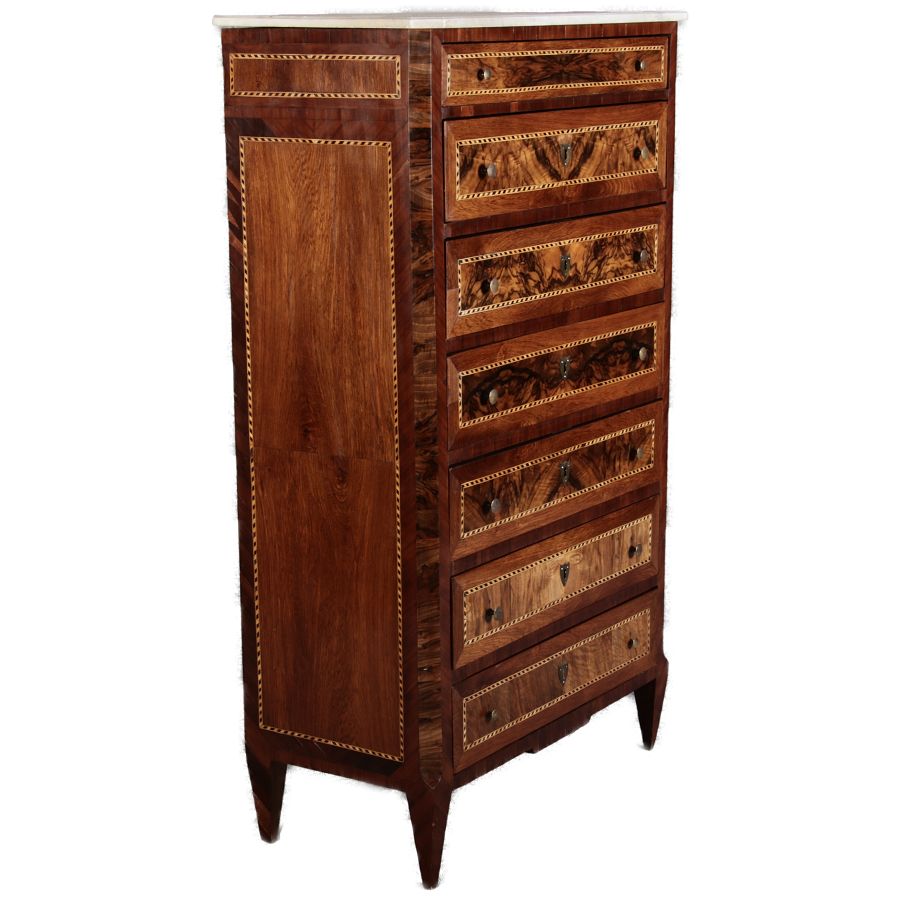 | Antike Louise XVI Pfeiler Hoch Kommode um 1800 mit Einlegearbeiten Nussbaum 7 Schubladen |