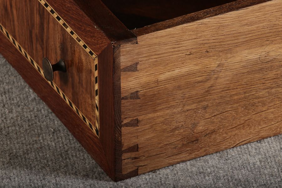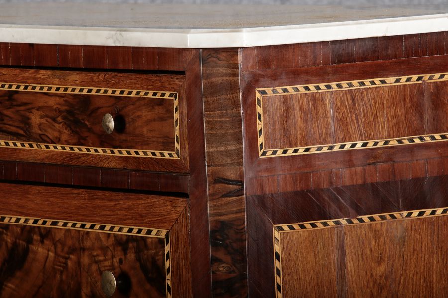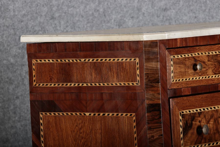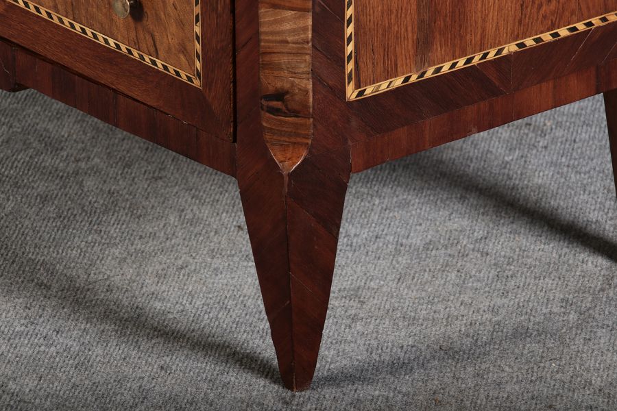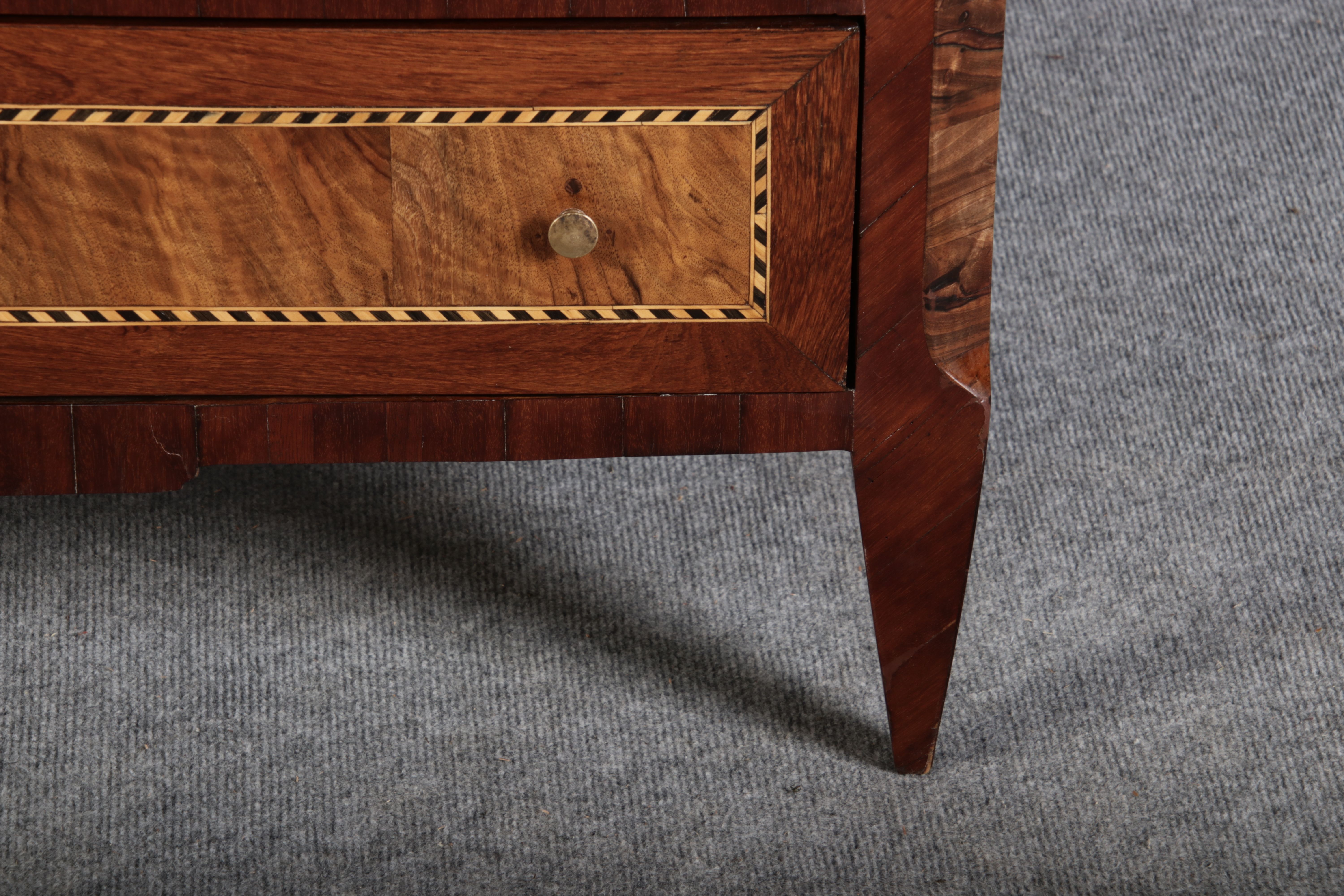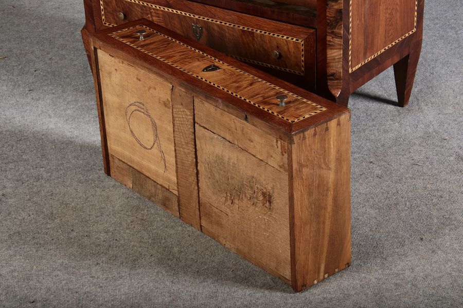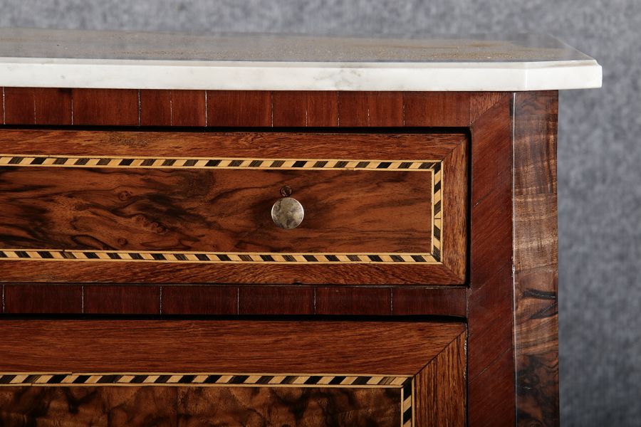 | Antike Louise XVI Pfeiler Hoch Kommode um 1800 mit Einlegearbeiten Nussbaum 7 Schubladen |