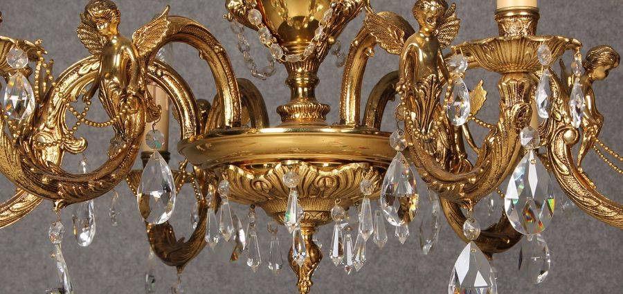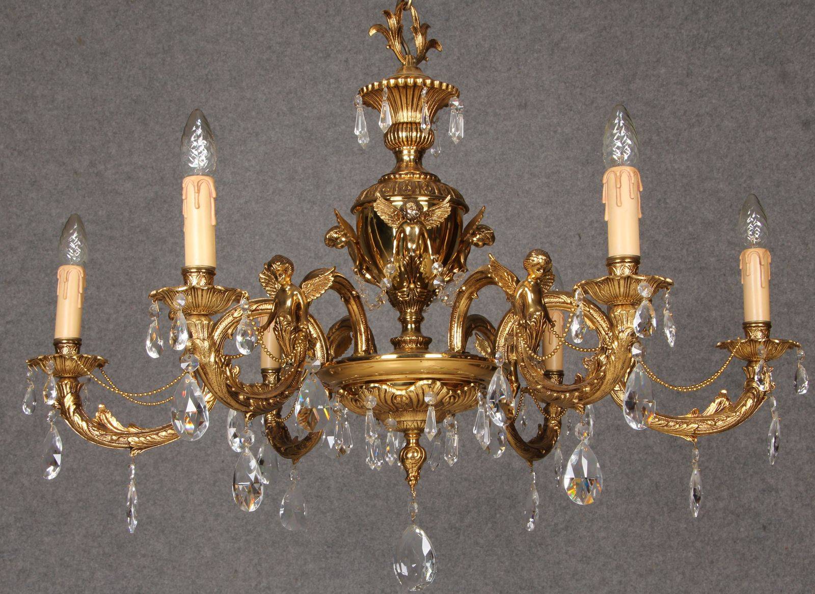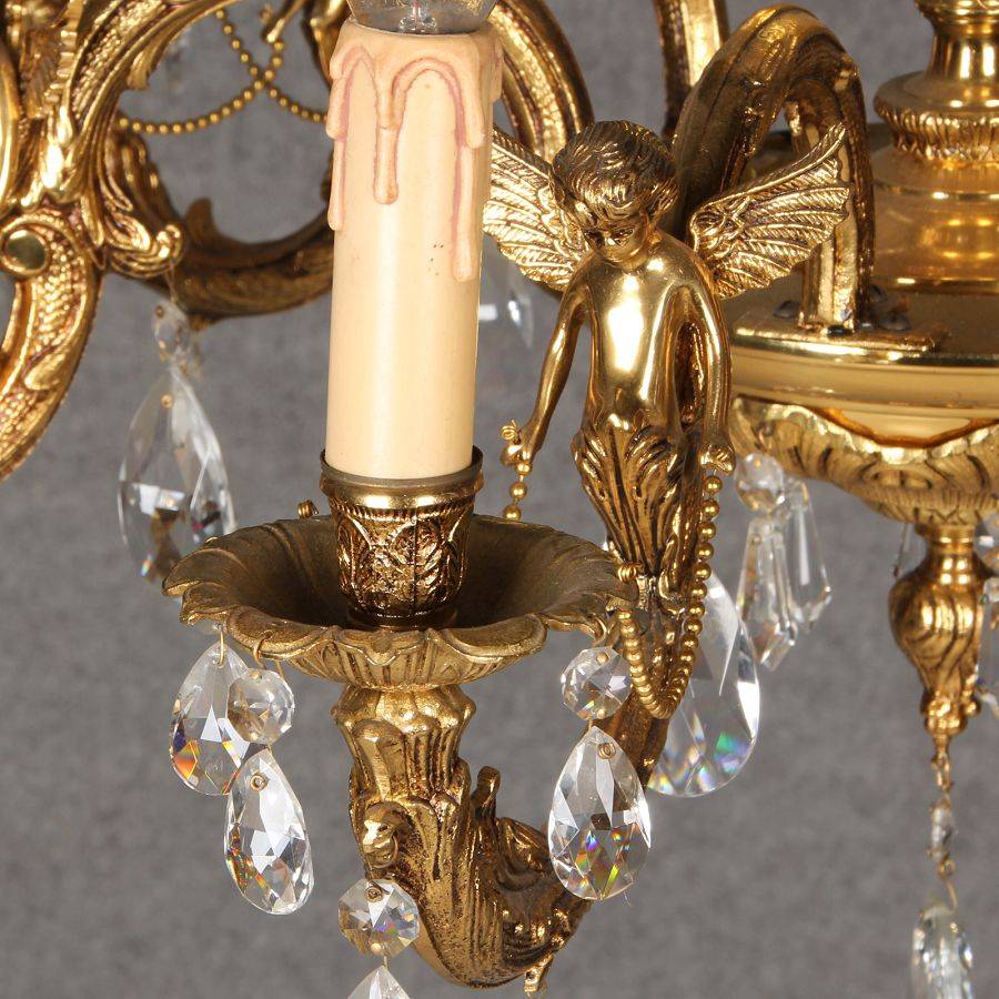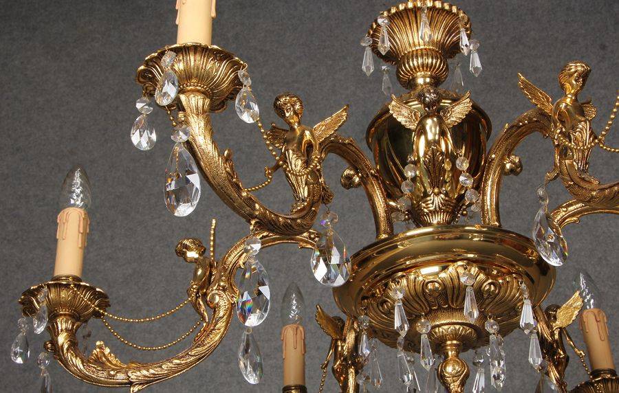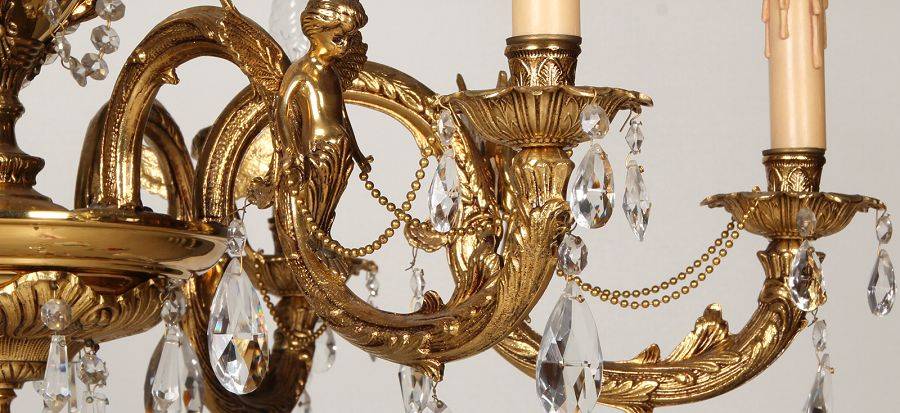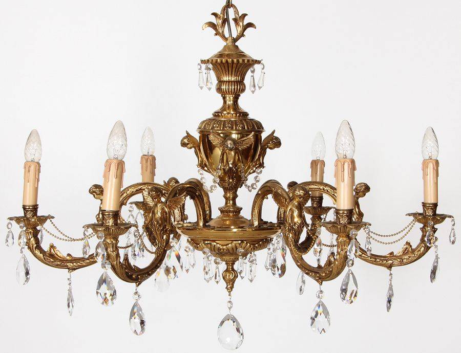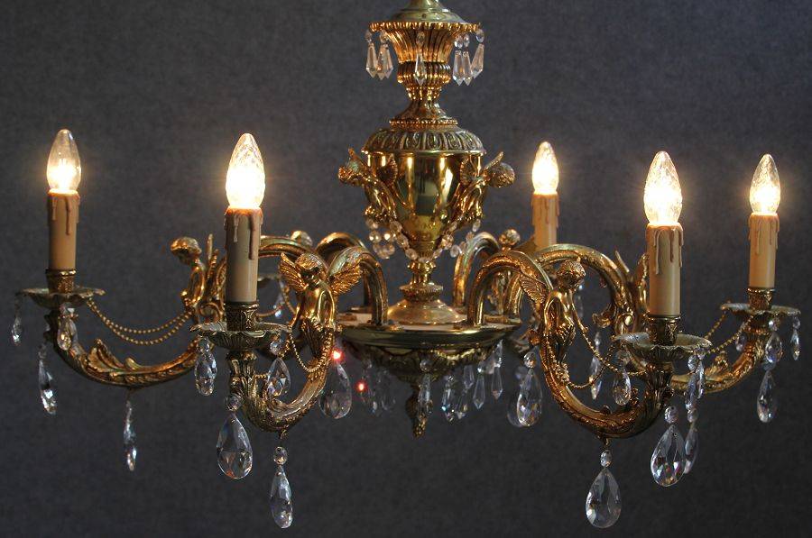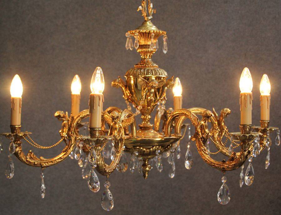 Durchmesser/diameter ca. 80 cm. Material, Brennstellen/material, Hotspots: Die Lampe wurde aus Bronze und Messing gefertigt und hat 6 Brennstellen mit E14 Fassung