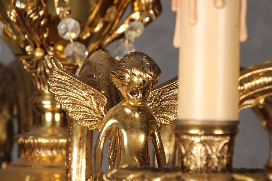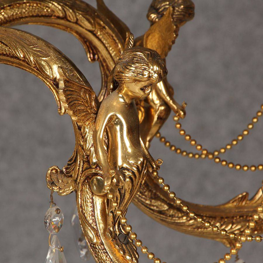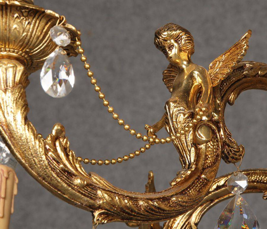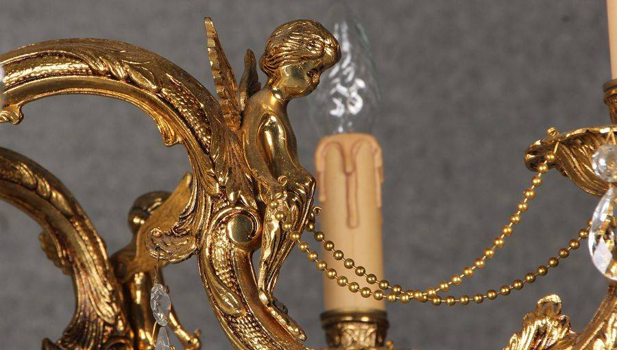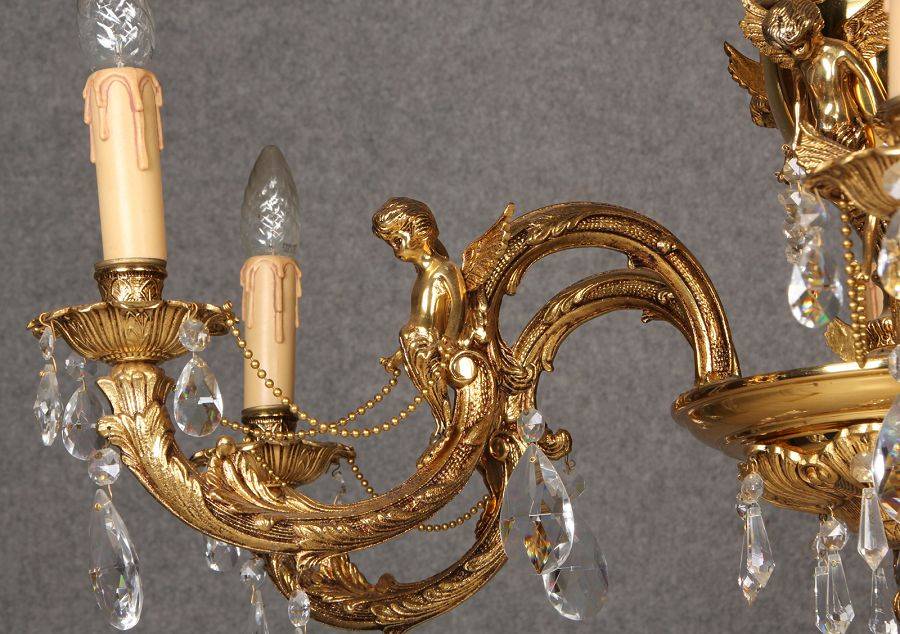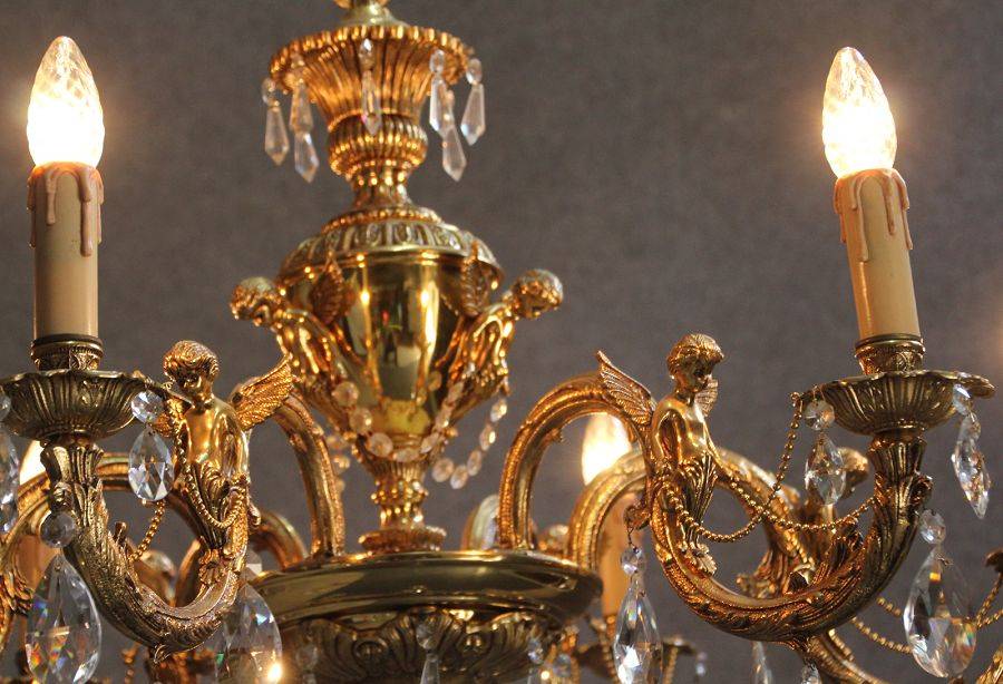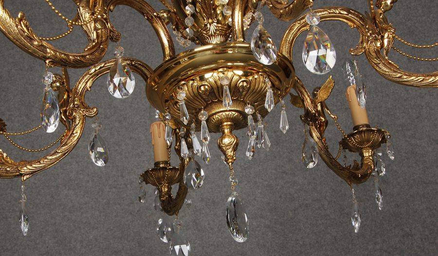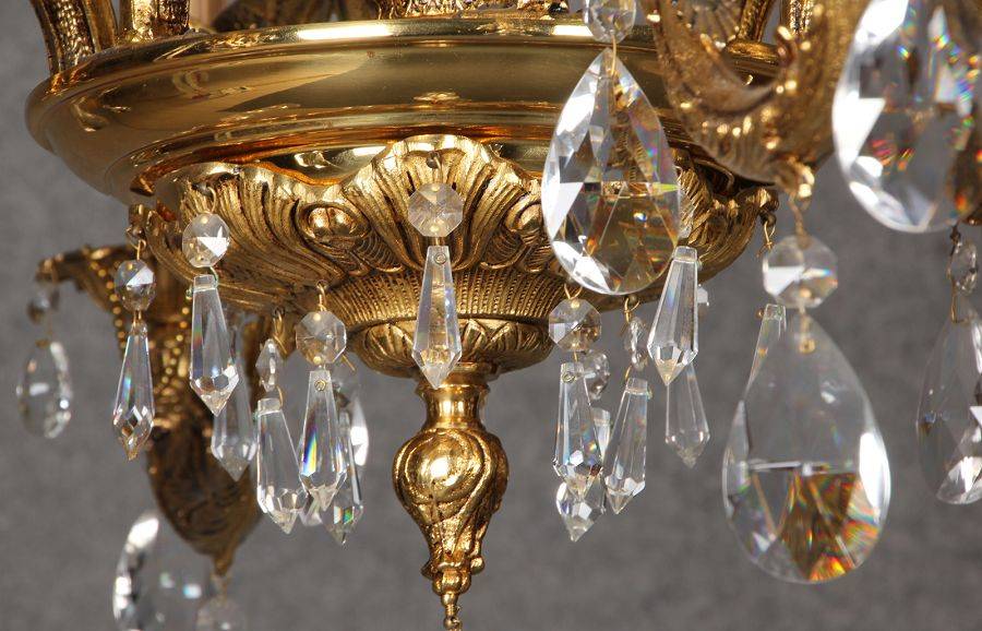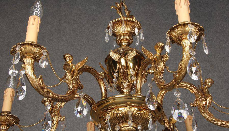 Durchmesser/diameter ca. 80 cm. Material, Brennstellen/material, Hotspots: Die Lampe wurde aus Bronze und Messing gefertigt und hat 6 Brennstellen mit E14 Fassung